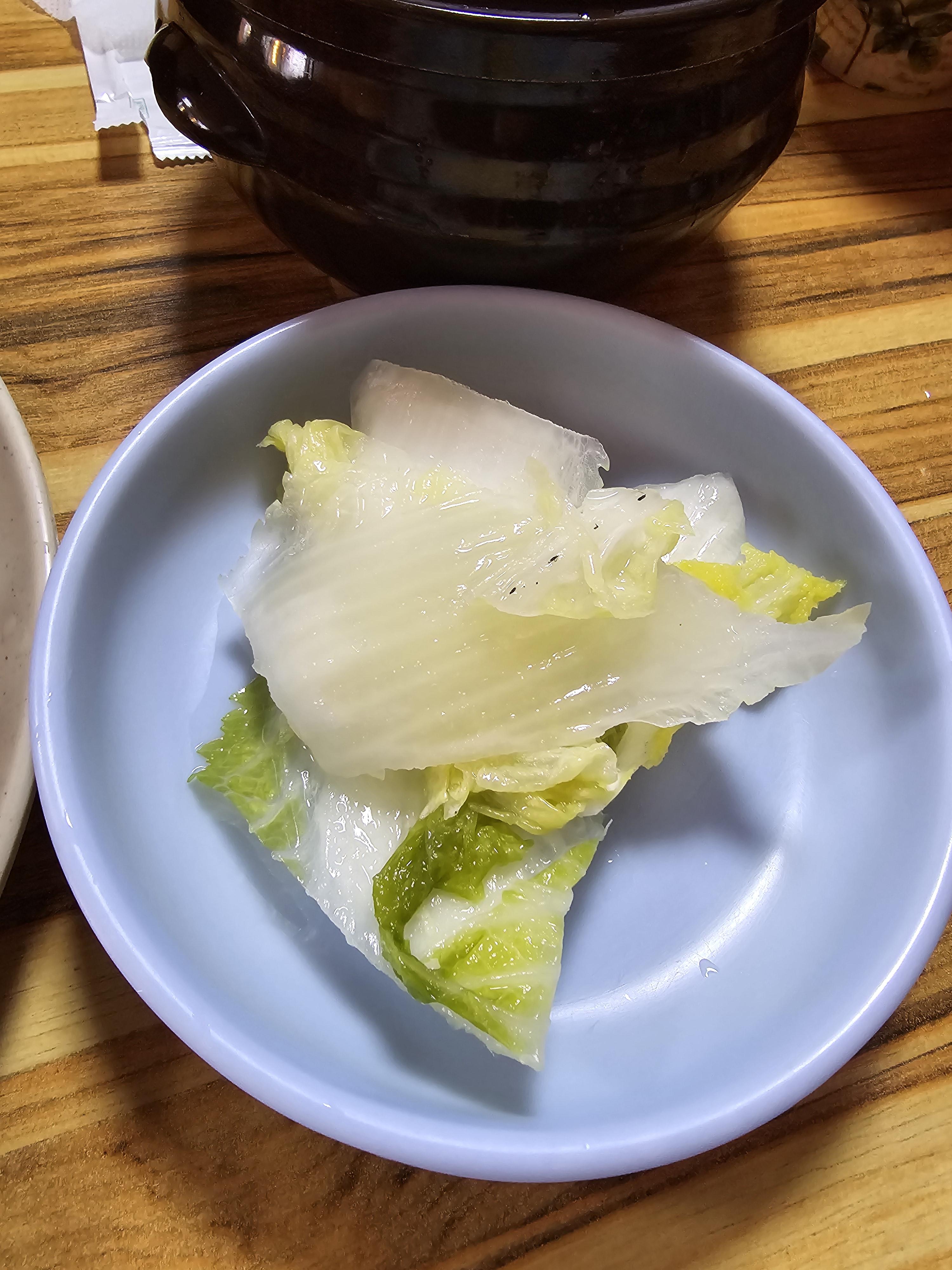 기본찬은 딱 하나 백김치인데 이거면 모든 게 딱이라 다른 찬이 아쉽지 않아요