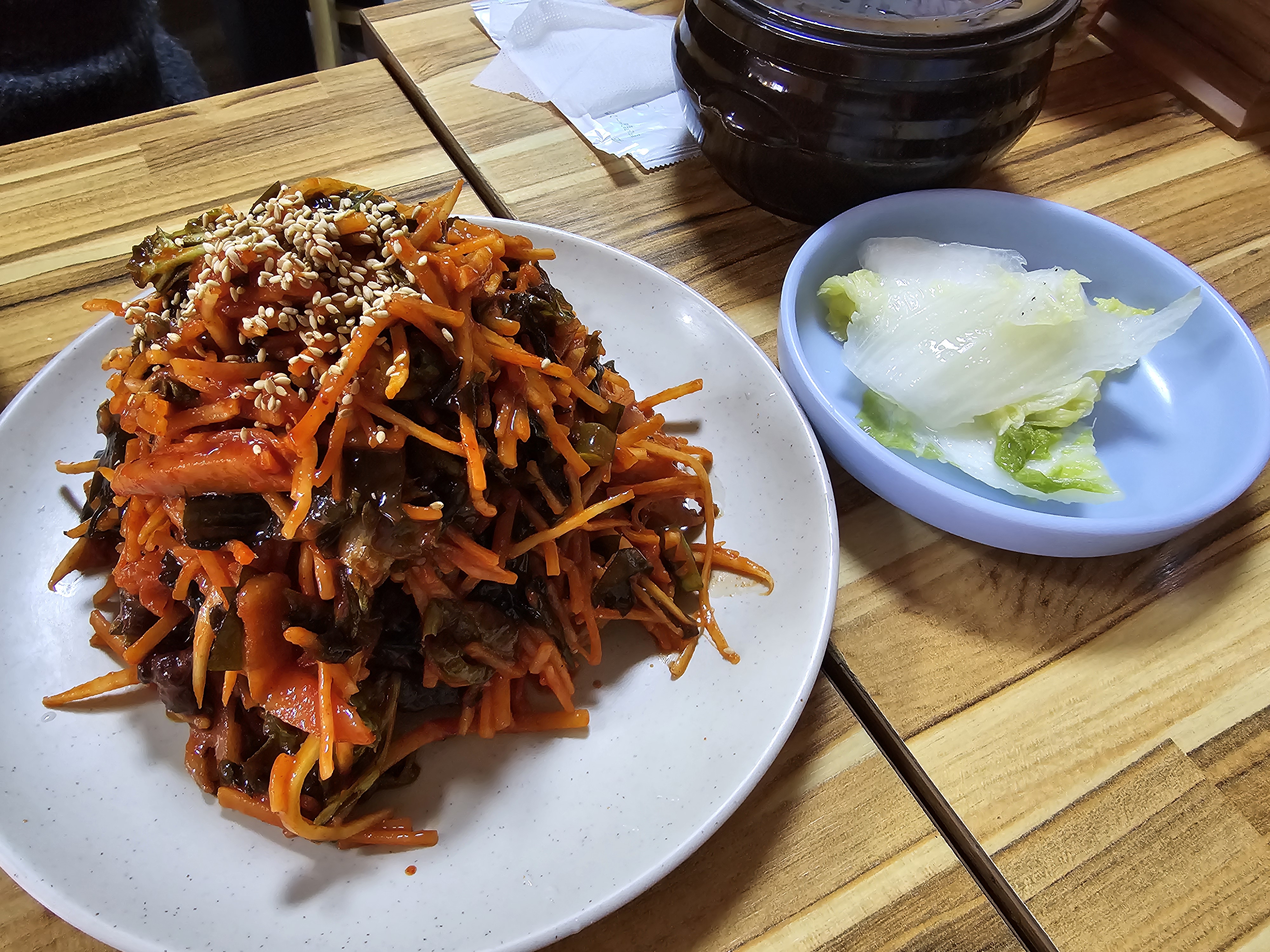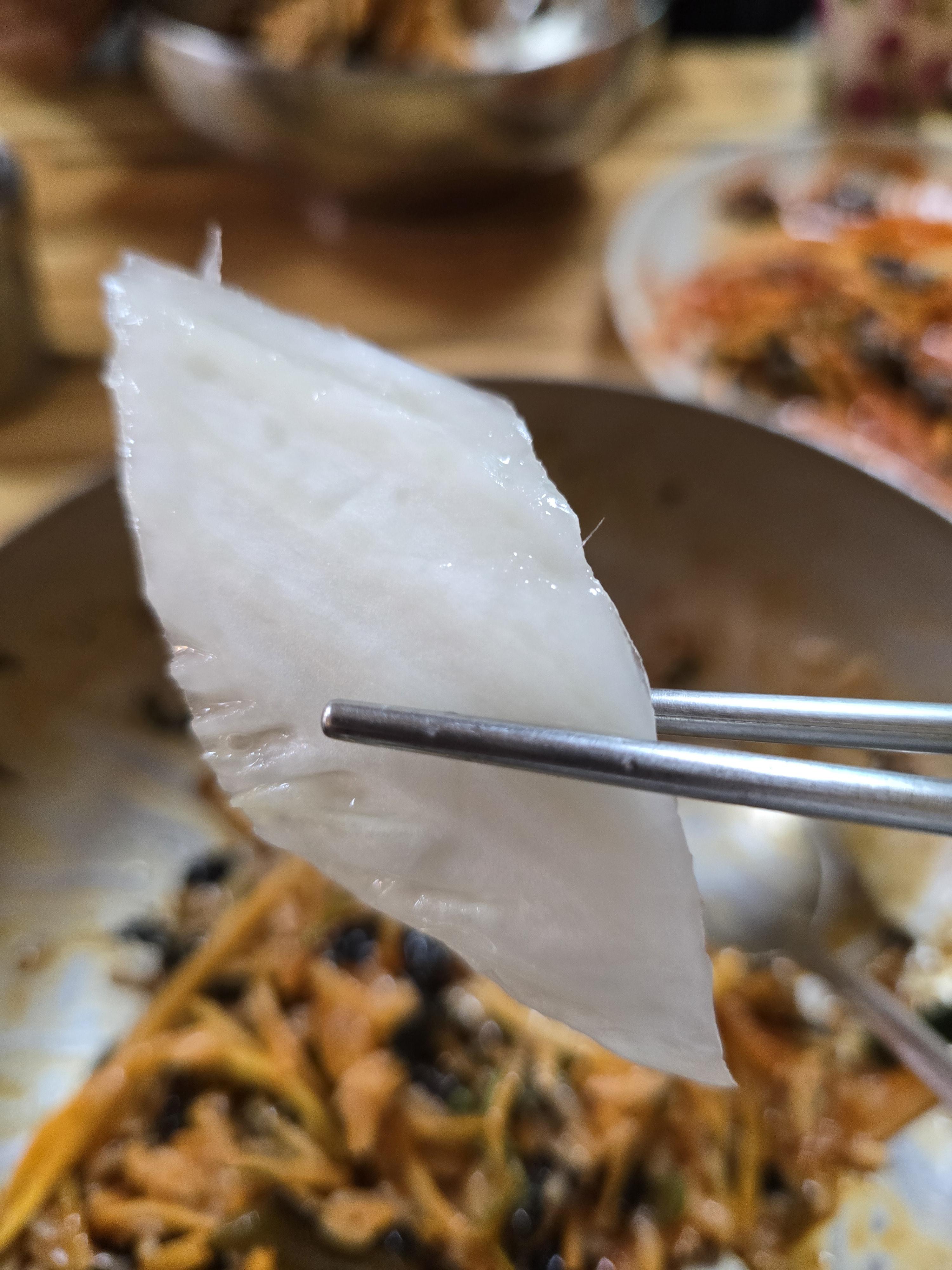 백김치와 나란히 높으니 회무침의 양이 꽤 되는게 비교가 되시죠?