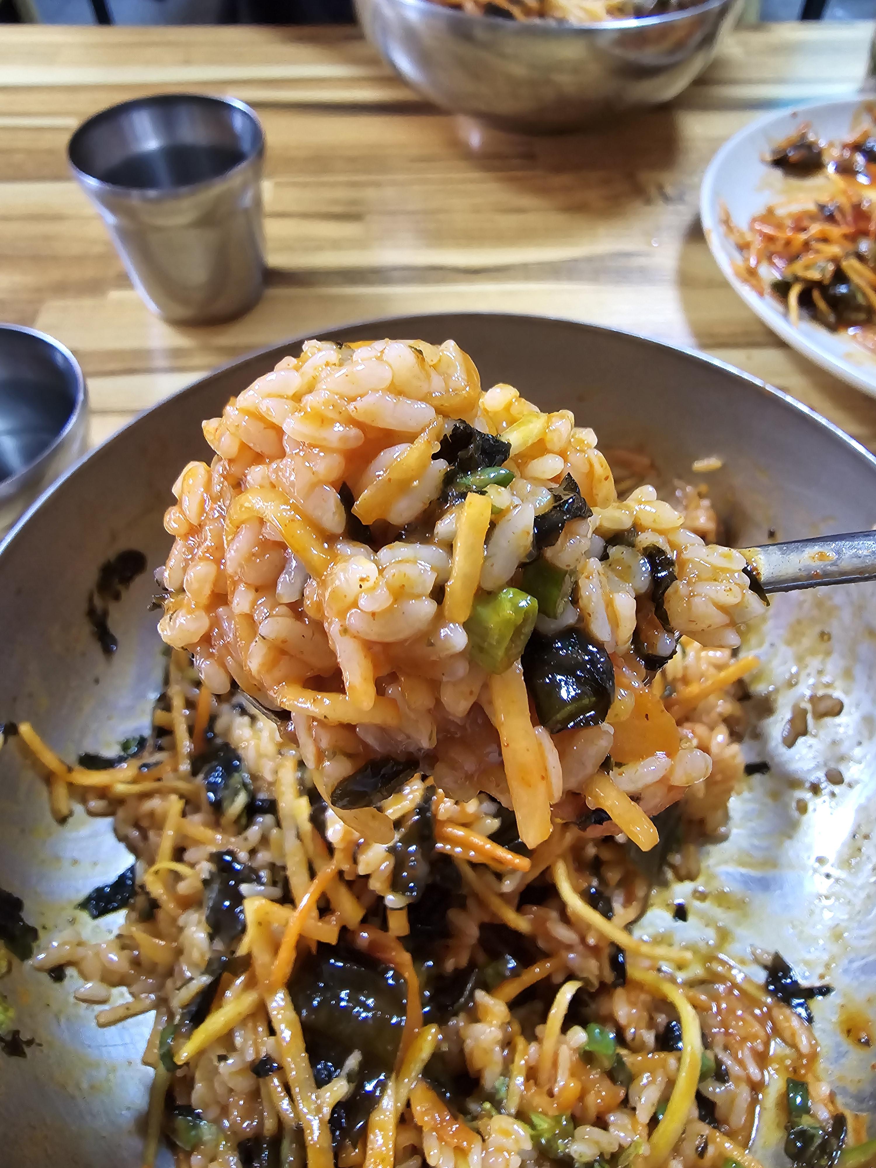 덜고도 조금 남은 회무침은 공기밥 하나 추가해서 또 쓰윽 비벼서 먹어주면 되요