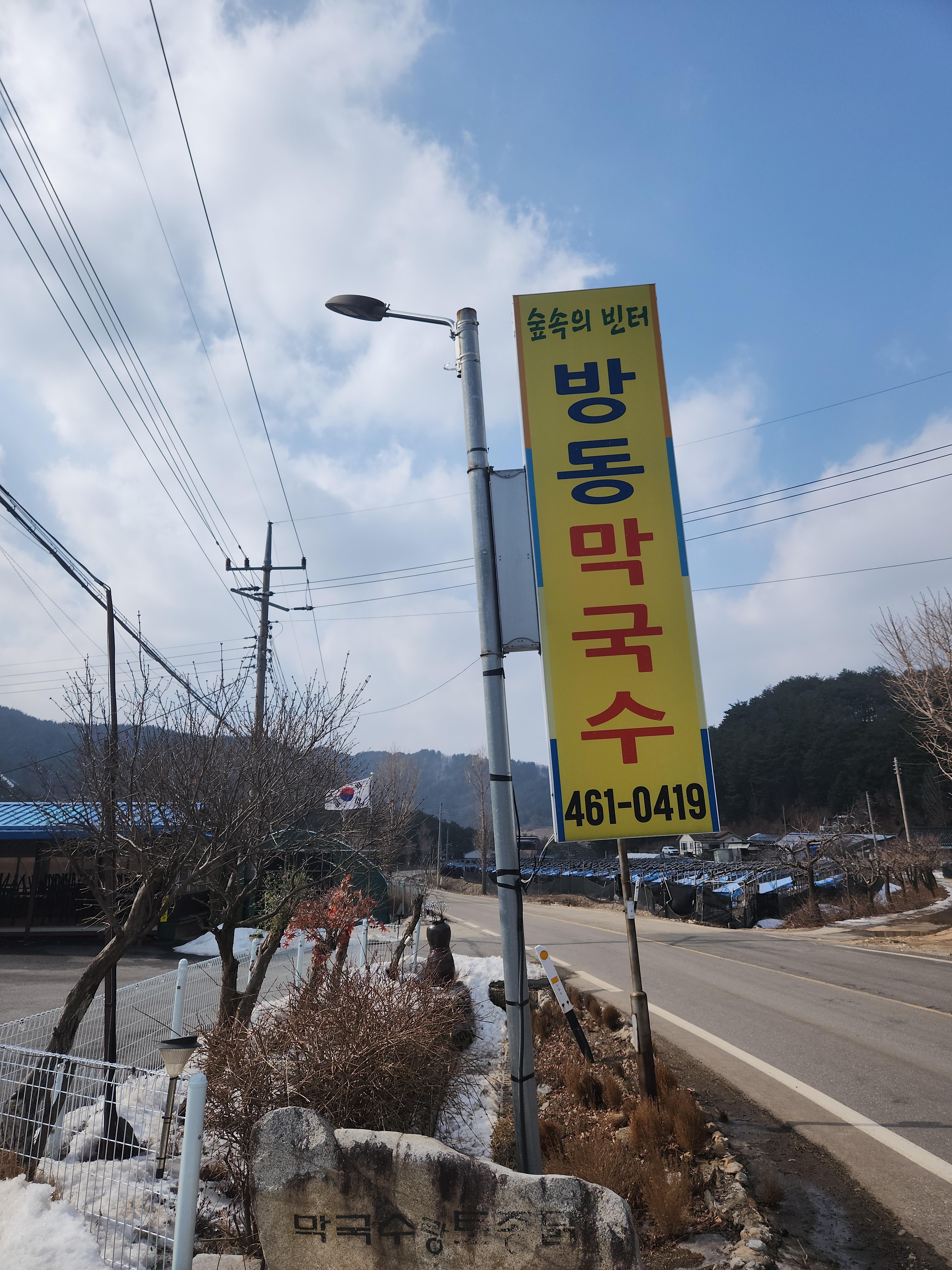 인제 기린면 읍내에서 안쪽으로 쭈욱 들어가다보면 여기에 식당이 있는게 맞아? 할 때 쯤 나타난 방동막국수 간판이예요 ^^