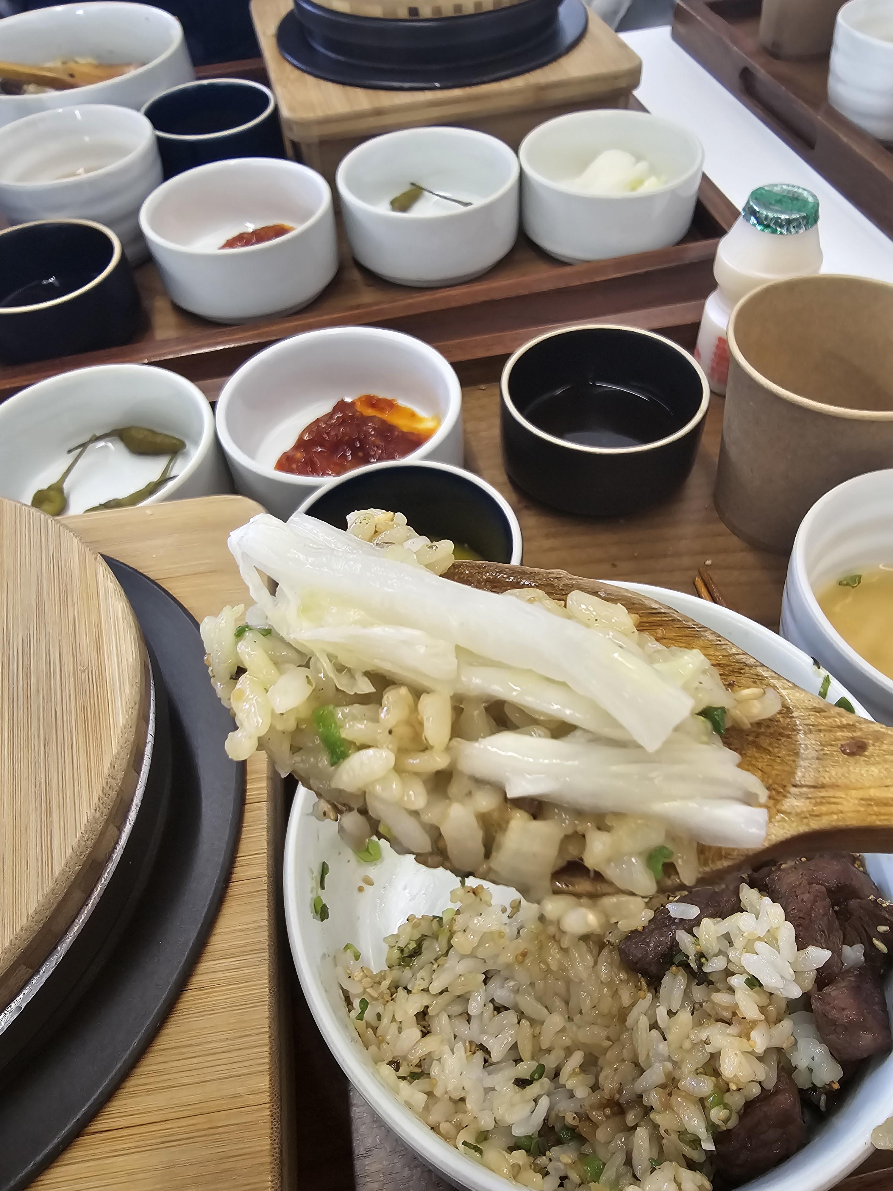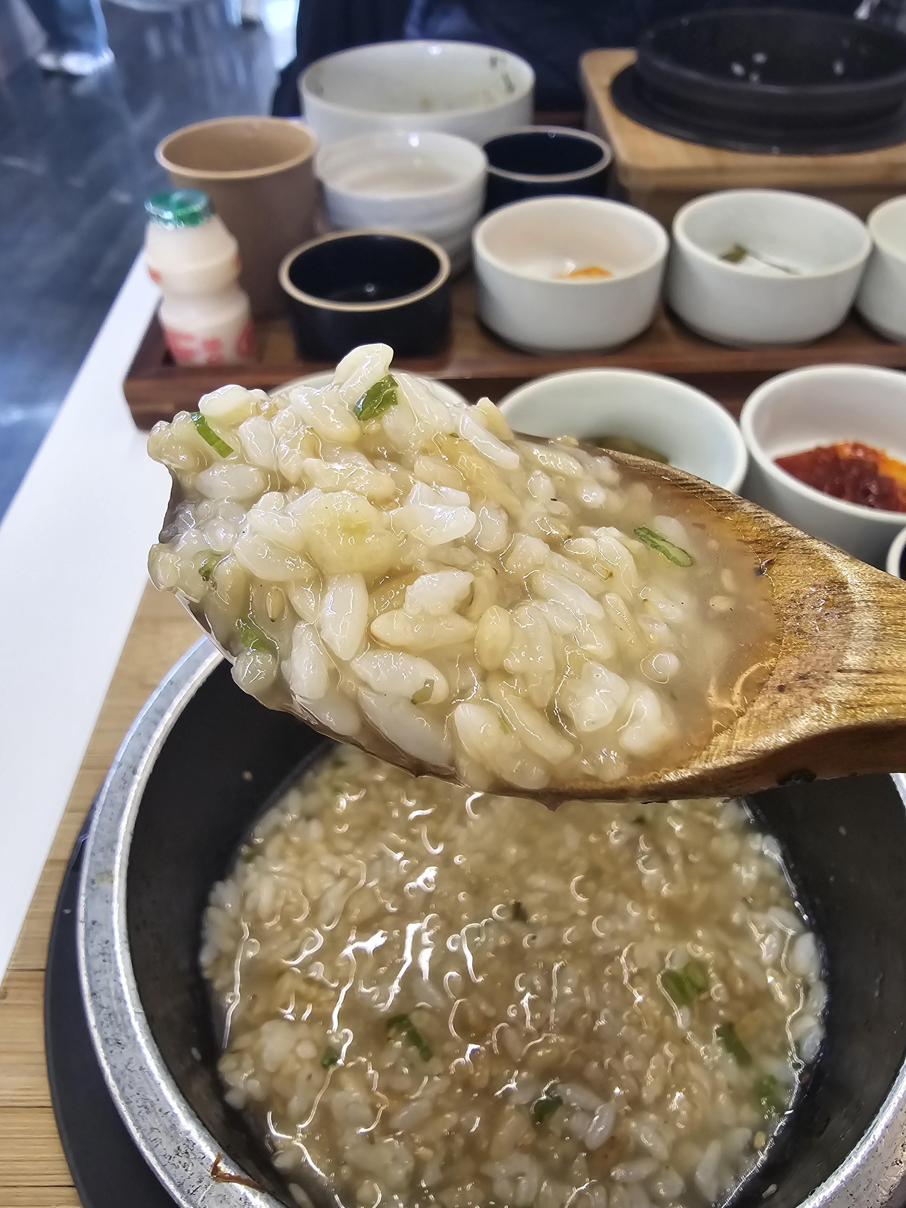 솥밥 자체의 간이 있던 터라 다른 식당의 누룽지와는 완전 다른 맛이예요 누룽지에도 간이 되어 있는 느낌