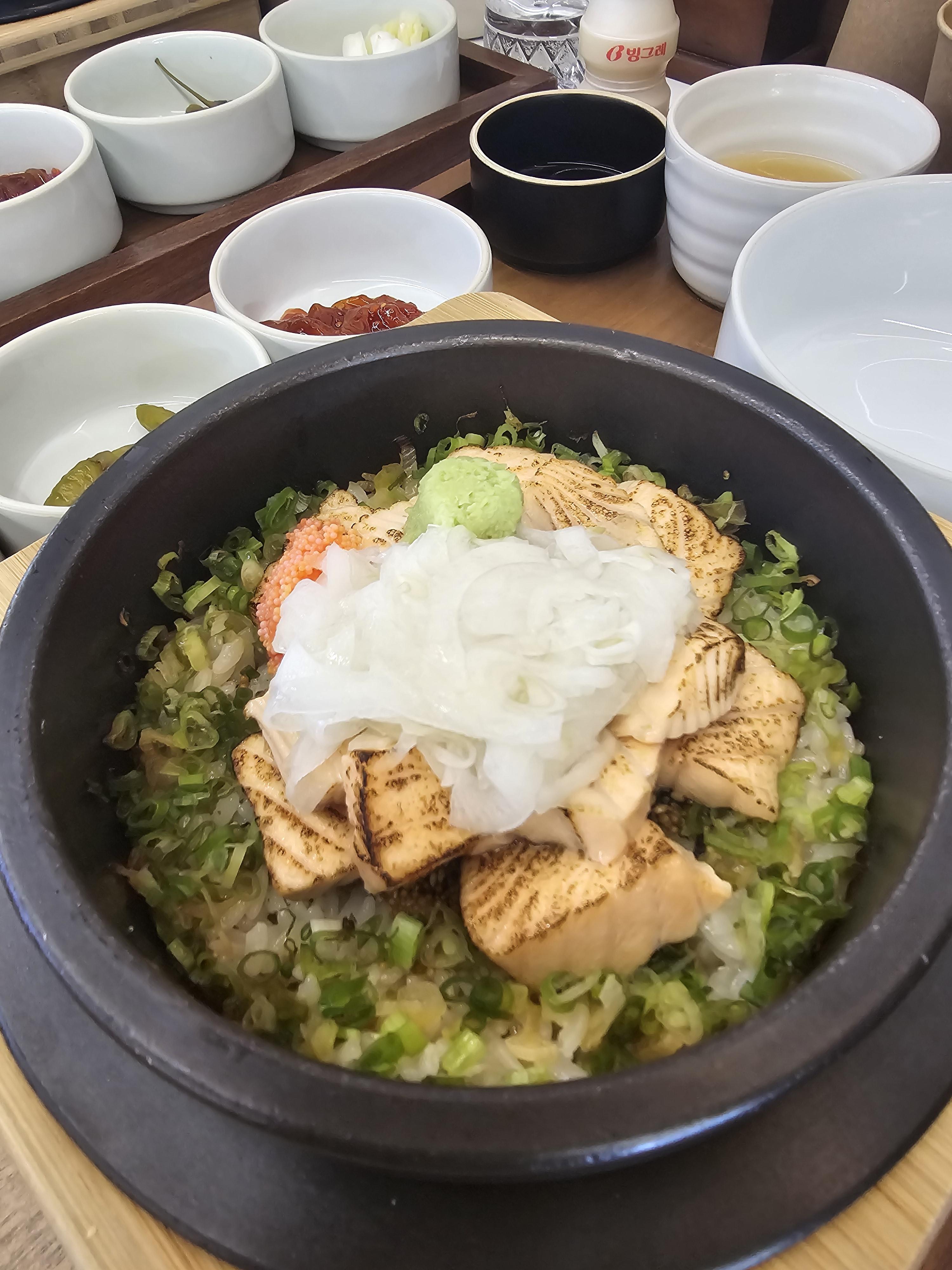 이건 같이 간 직원분이 시킨 연어솥밥이예요 잘익은 연어가 밥위에 살포시 올려져 있어요