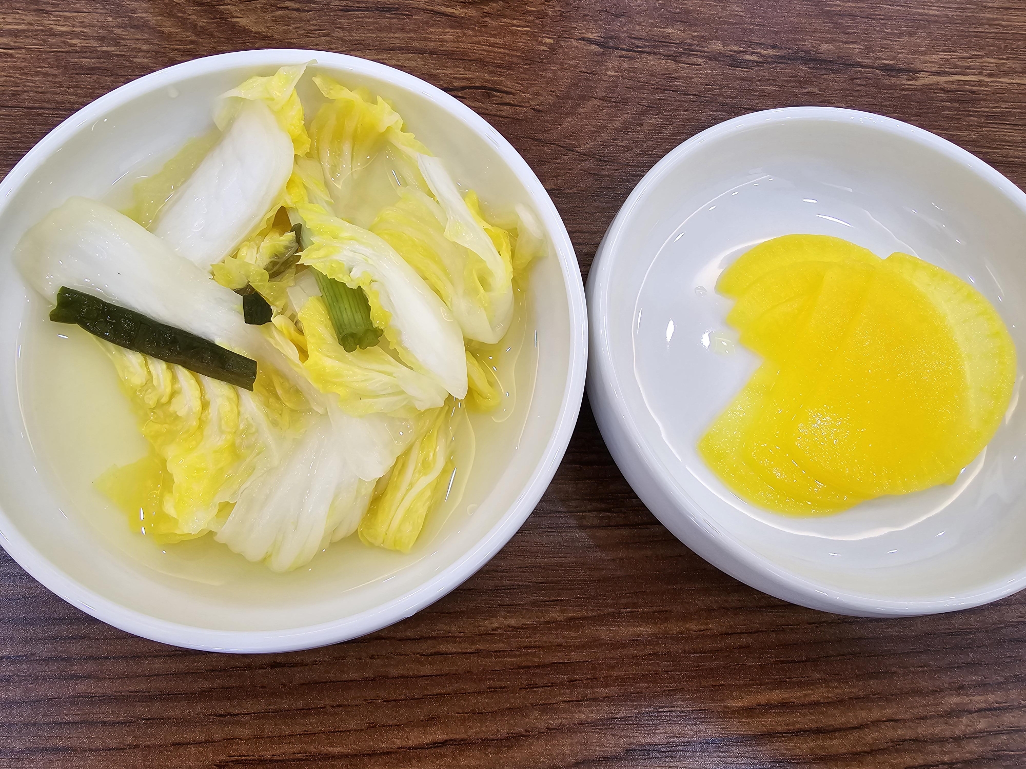 기본반찬은 백김치와 얇게 썬 단무지가 나와요