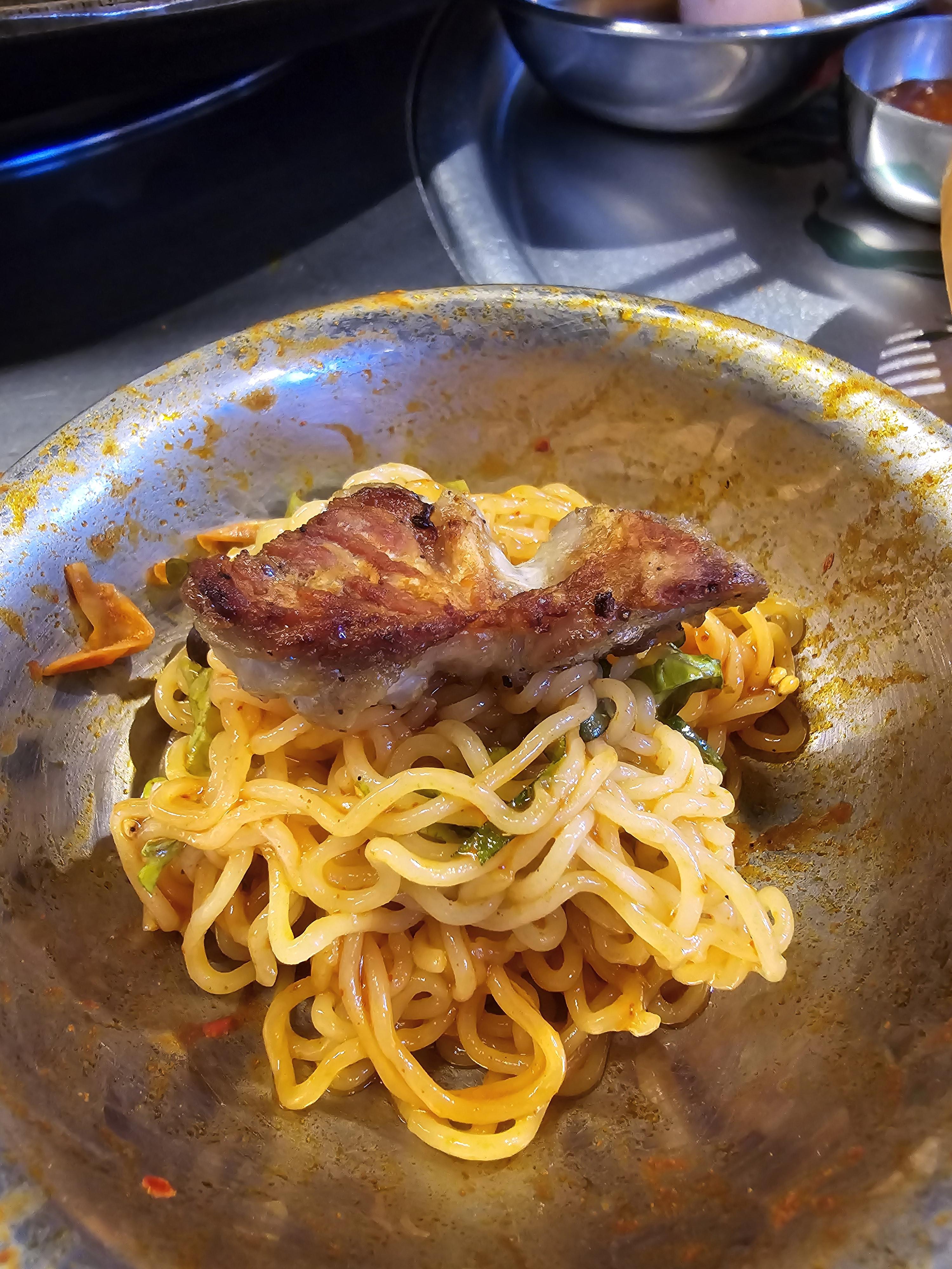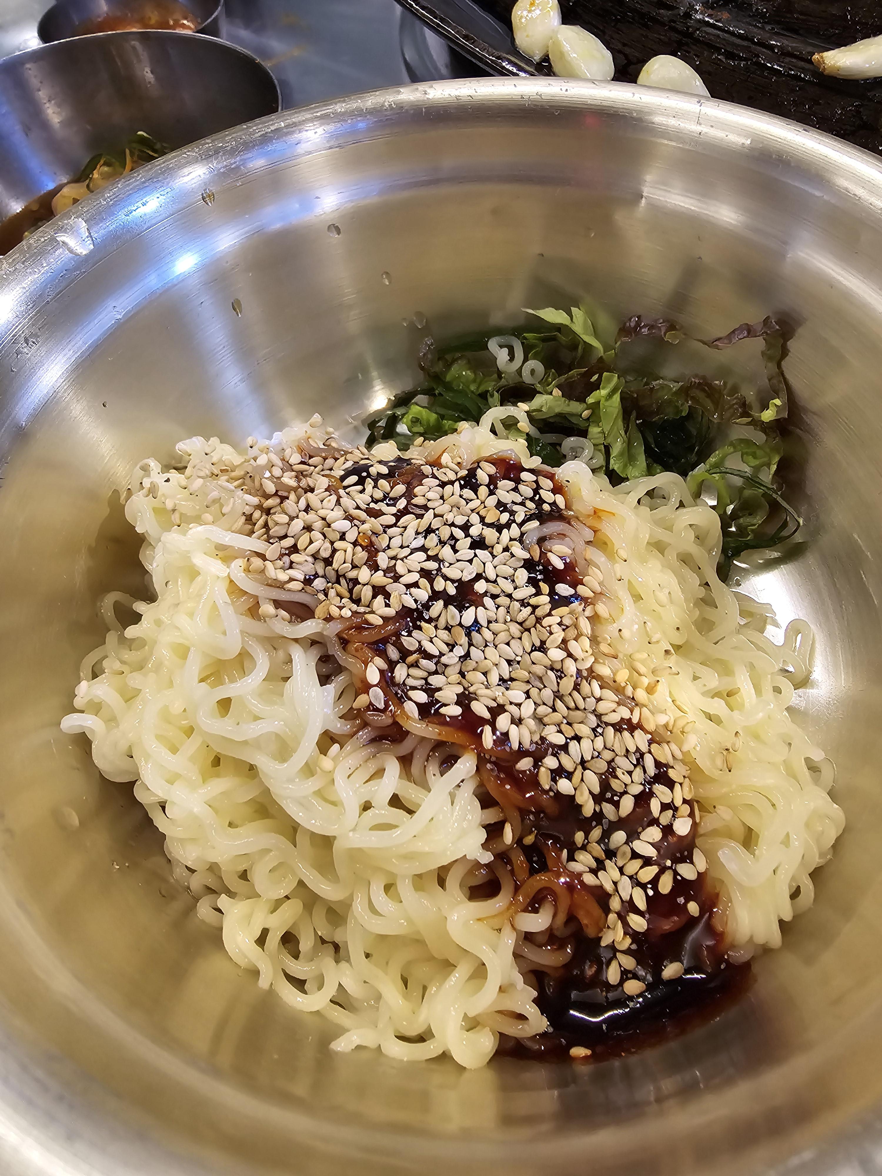 삼겹살과 궁합이 딱인! 저희집 애들의 최애 삼겹살 궁합음식 비빔면을 하나 시켰지요