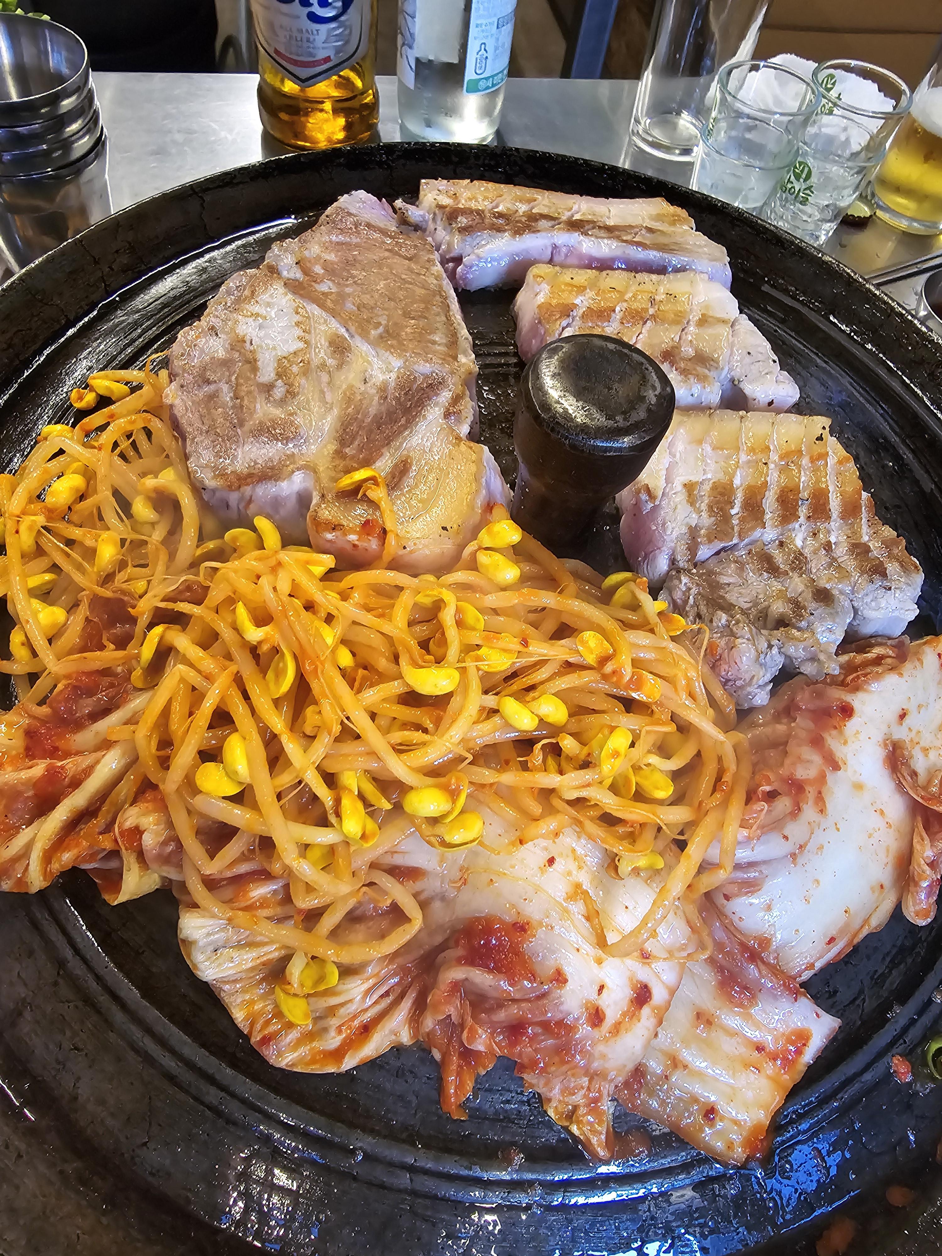 정렬된 고기와 김치 그리고 콩나물의 자태가 아름답기 그지 없네요