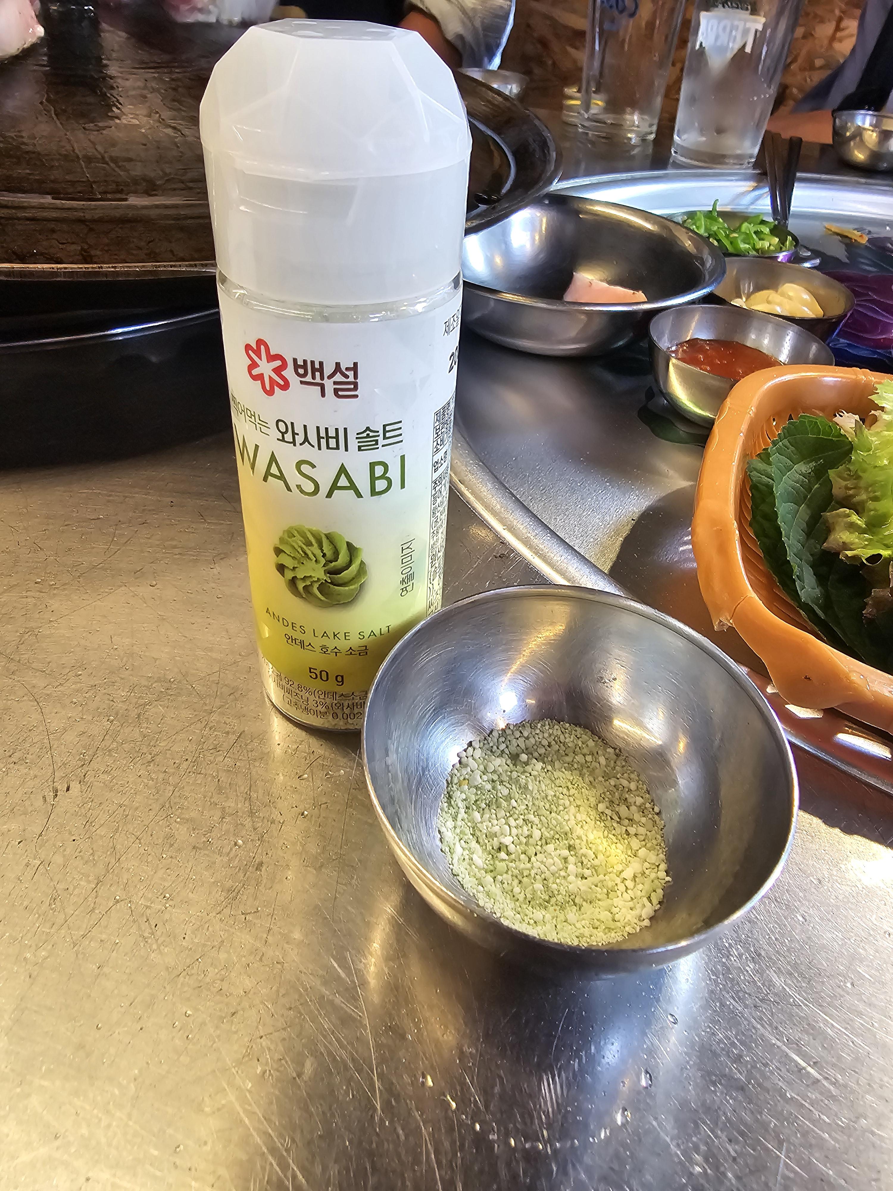 요건 오늘 삼겹살을 맛있게 먹기위해서 같이 온 일행이 준비한 와사비 소금이예요