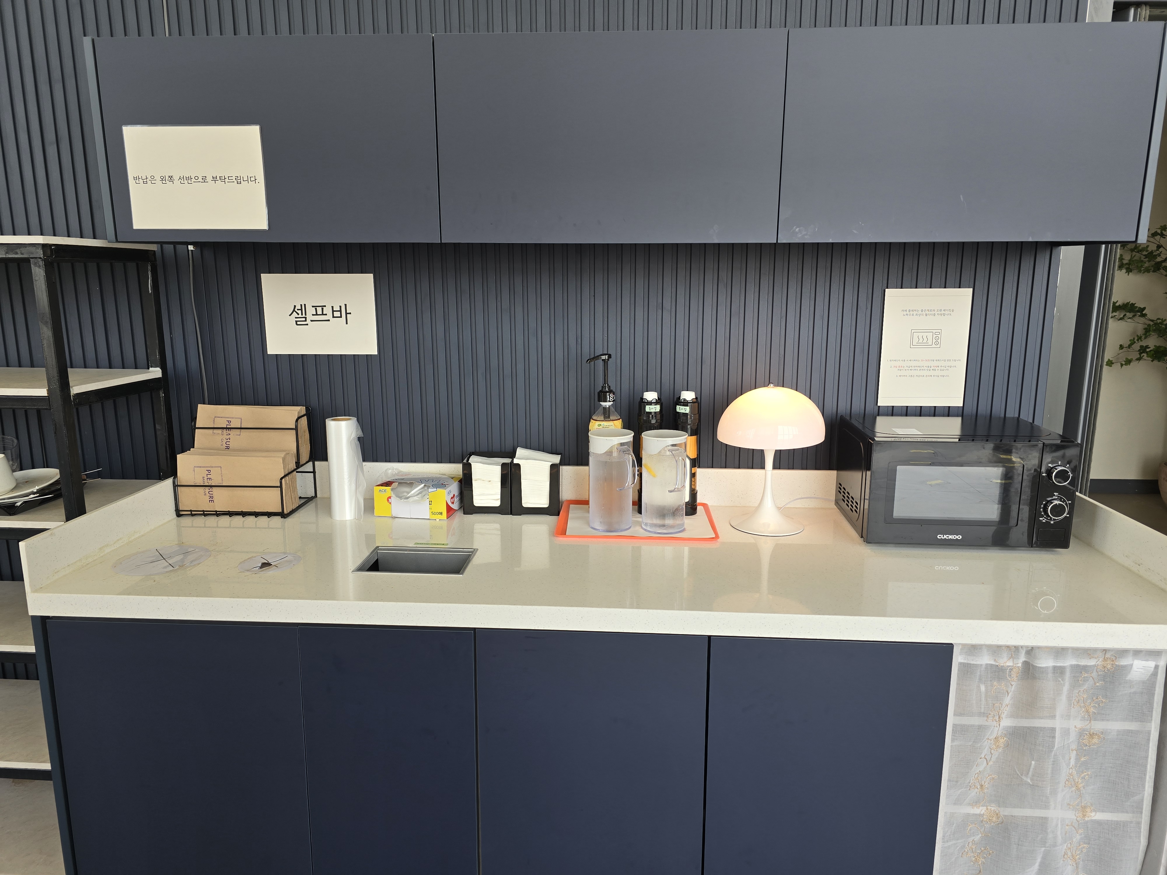 빵진열대 반대편에는 셀프바가 있는 데 냅킨이나 물을 이용하시면 되고요 남은 빵도 포장해 갈 수 있어요 ^^