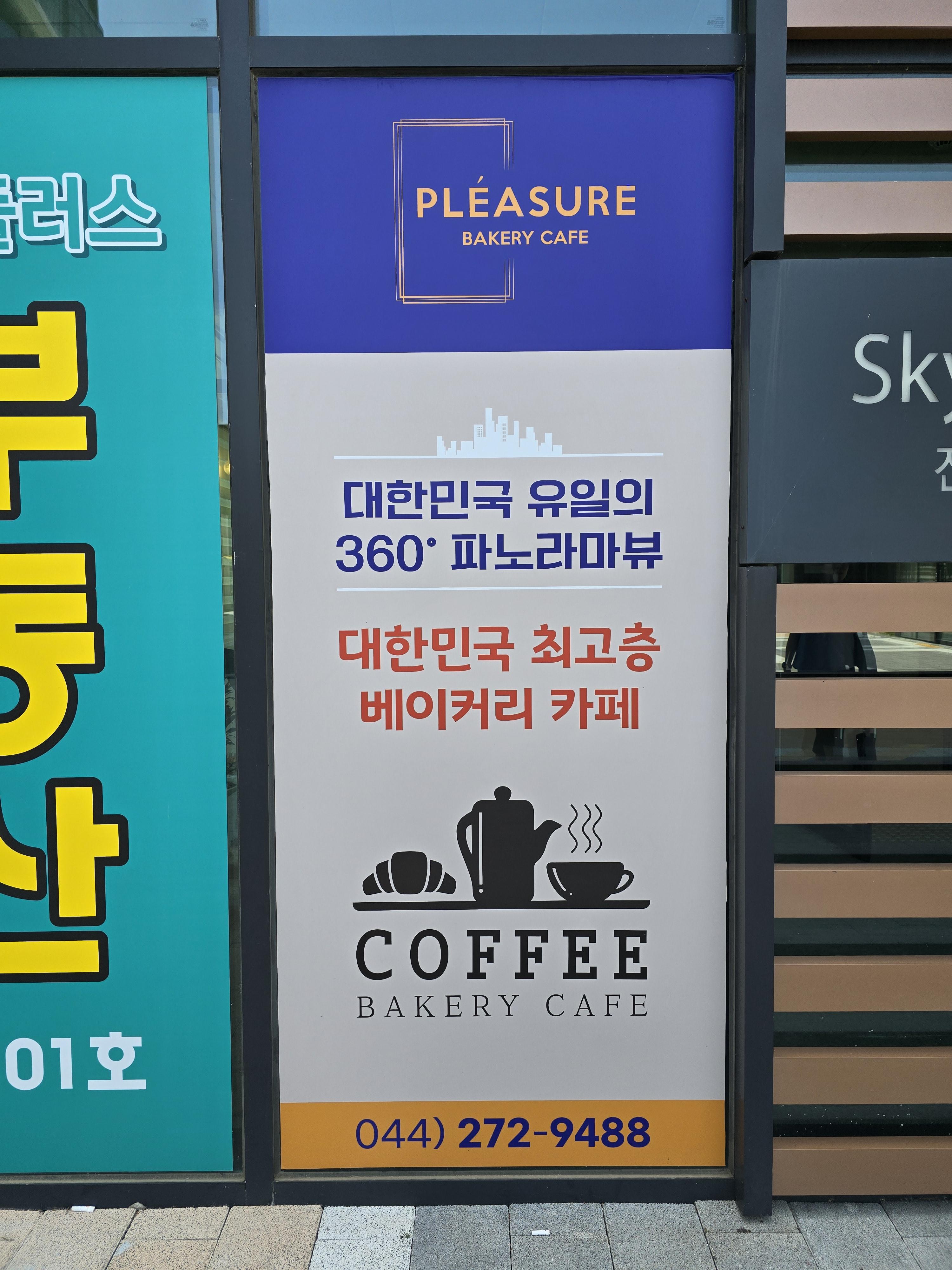 플레져카페는 세종시 나리재마을 2단지 상가에 위치하고 있어요 아파트와 별도로 운행하는 상가전용 엘리베이터를 타면 49층 카페에 도착할 수 있어요