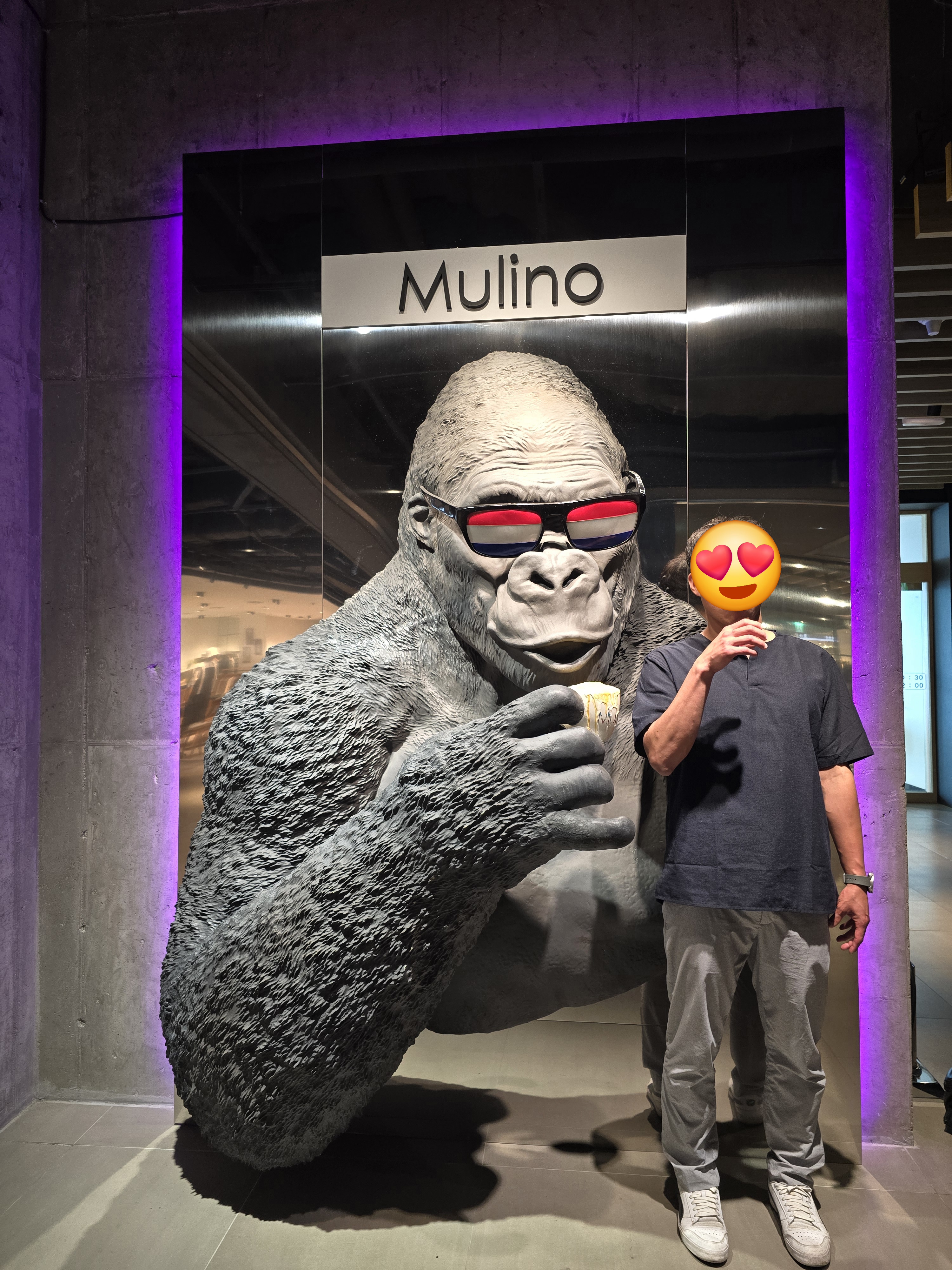 카페 앞에 시그니처인 고릴라가 커피를 마시고 있는 조형물이 있어서 눈길이 확 가더라고요