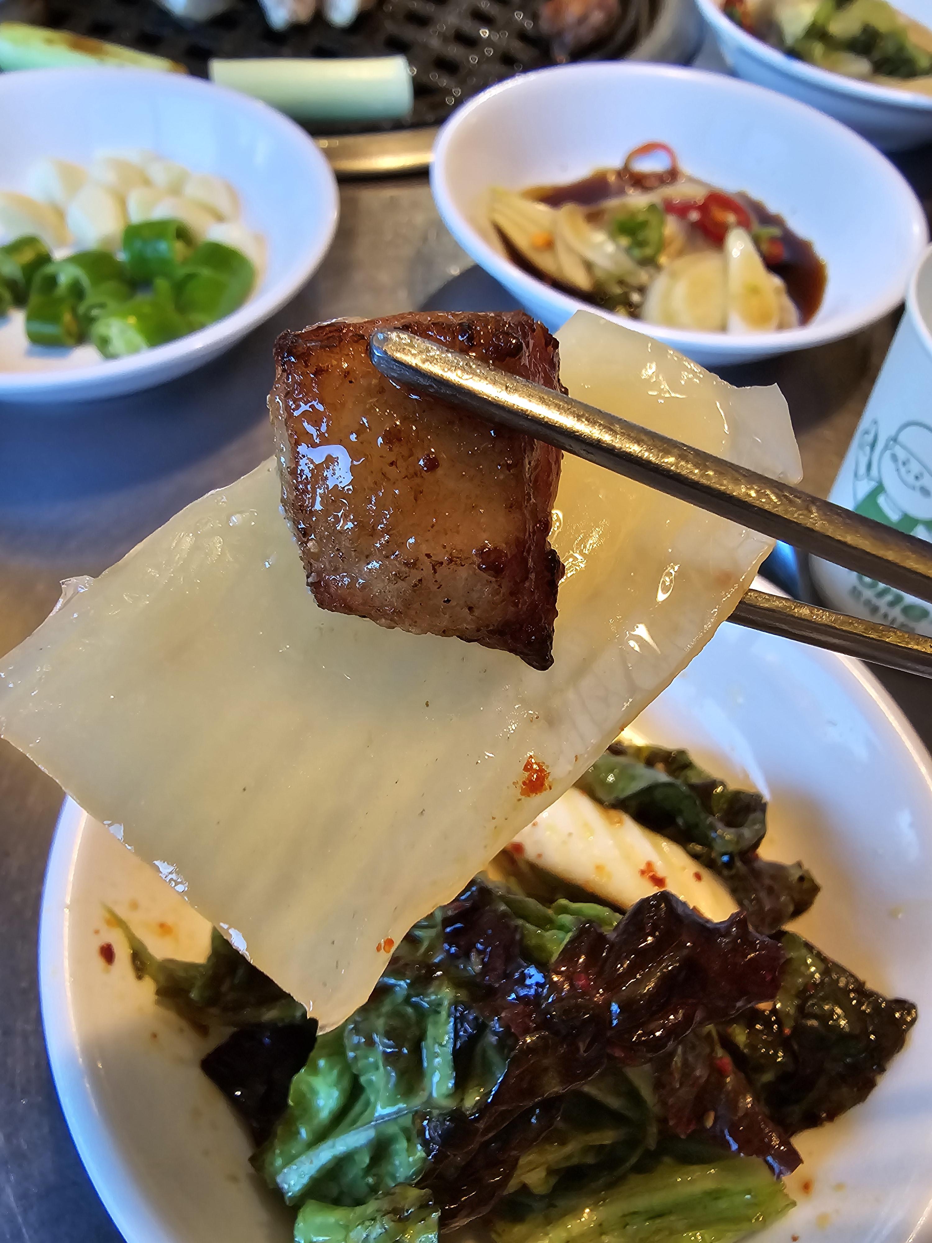 잘익은 항정살은 백김치와 함께 먹어보았는데 이 조합도 훌륭했어요