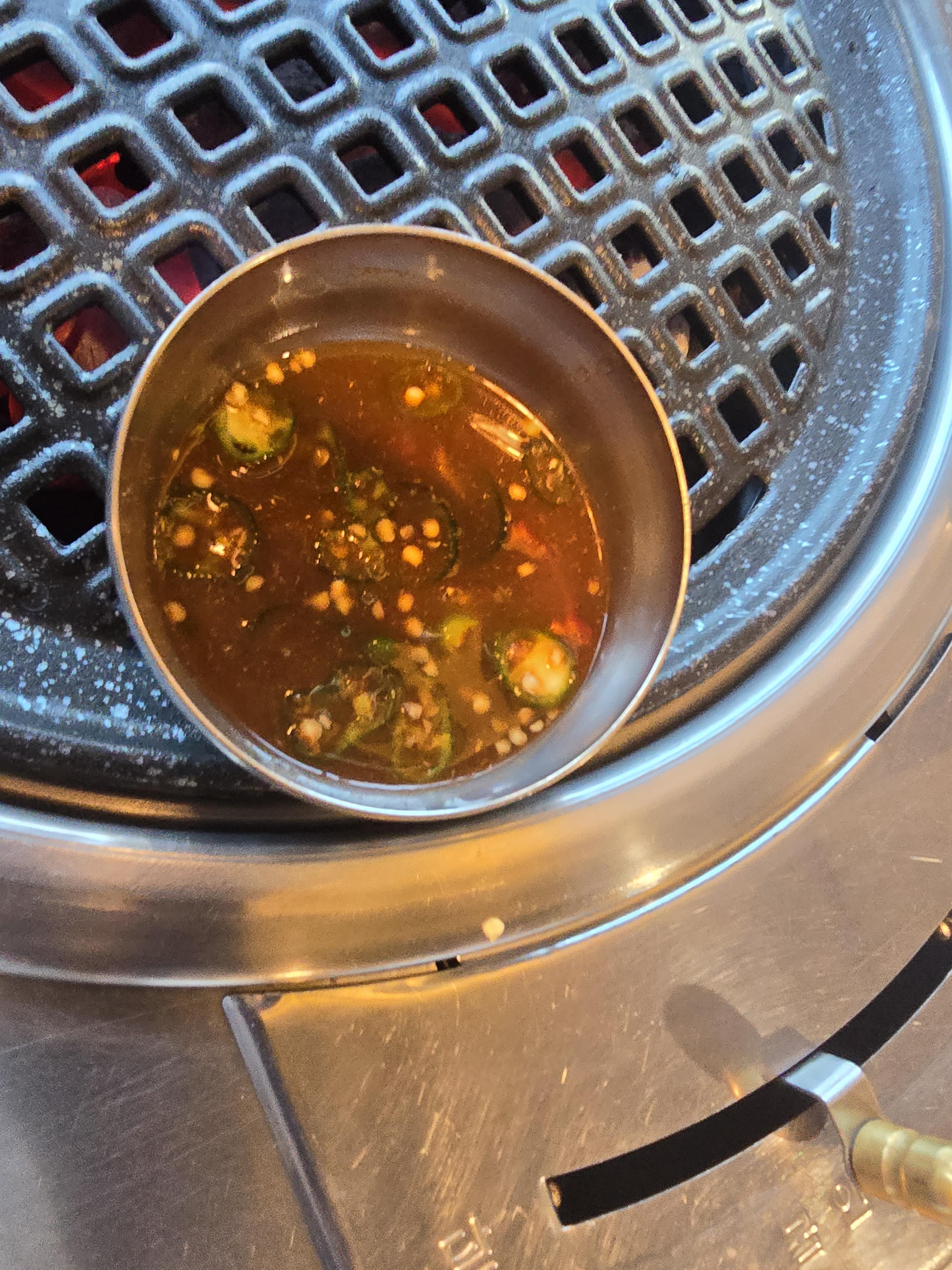 불판이 셋팅되고 함께 제공된 멜젓이예요