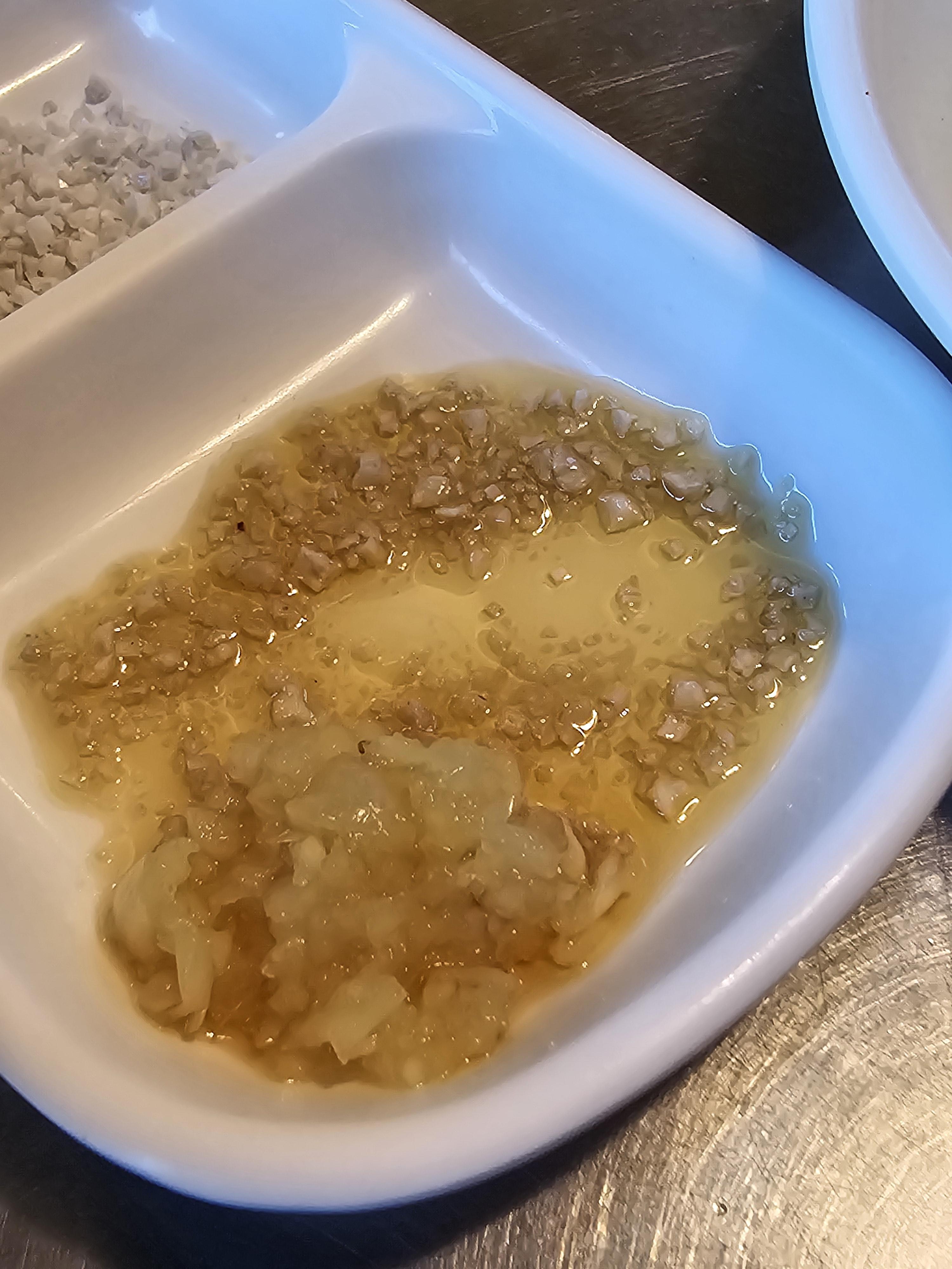 요것이 바로바로 기름장 식당의 시그니처 기름장이예요 다른 식당과 다른점은 기름장에 다진마늘을 같이 주신다는 점이예요