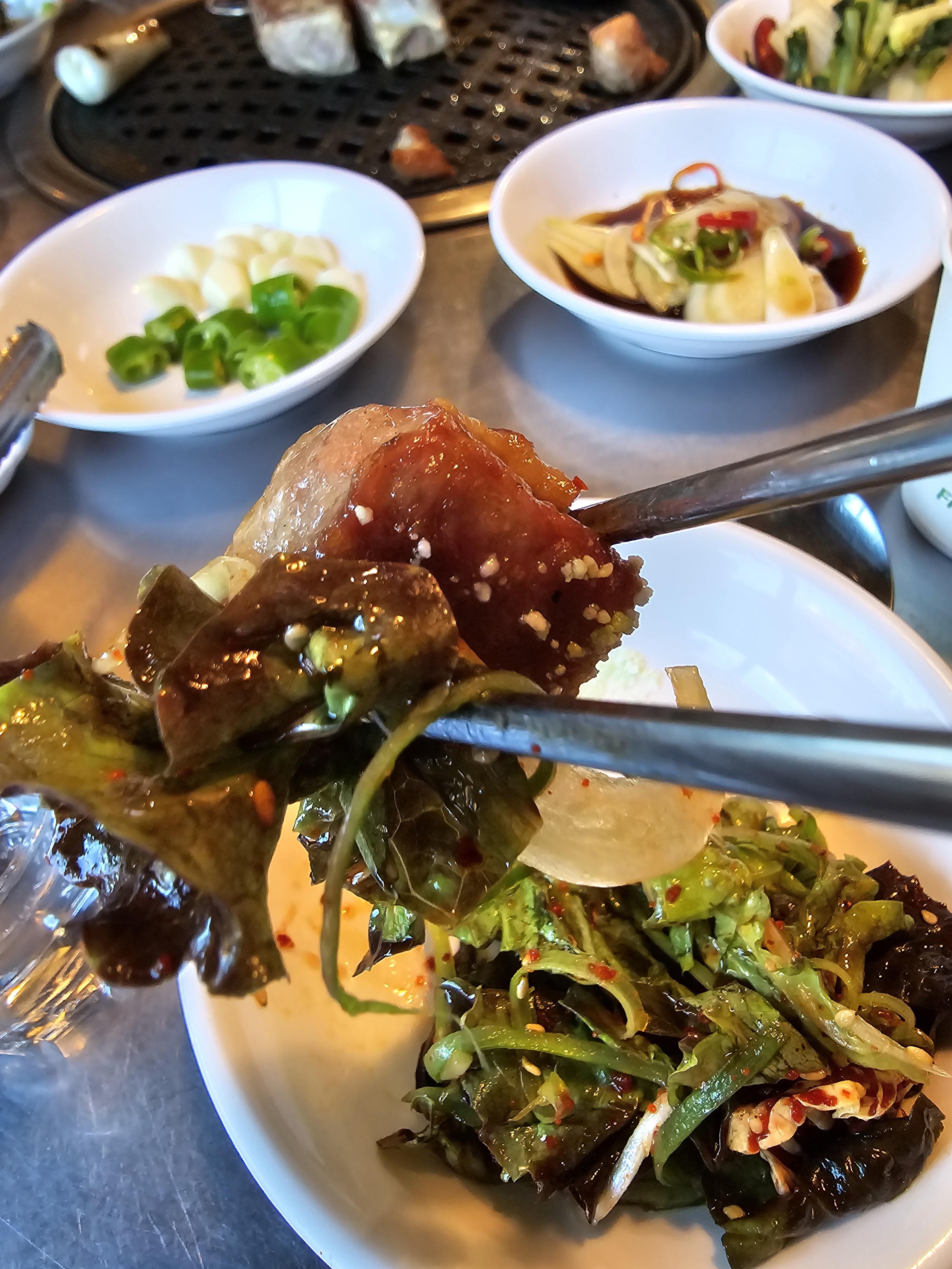 파절이에다가 상추 양배추채를 넣어서 무침으로 나오는데 고기와 함께 먹으니까 딱 이었어요