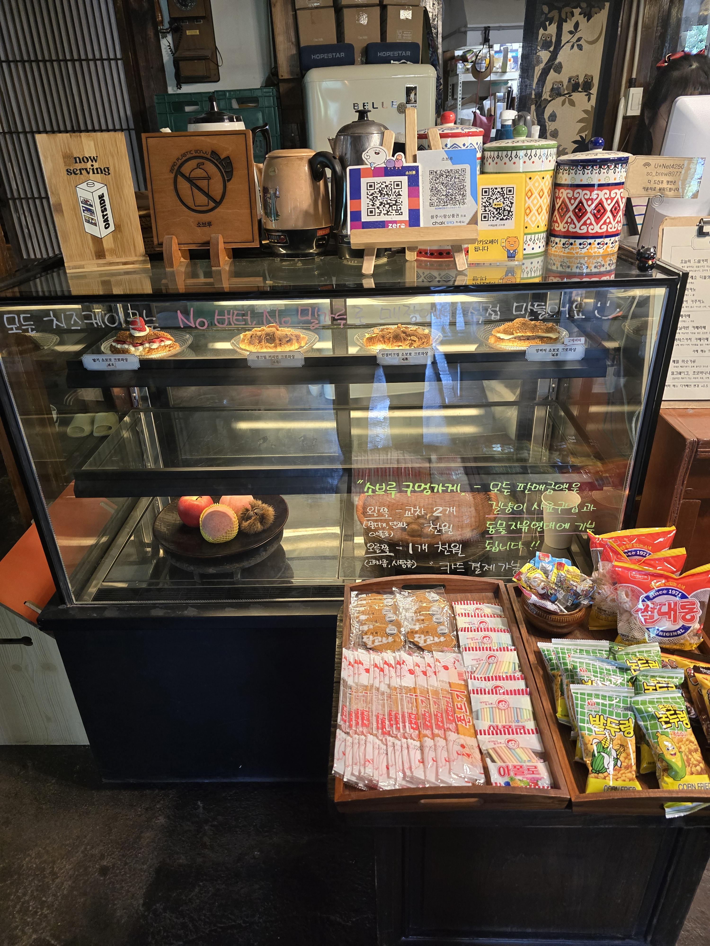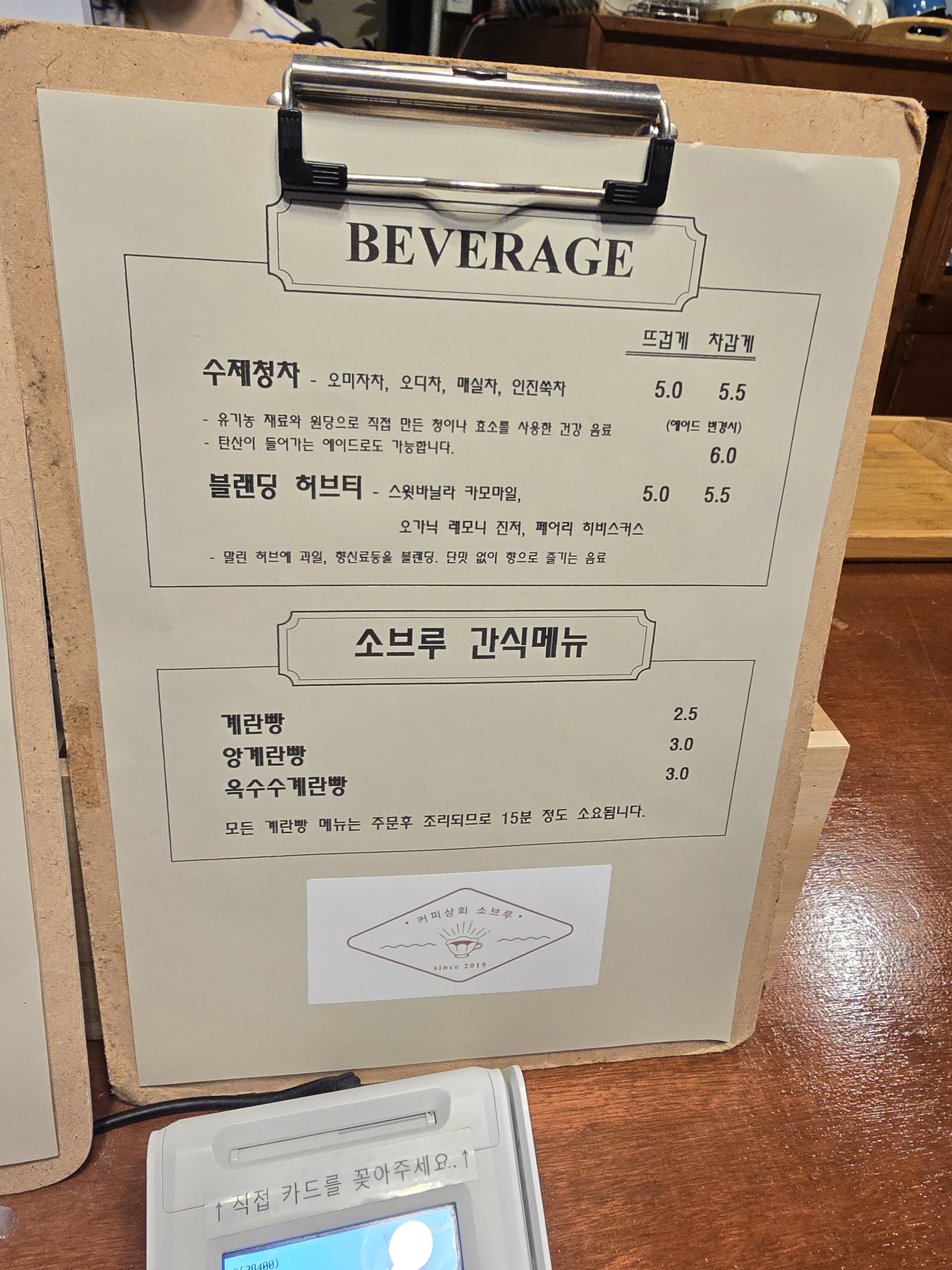 메뉴는 다른 카페에서 판매하는 커피류 뿐만 아니라 쌍화라떼, 미숫가루 등 소브루만의 메뉴가 돋보이더라고요