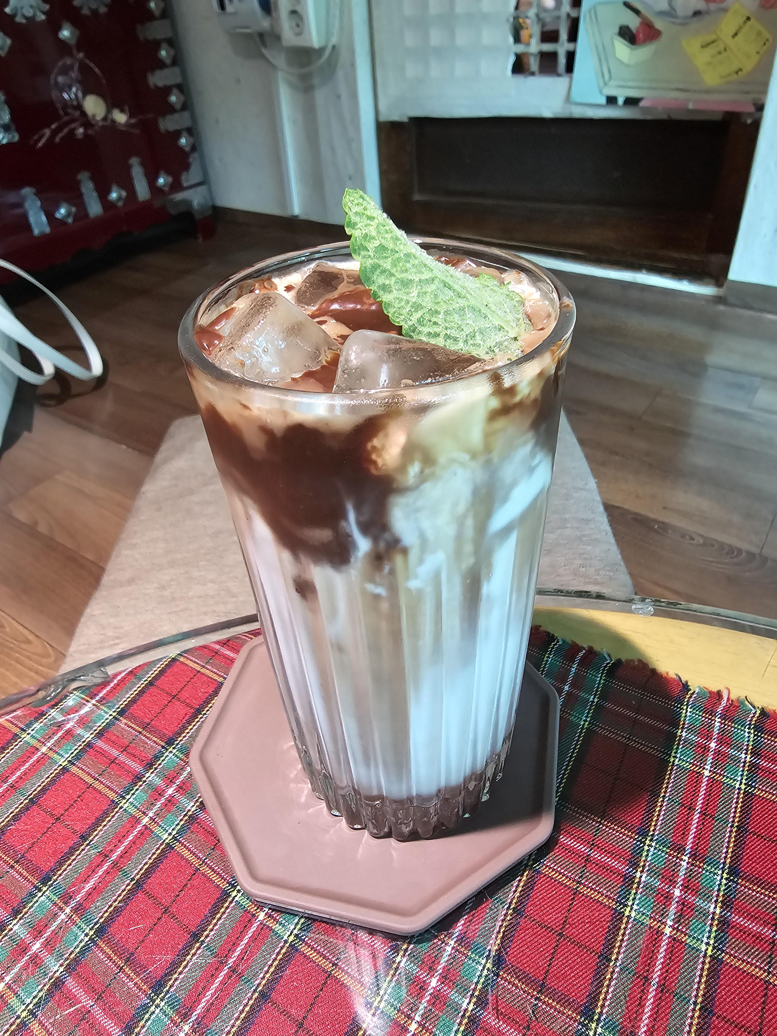 초콜릿라떼는 그라디에이션이 너무 이쁘게 나왔는데 맛도 역시 달달하게 좋다고 하더라고요