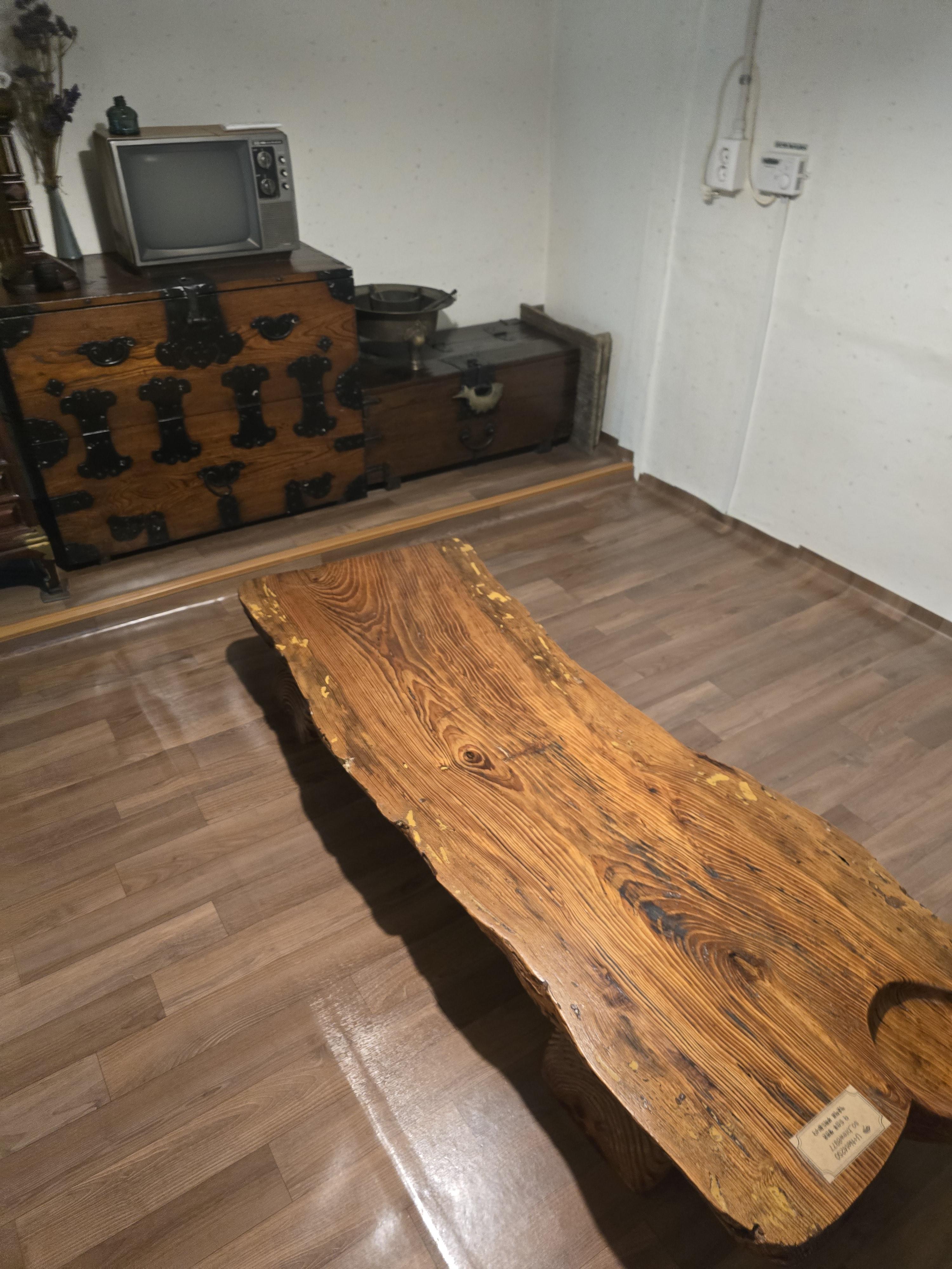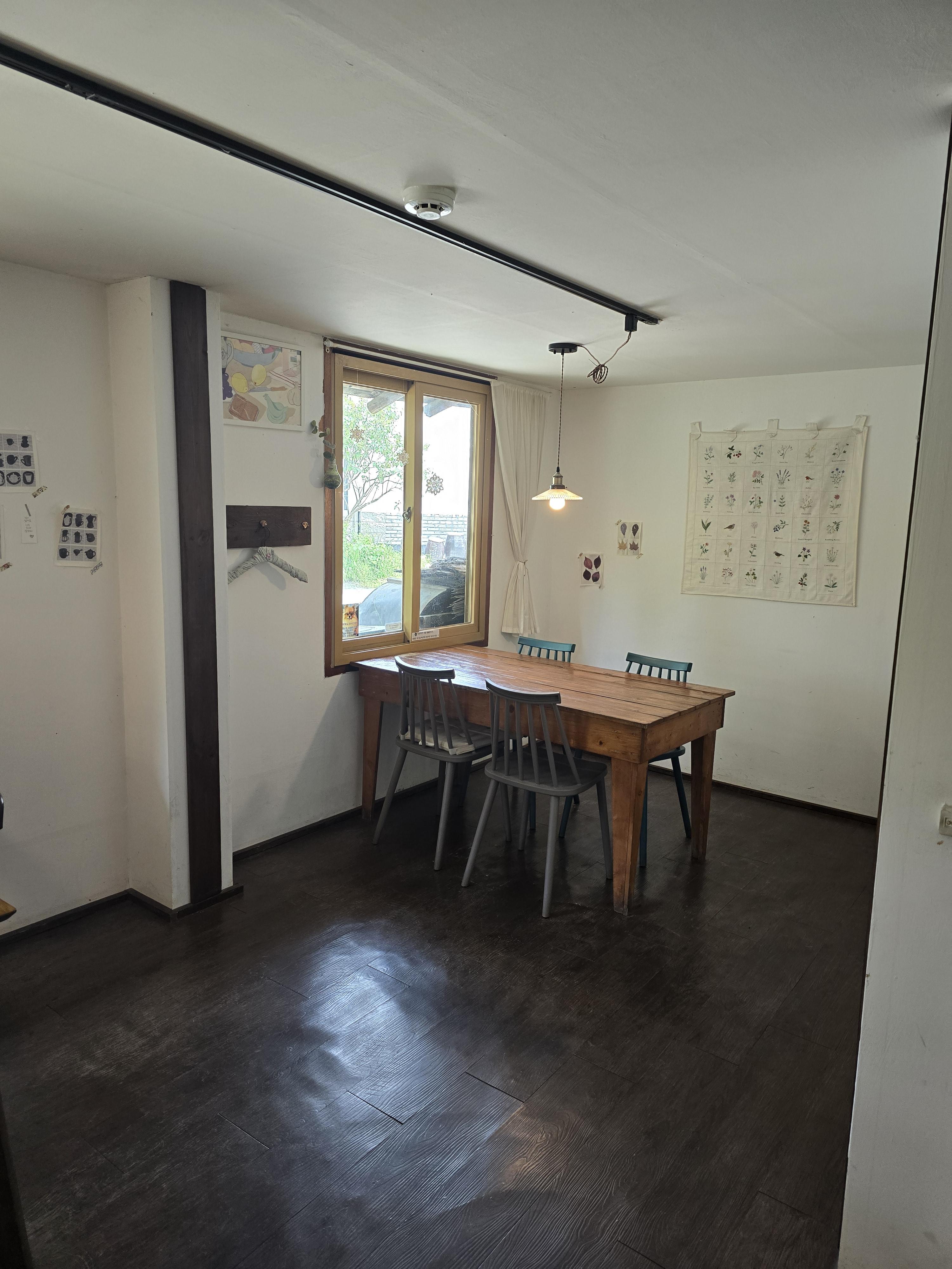 멋진 테이블이죠? 원목 통테이블이 있는 방도 있었고요