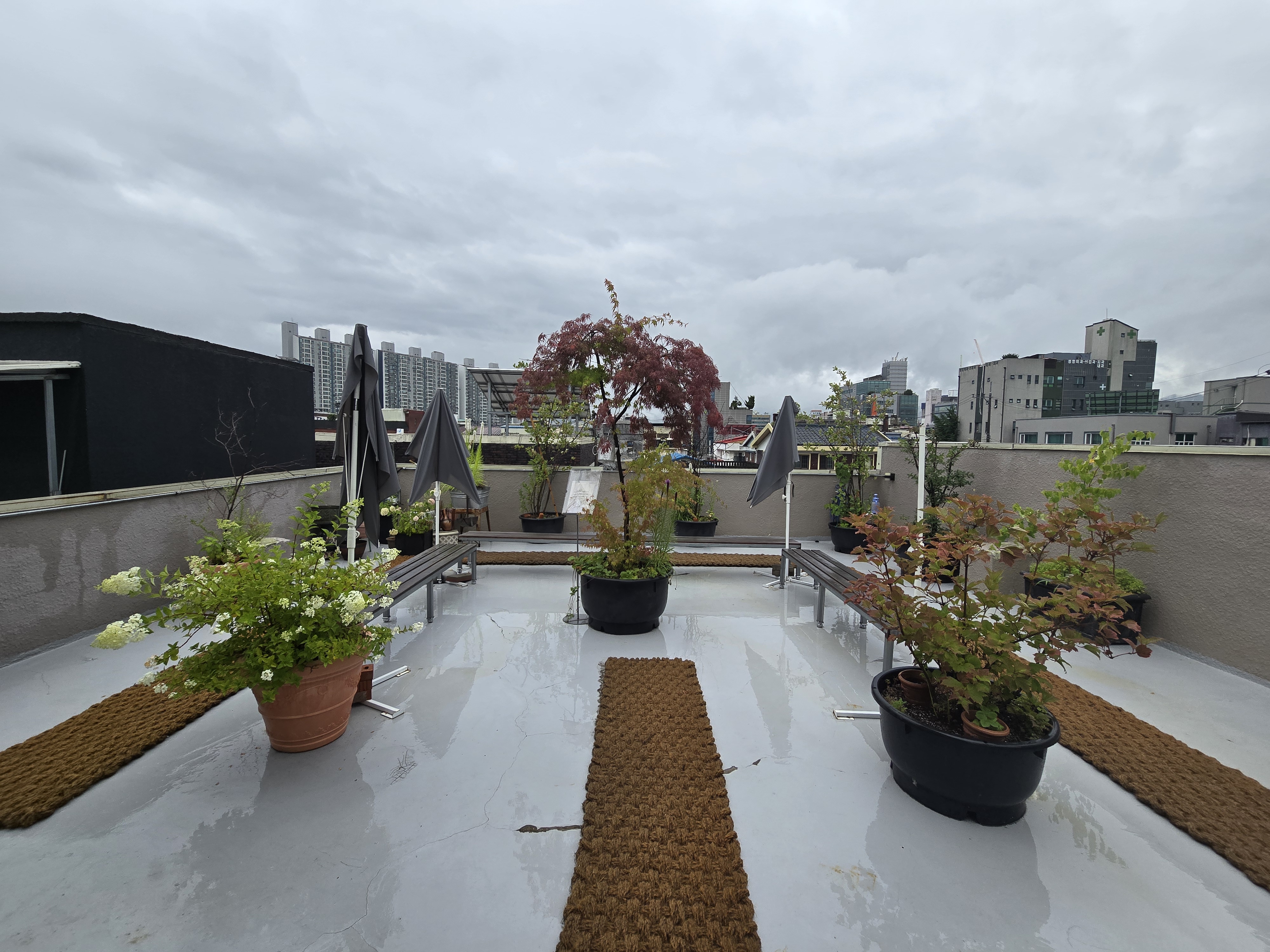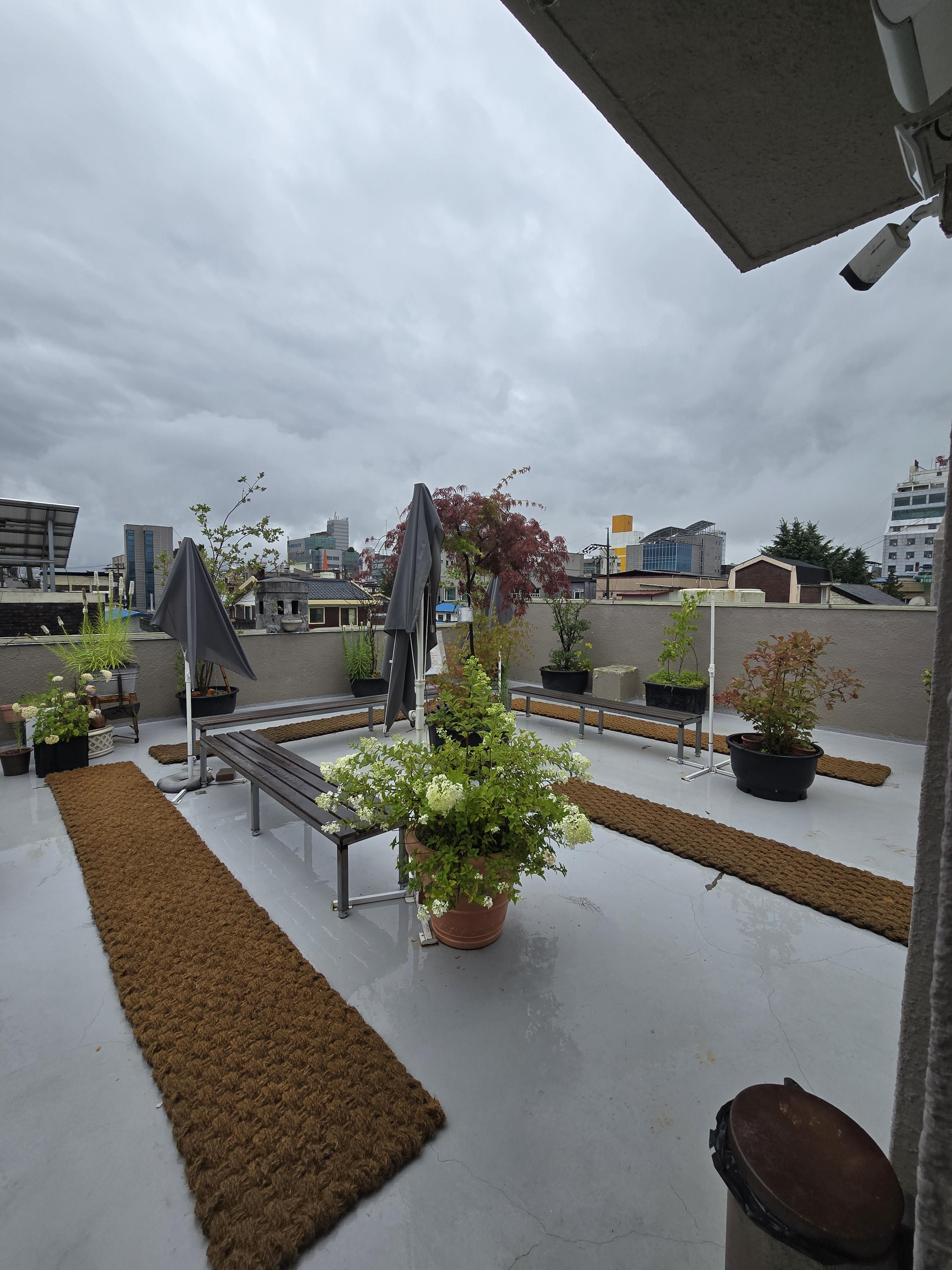 여기는 3층 루프탑이예요 비가 오는 날이라 테이블은 다 철수를 했는데 비가 안올때 오면 너무 좋겠다는 생각이 들더라고요