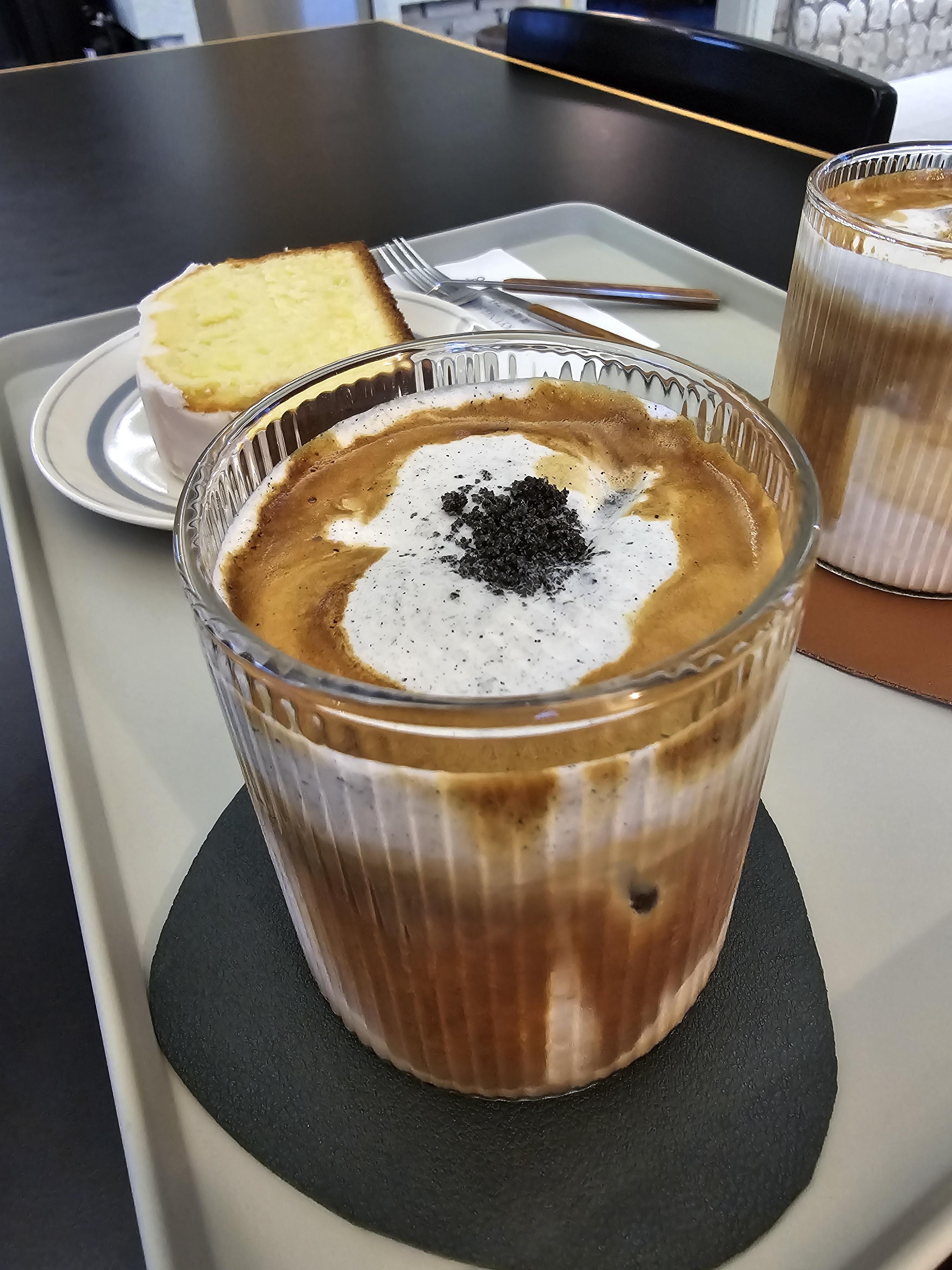 참깨크림라떼는 참깨를 곱게 갈아서 올려주시는데 고소한 향기를 맡으면서 입안 가득 고소해지는 고소함 파티네요