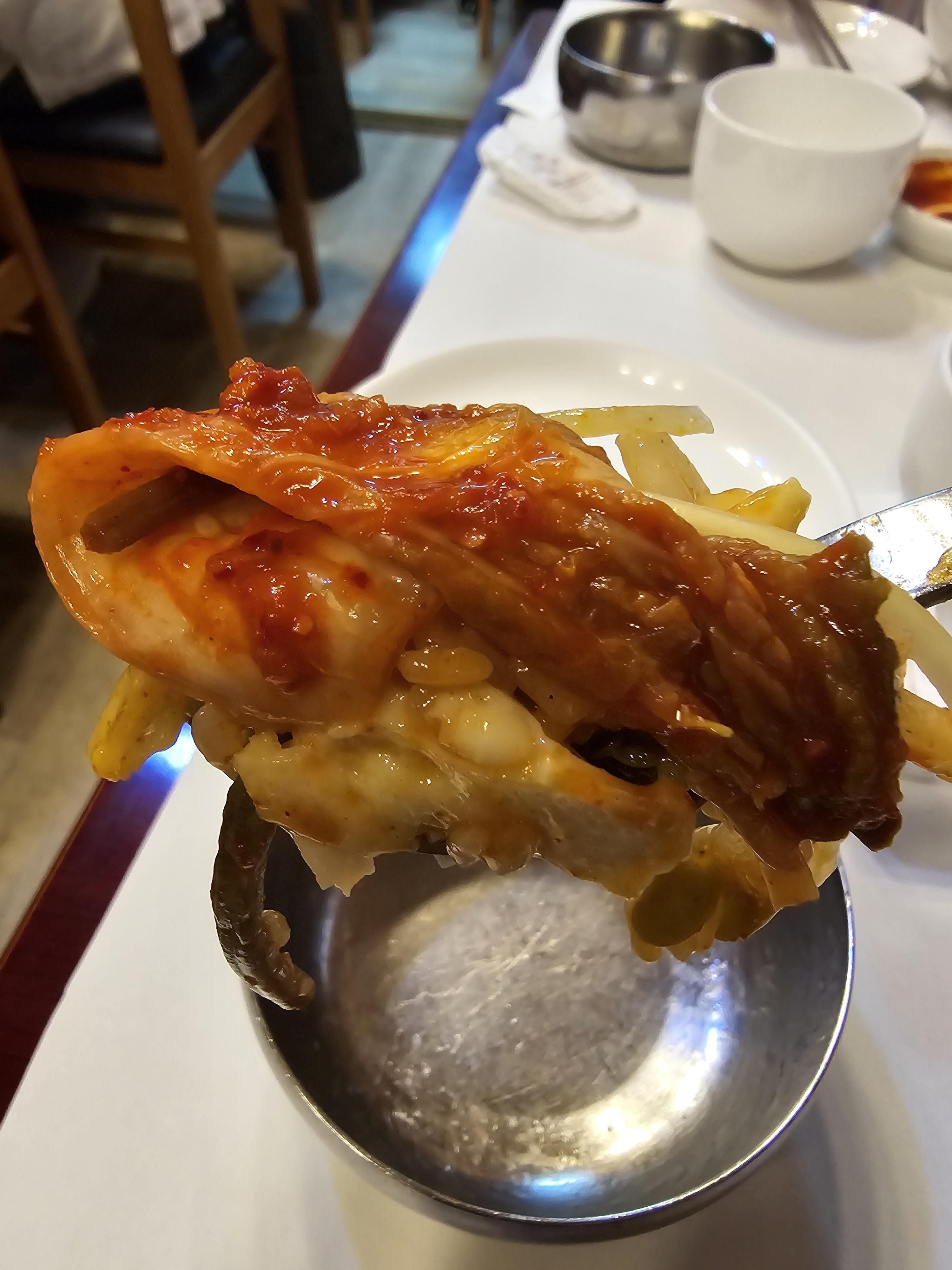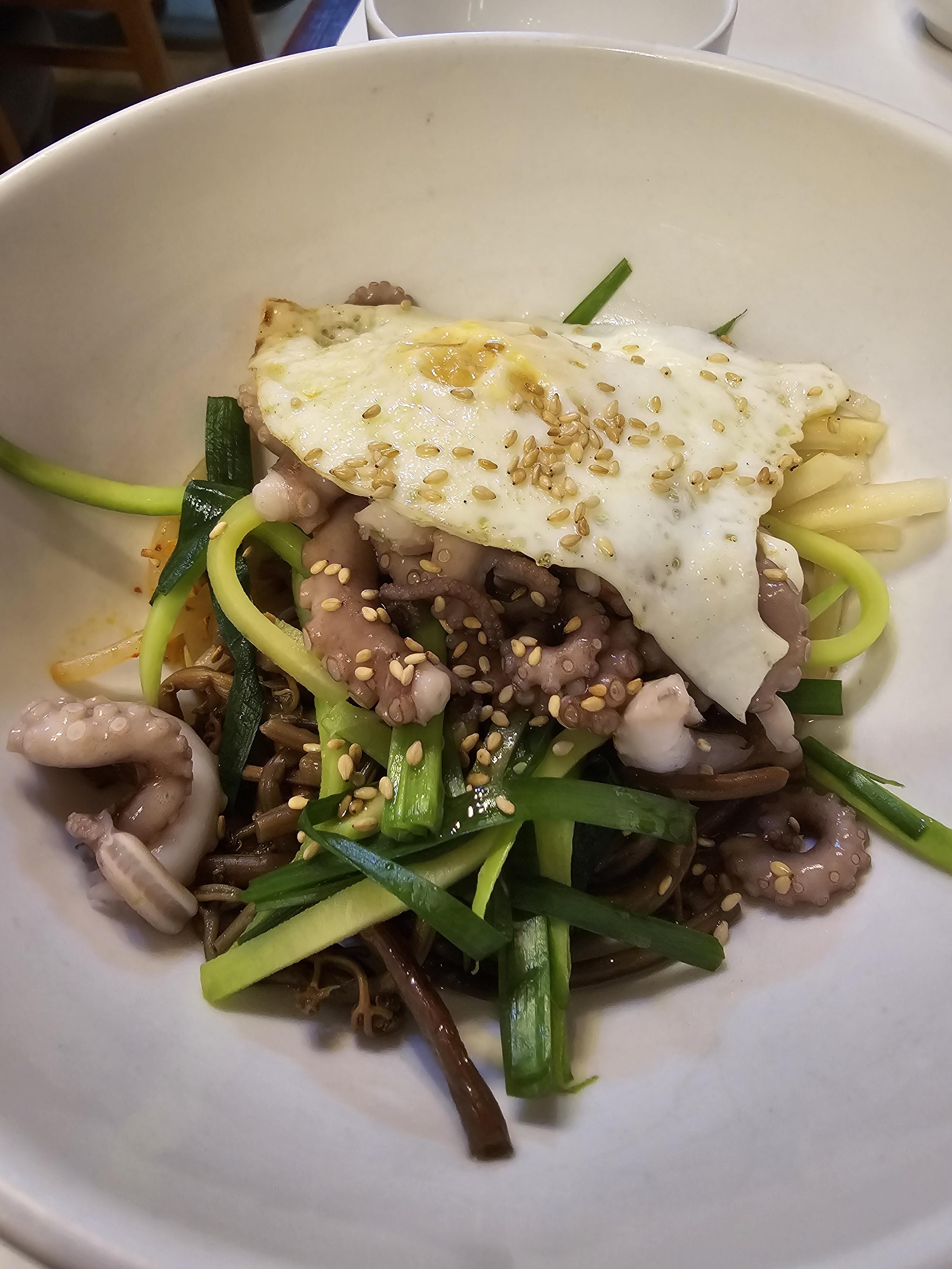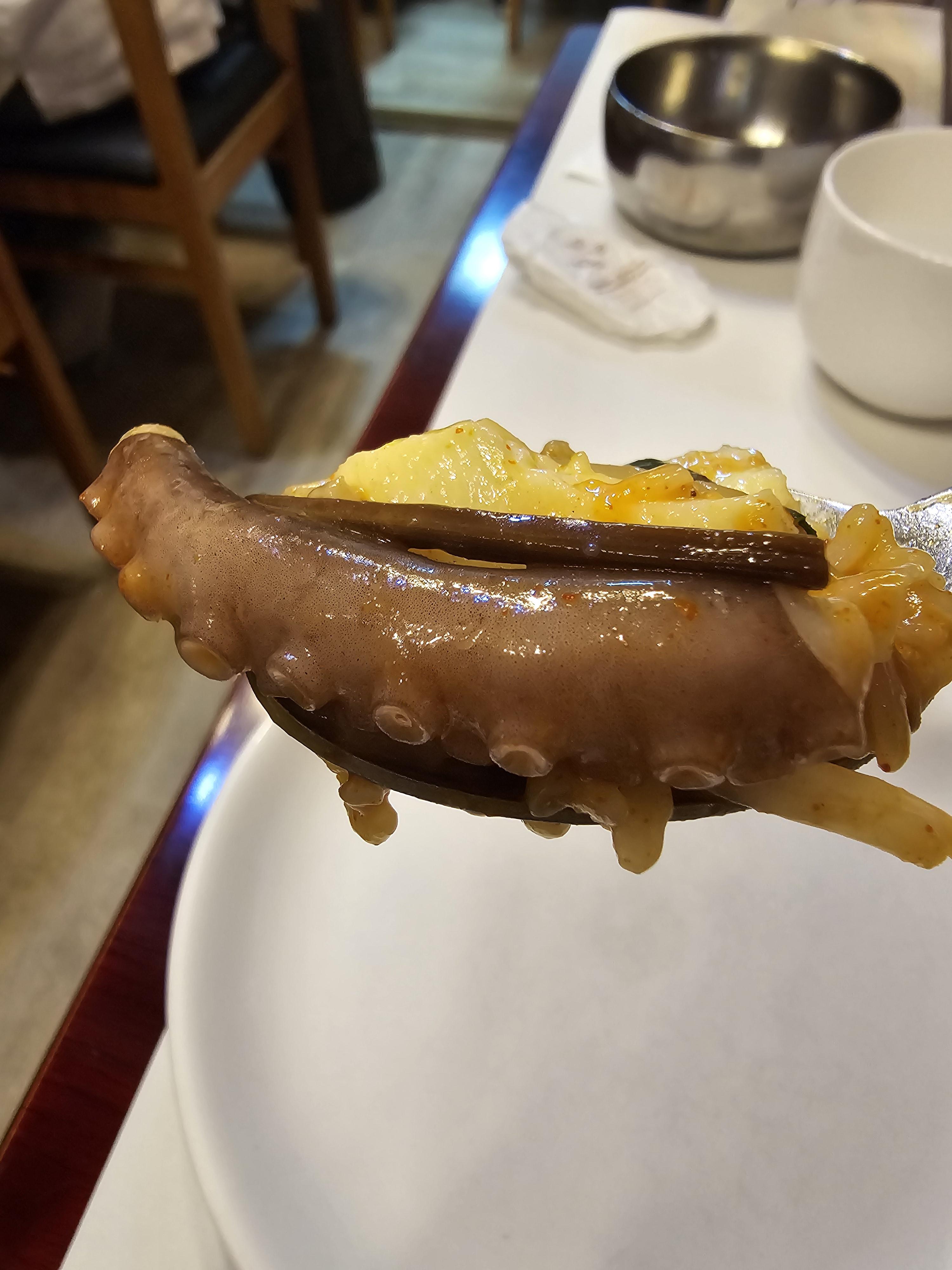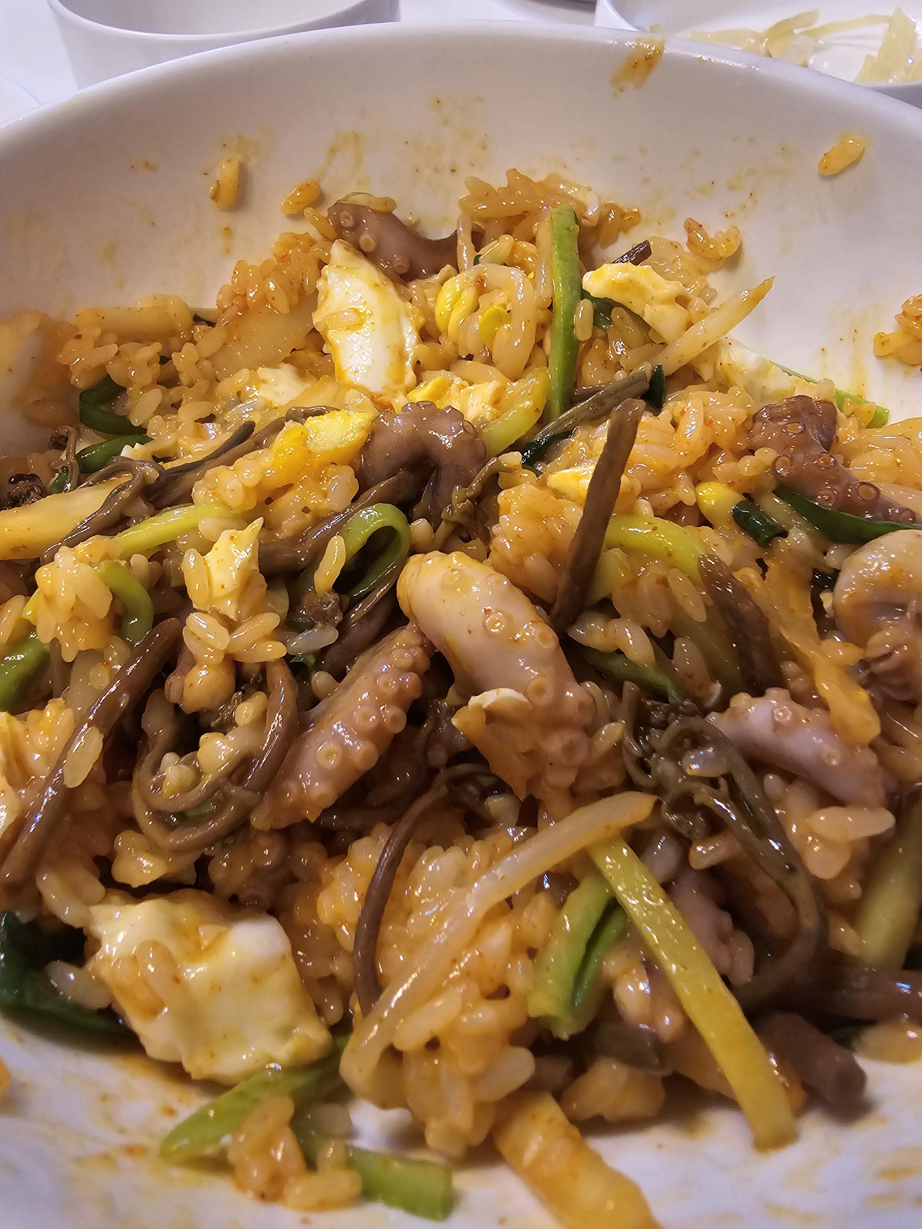 실한 낙지가 많이 들어가서 좋았고 제가 알던 매운 낙지비빔밥이 아니어서 더 좋았어요