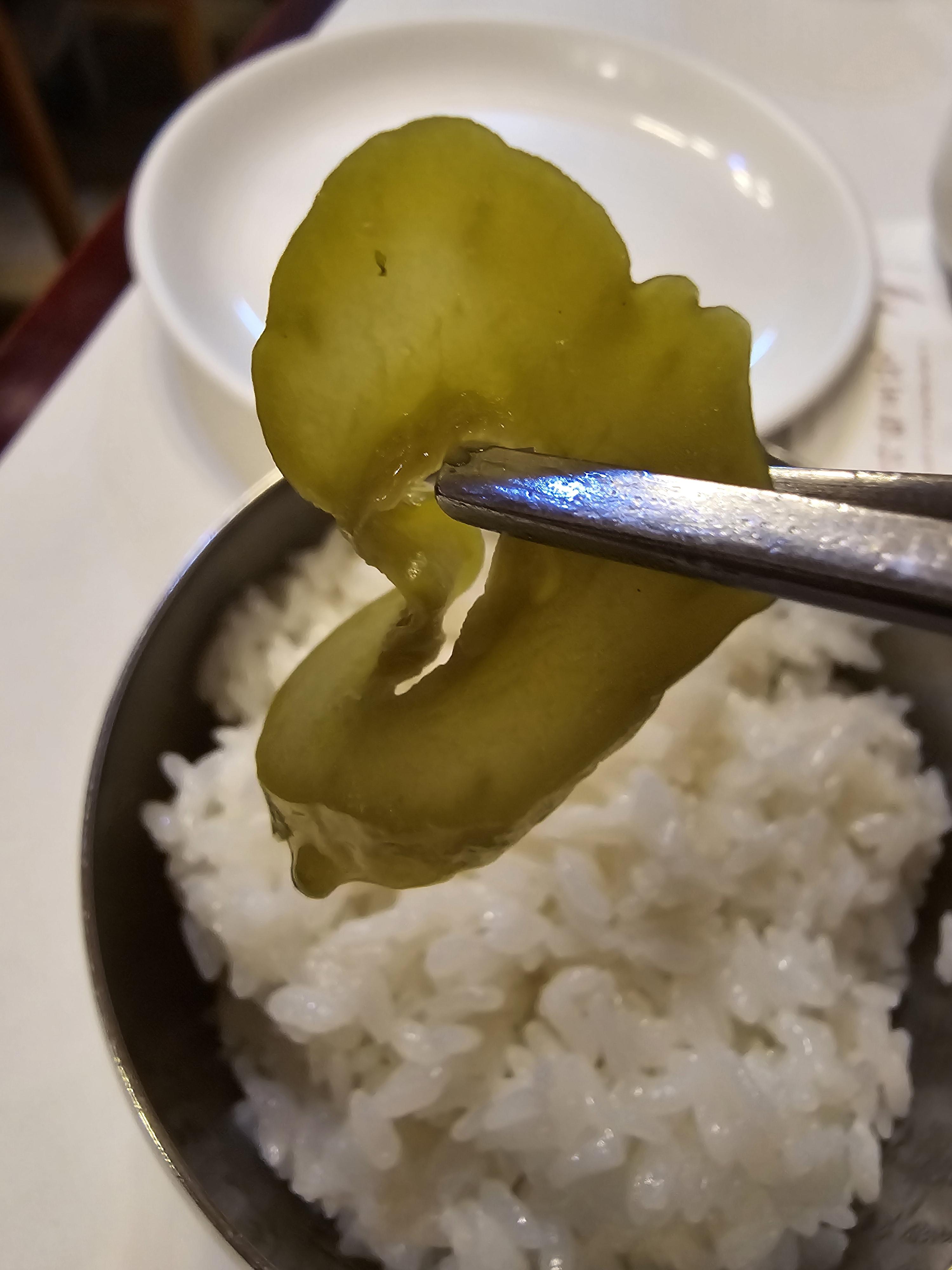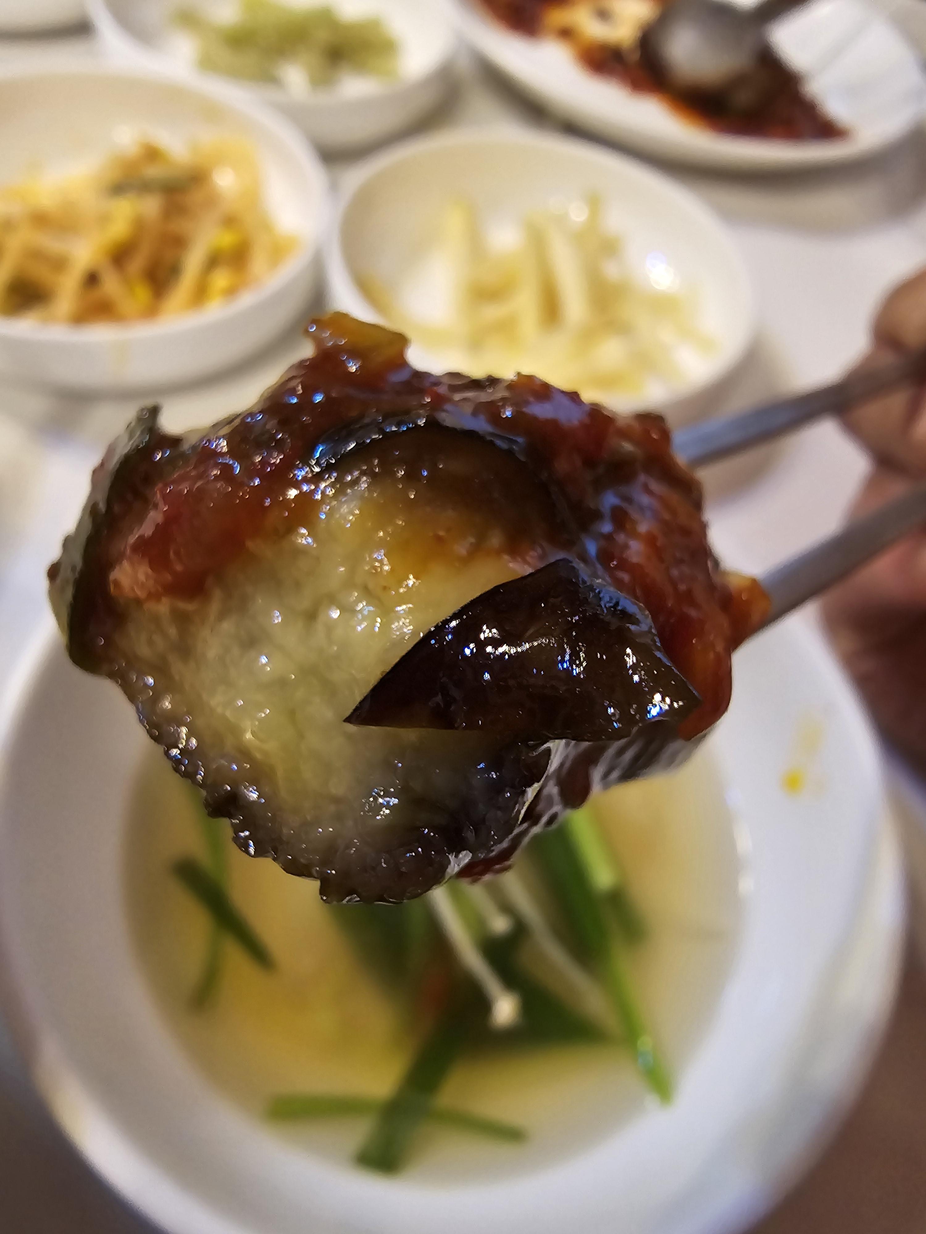 가지찜을 들어보니 채즙이 꽉 채워져 있는게 눈에도 보였고 한입 베어 물어보니 가지의 채즙이 입안에 가득 차면서 양념이 적당히 매콤해서 굉장히 맛있었어요