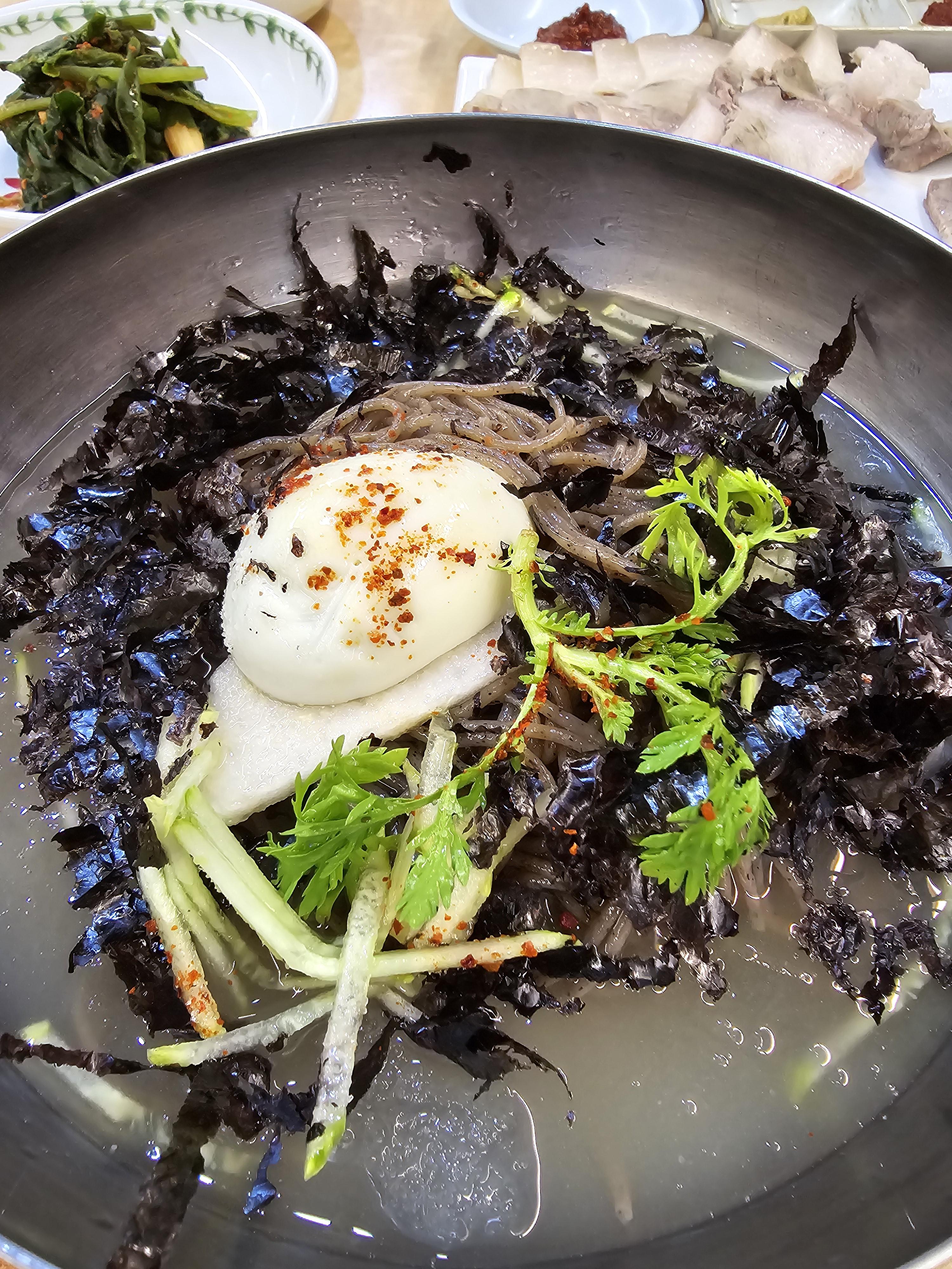 저는 딸아이와 둘이서만 방문해서 편육 중자와 물막국수 그리고 사리를 추가했어요 😁