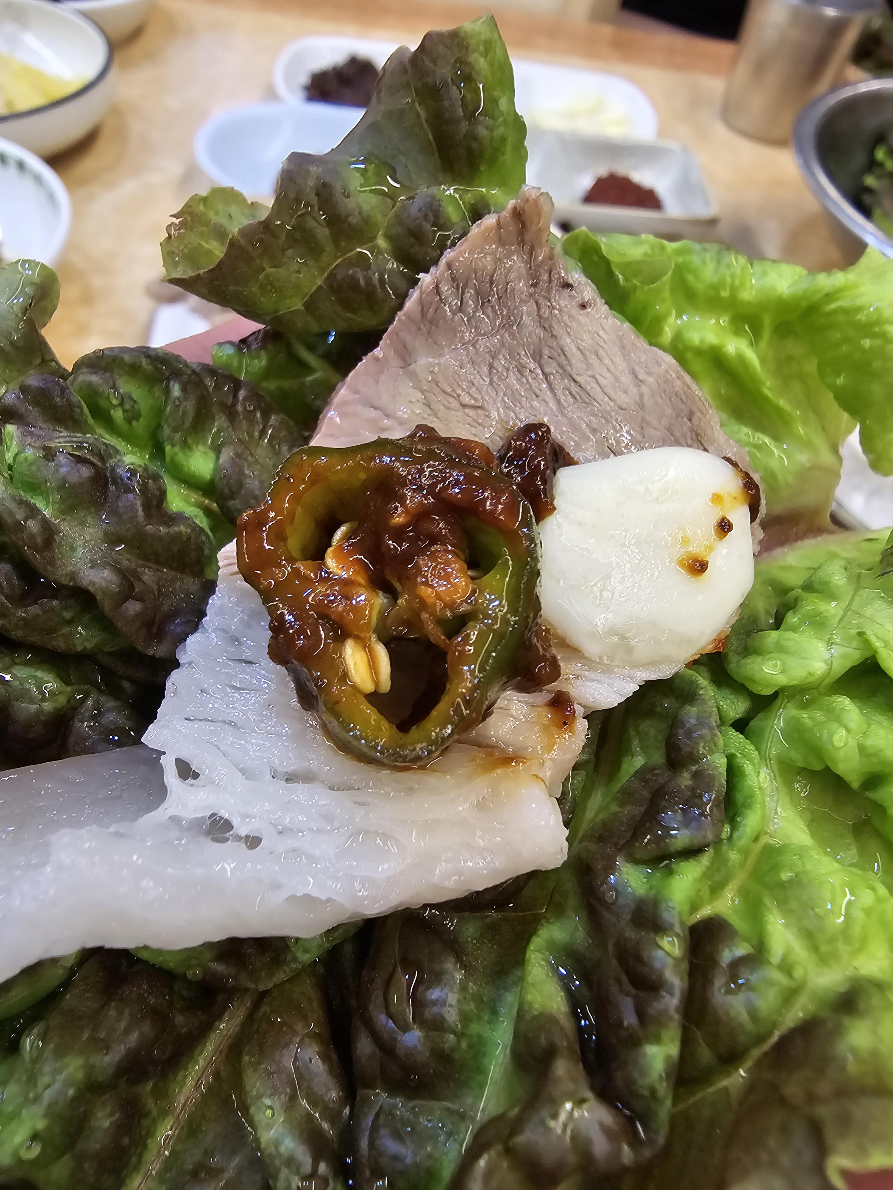 한쌈 싸서 야무지게 한입에 먹어주었어요