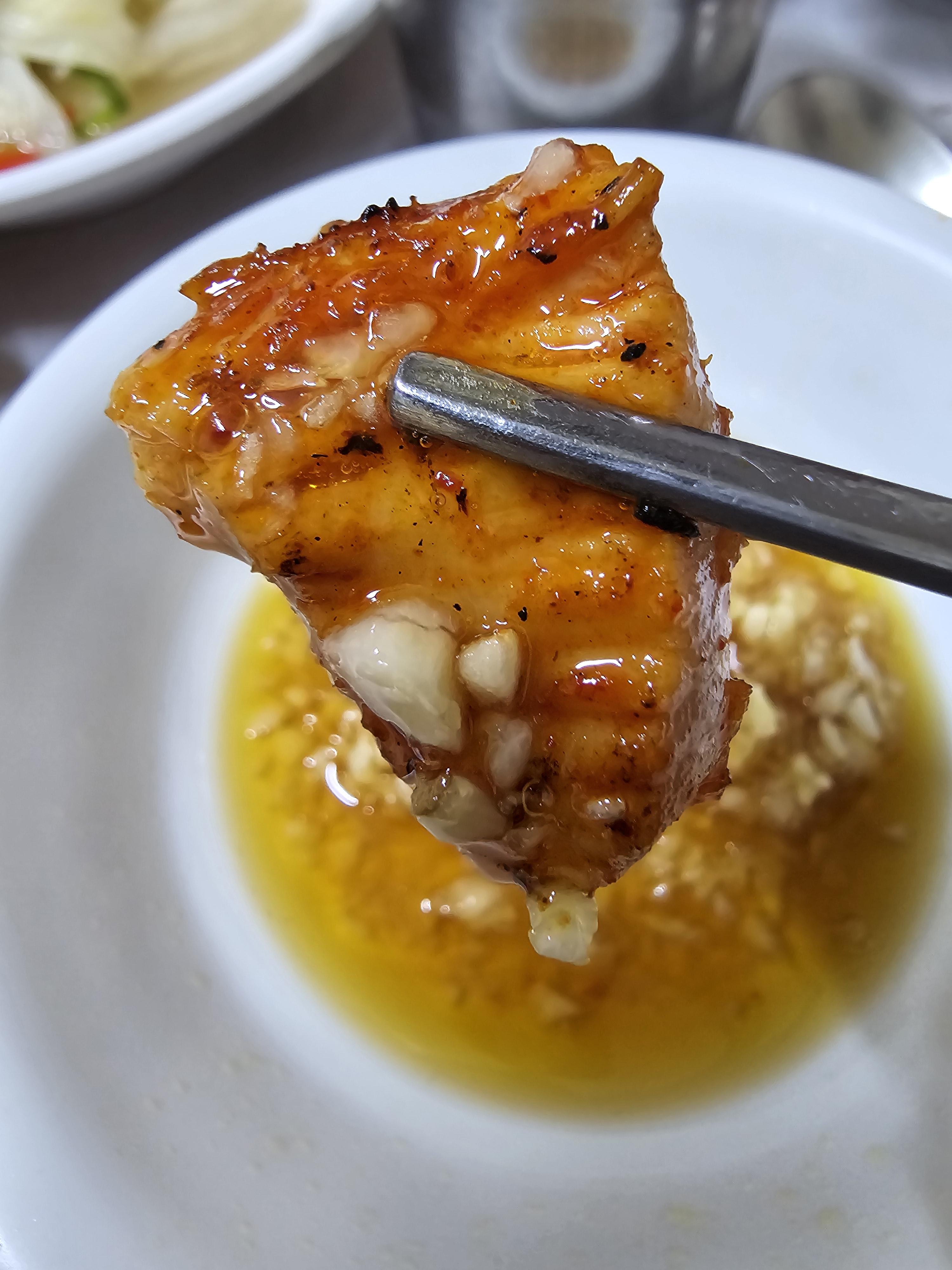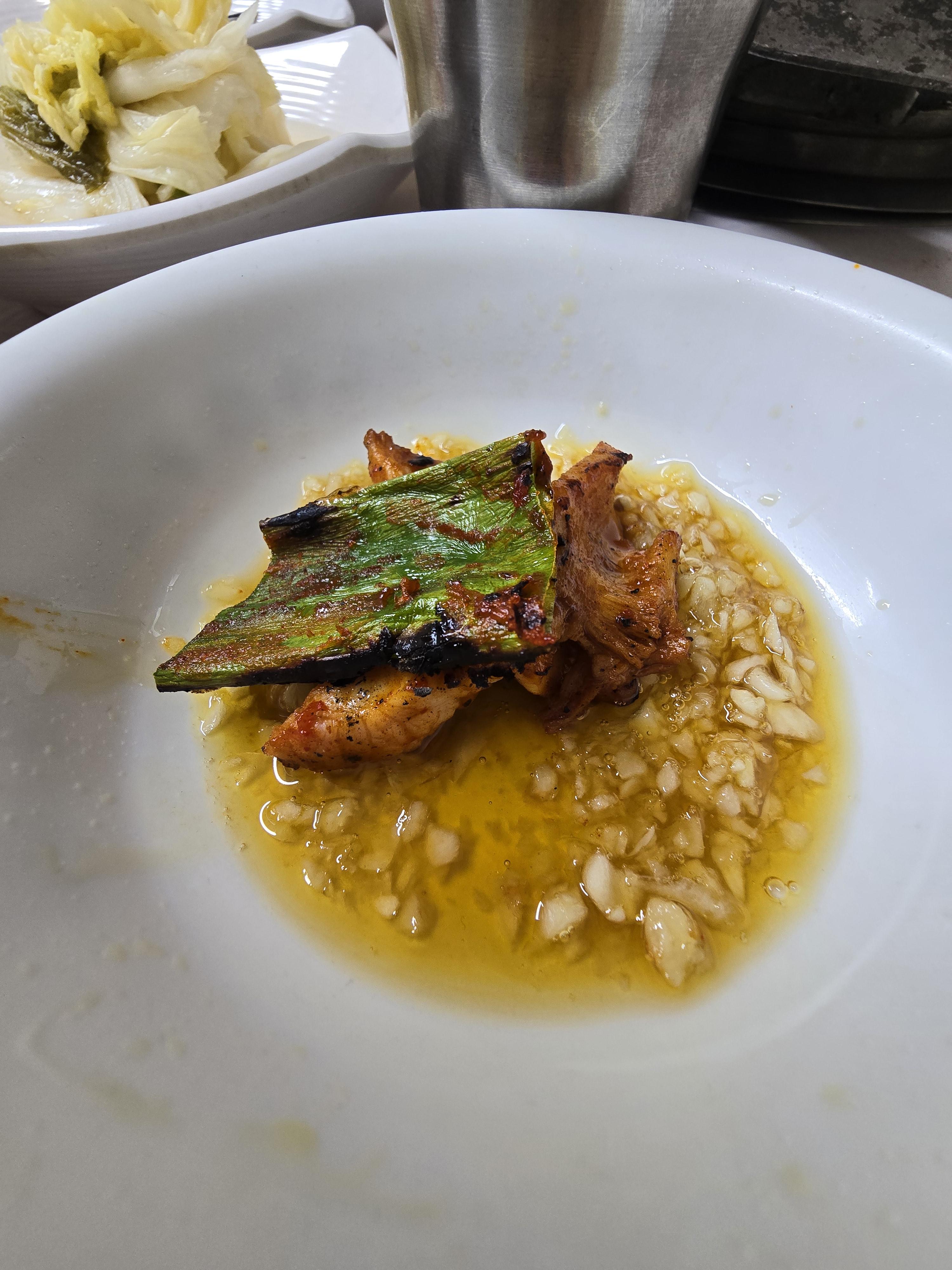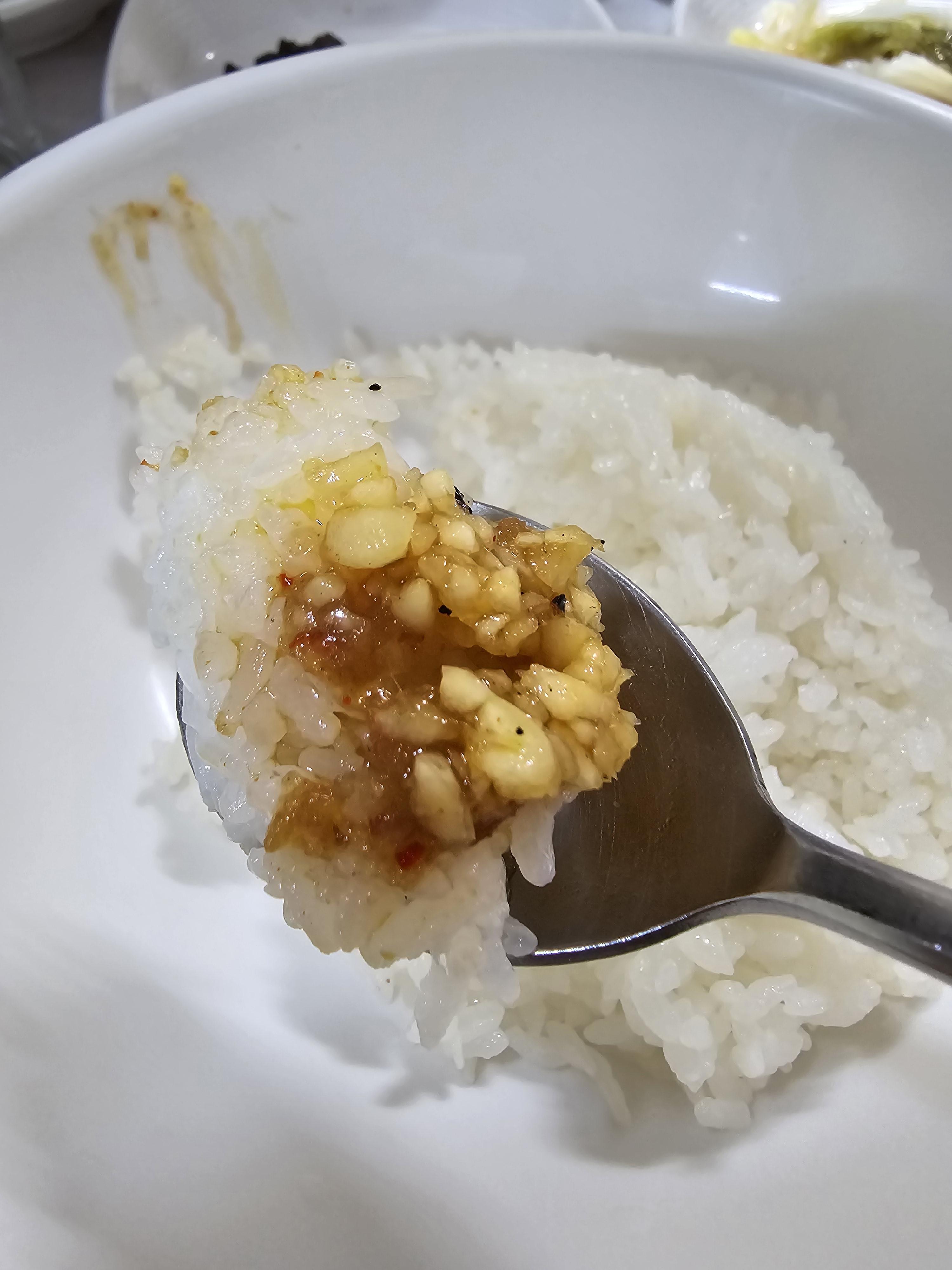 사장님 맛팁에 따라서 마늘기름장에 한숟가락 올려서 먹어보았는데 이거 요물이었어요 갓 지은 밥에 마늘기름장이 이렇게 고소하고 맛있는 줄은 이번에 처음 알게 되었어요 😄🫡