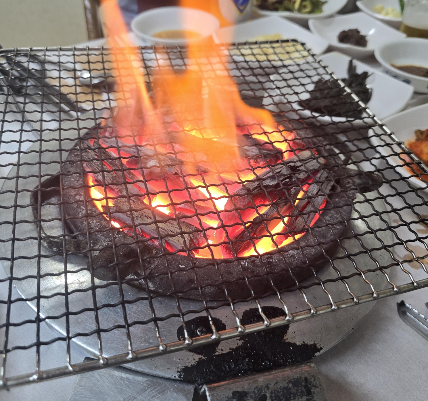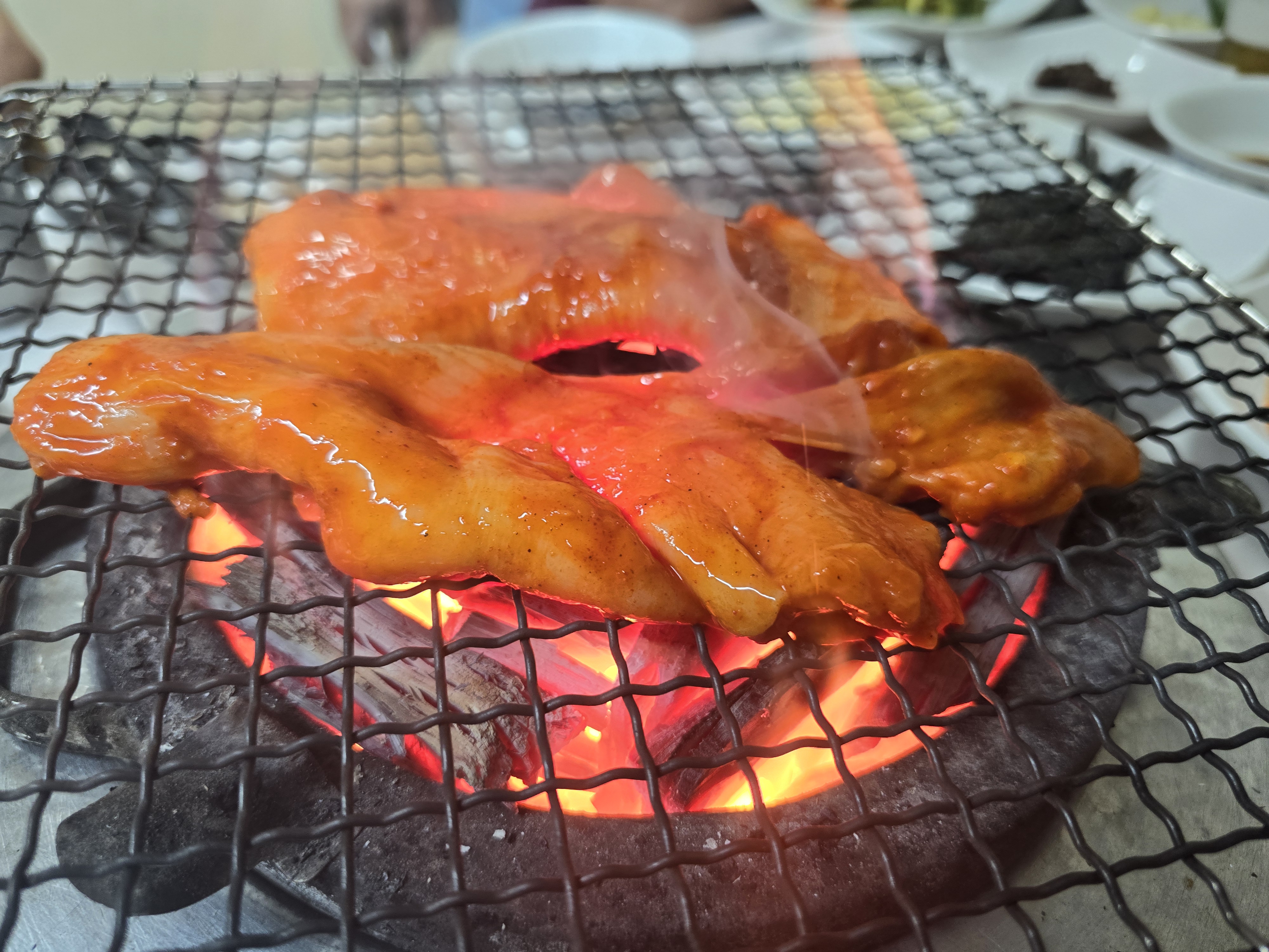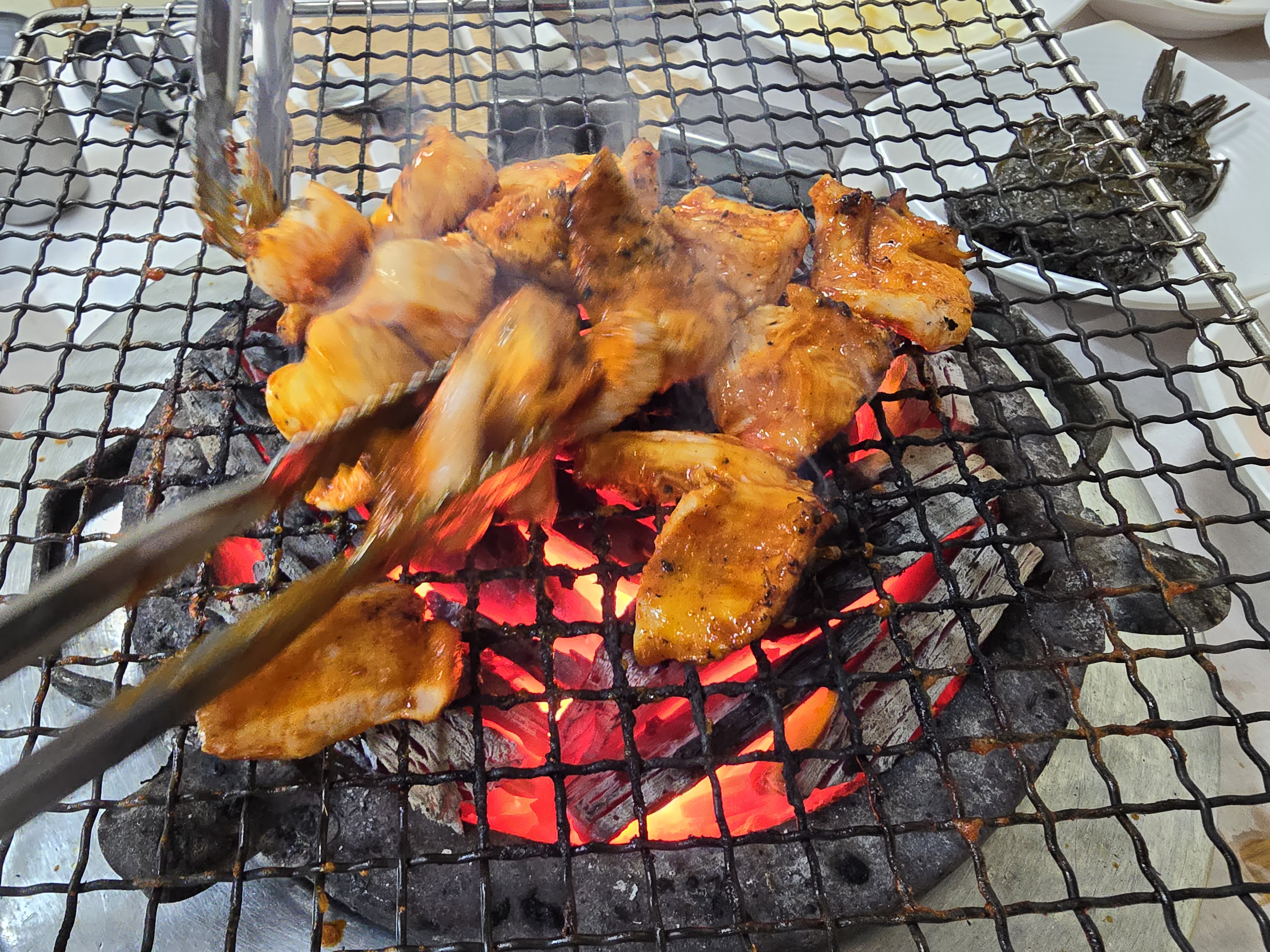 활활타는 좋은 숯불에 구워먹는 고기는 숯향이 베어서 더욱 맛있겠지요? 😅