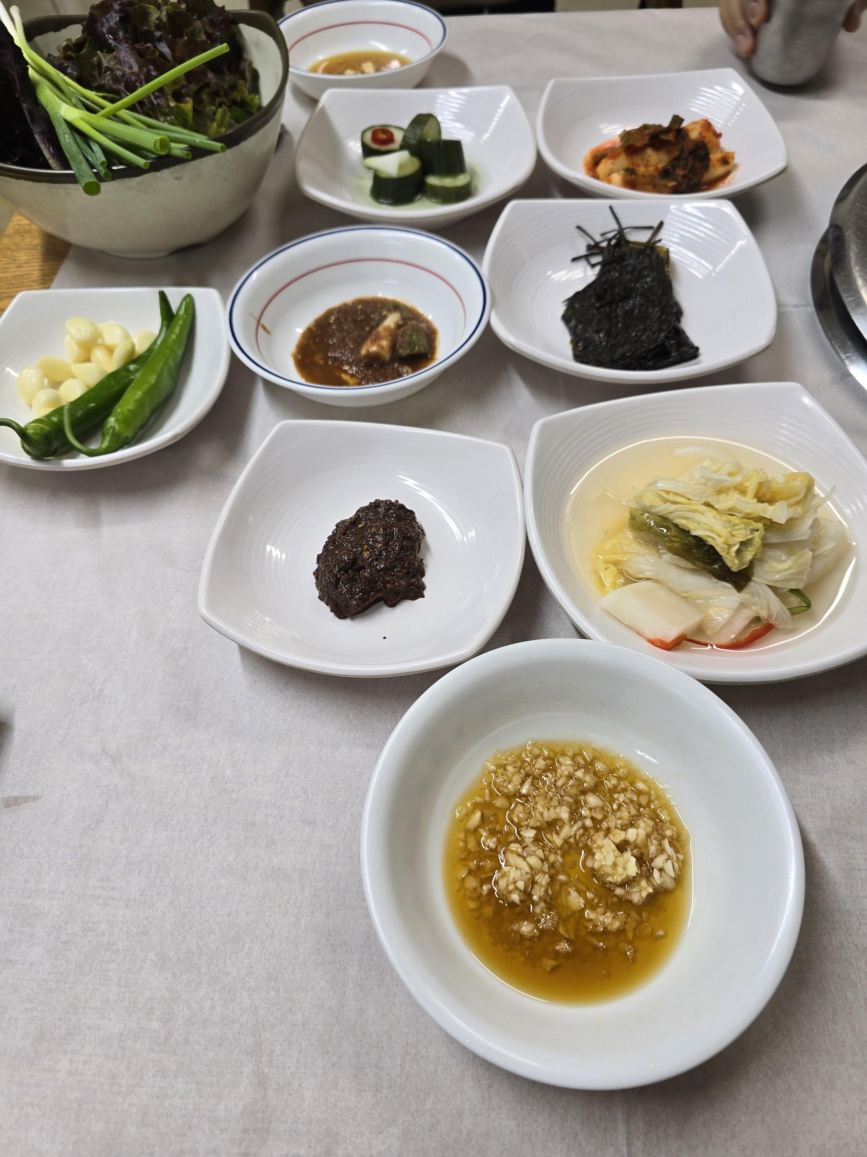 양구이가 나오기 전에 기본 반찬들이 셋팅되요