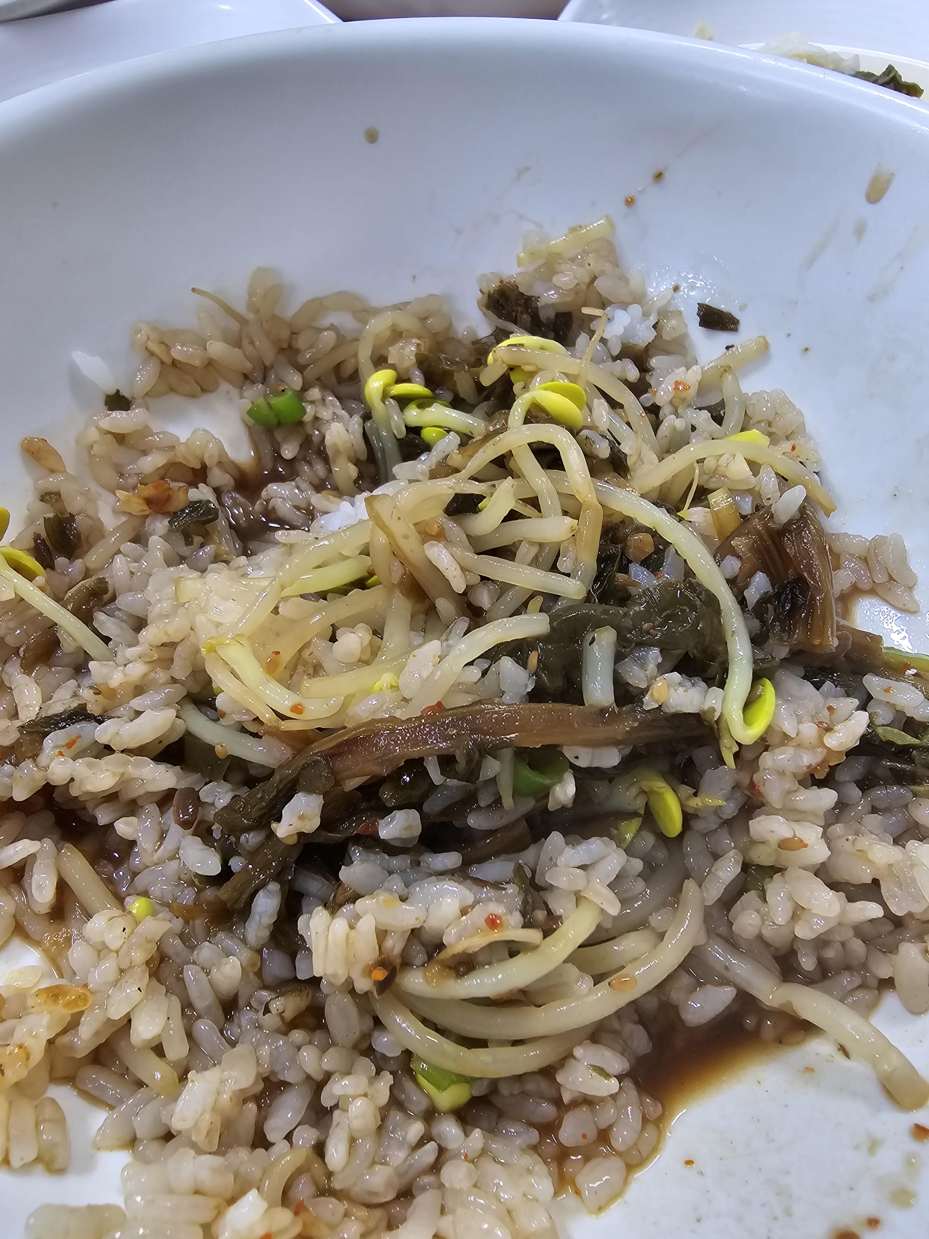 쓱쓱 잘 비벼서 먹어주면 아삭한 콩나물과 짭조름한 된장찌개와 시래기까지 이것도 맛있다를 연발할 수 밖에 없었어요