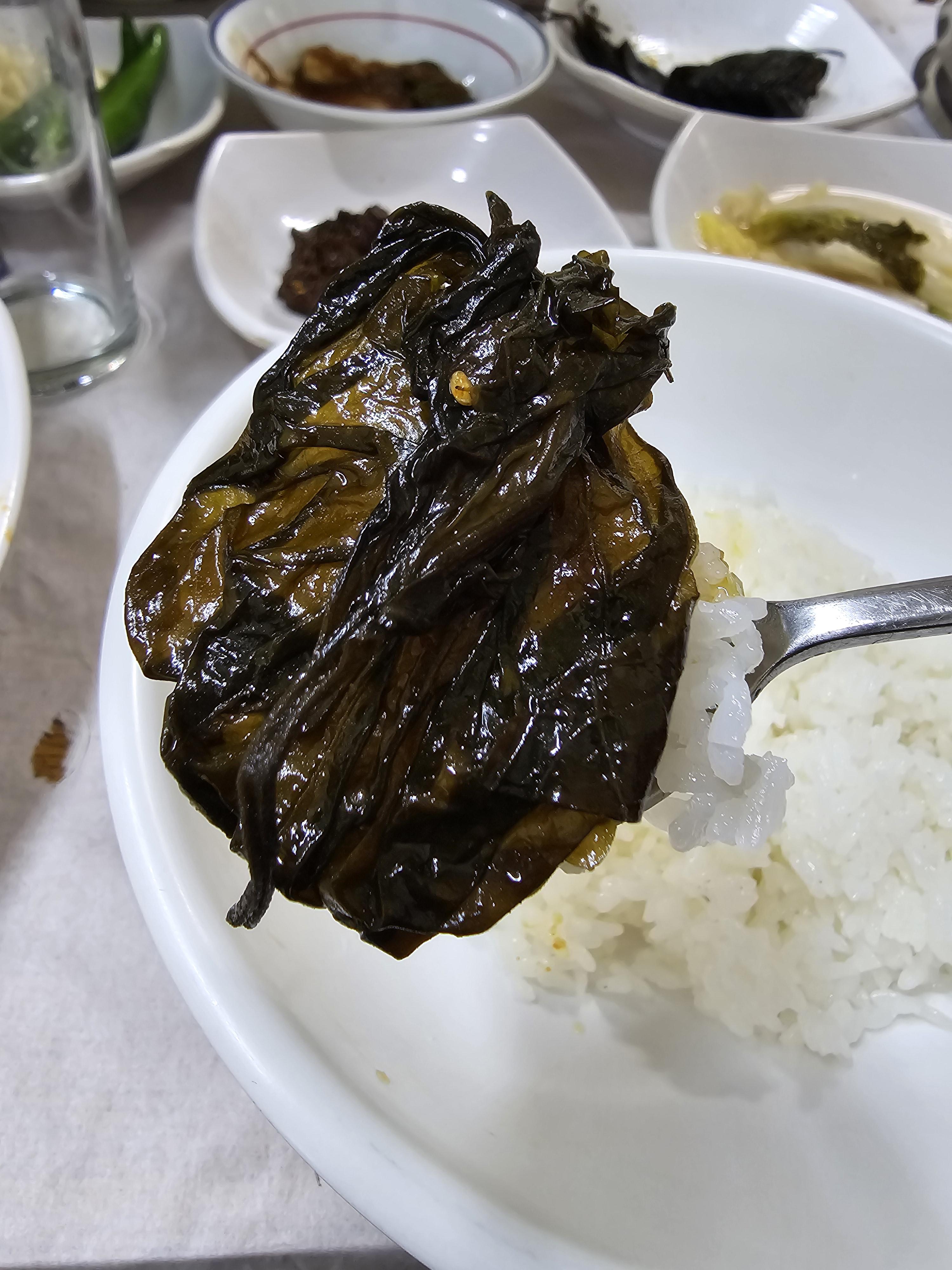 깻잎만 또 올려서 먹어보았는데 갓 지은 솥밥은 이런게 맛있는 밥이구나의 진수를 보여주네요