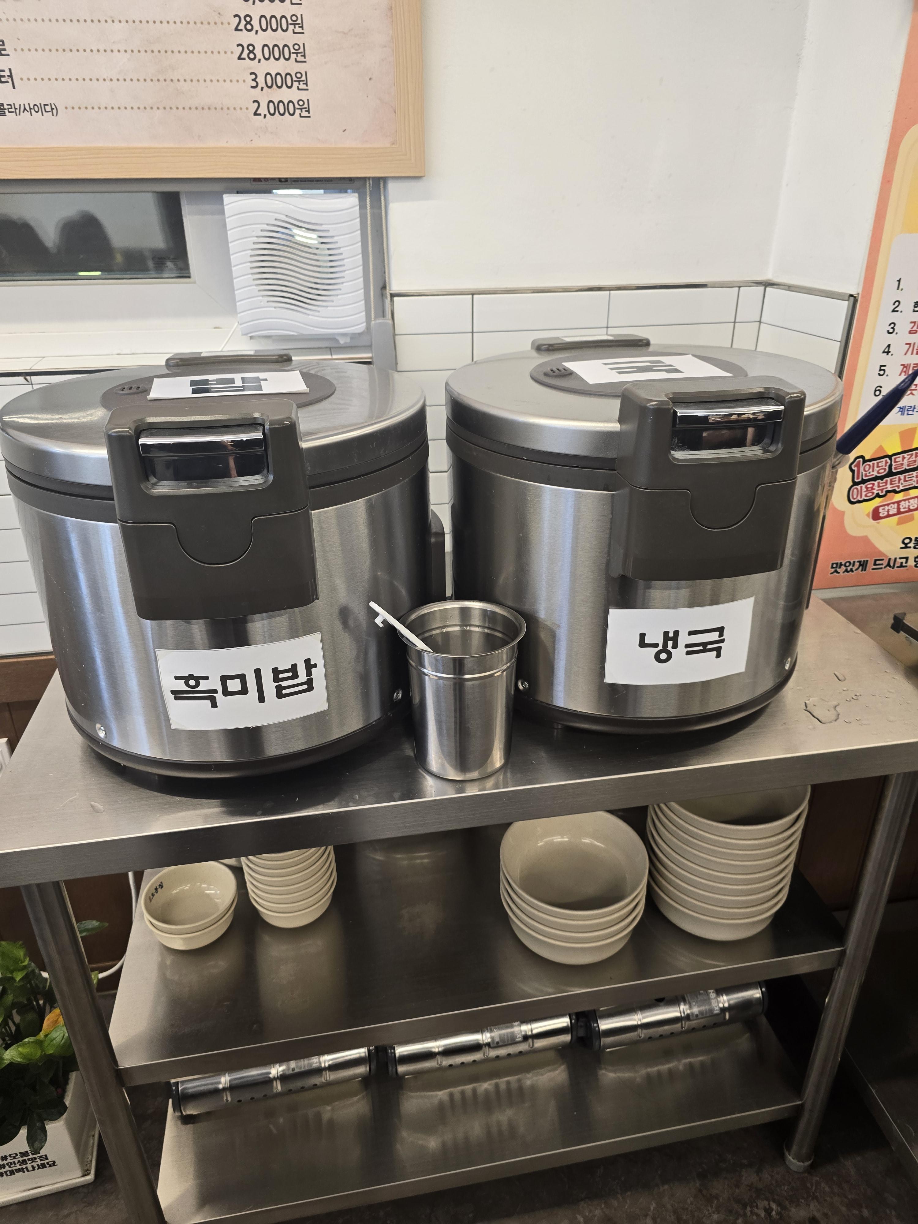 셀프바에서는 셀프계란후라이를 해서 드실 수 있고요 직화낙지를 대접에 넣어 비벼먹을 수 있도록 밥과 대접? 그리고 냉국을 양껏 가져다가 드시면 되요