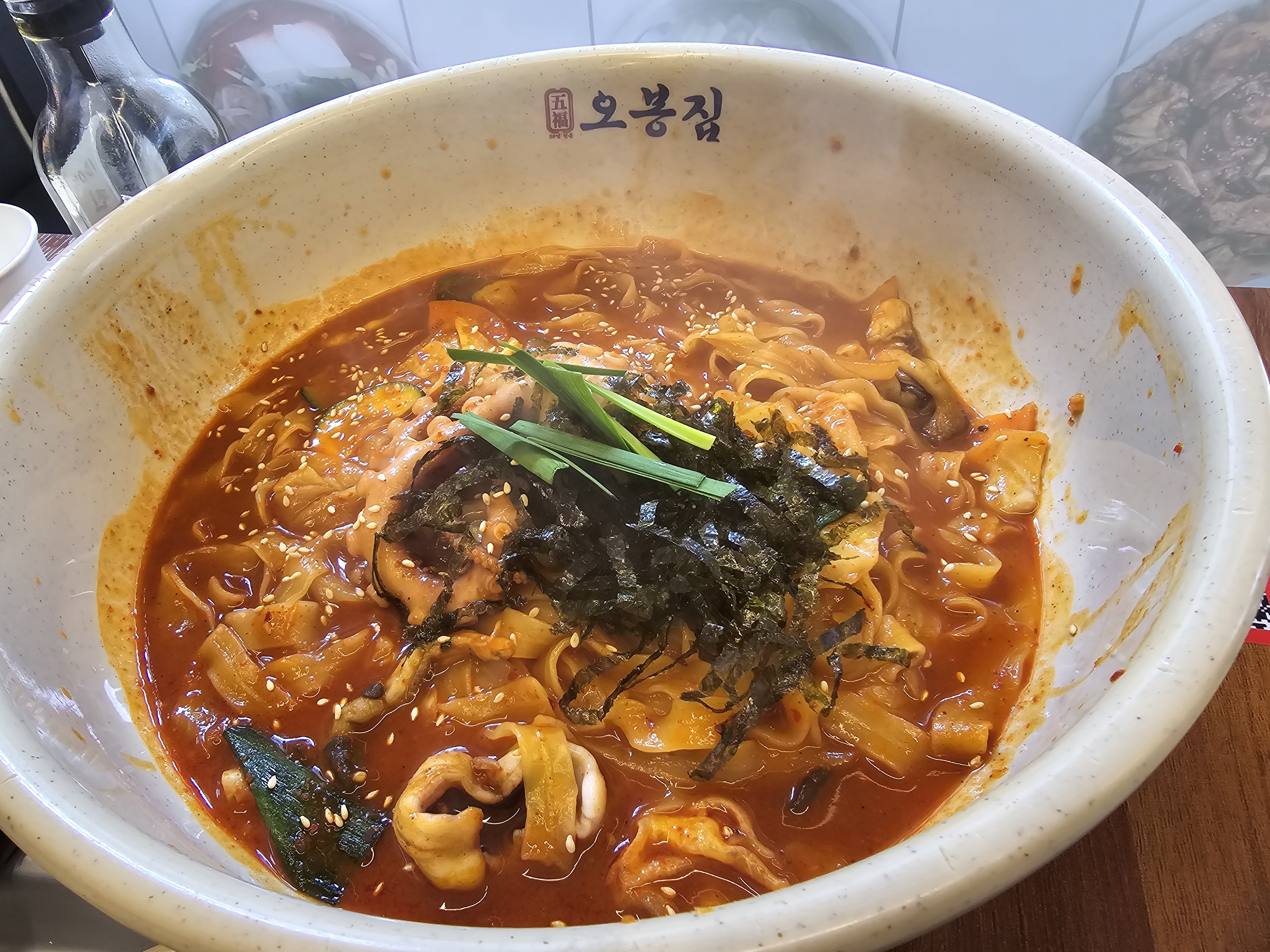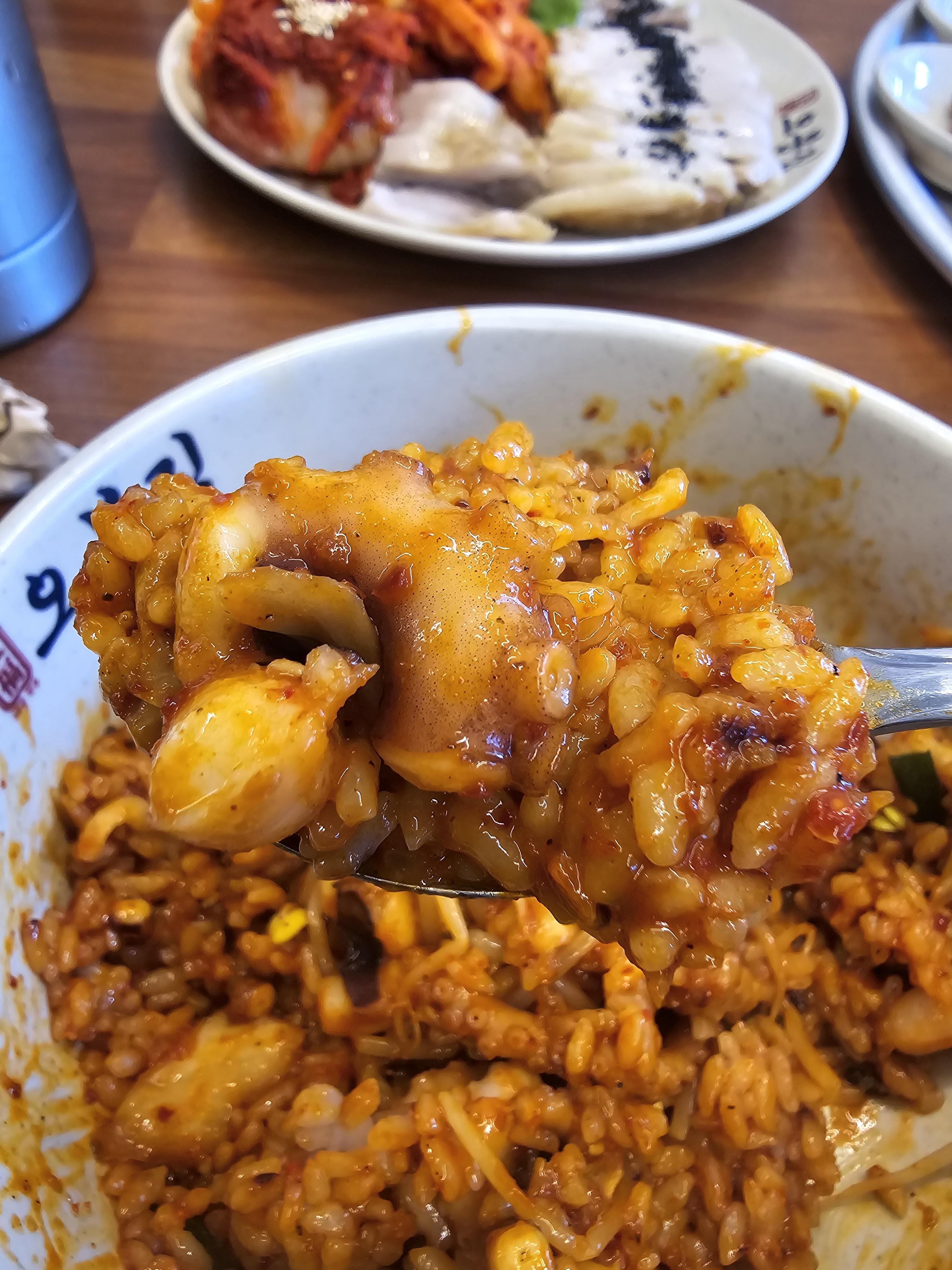 불낙볶음면의 칼국수 버전에다가 낙지 피처링을 한 느낌인데 매운데 손이 계속 가는 맛이었어요