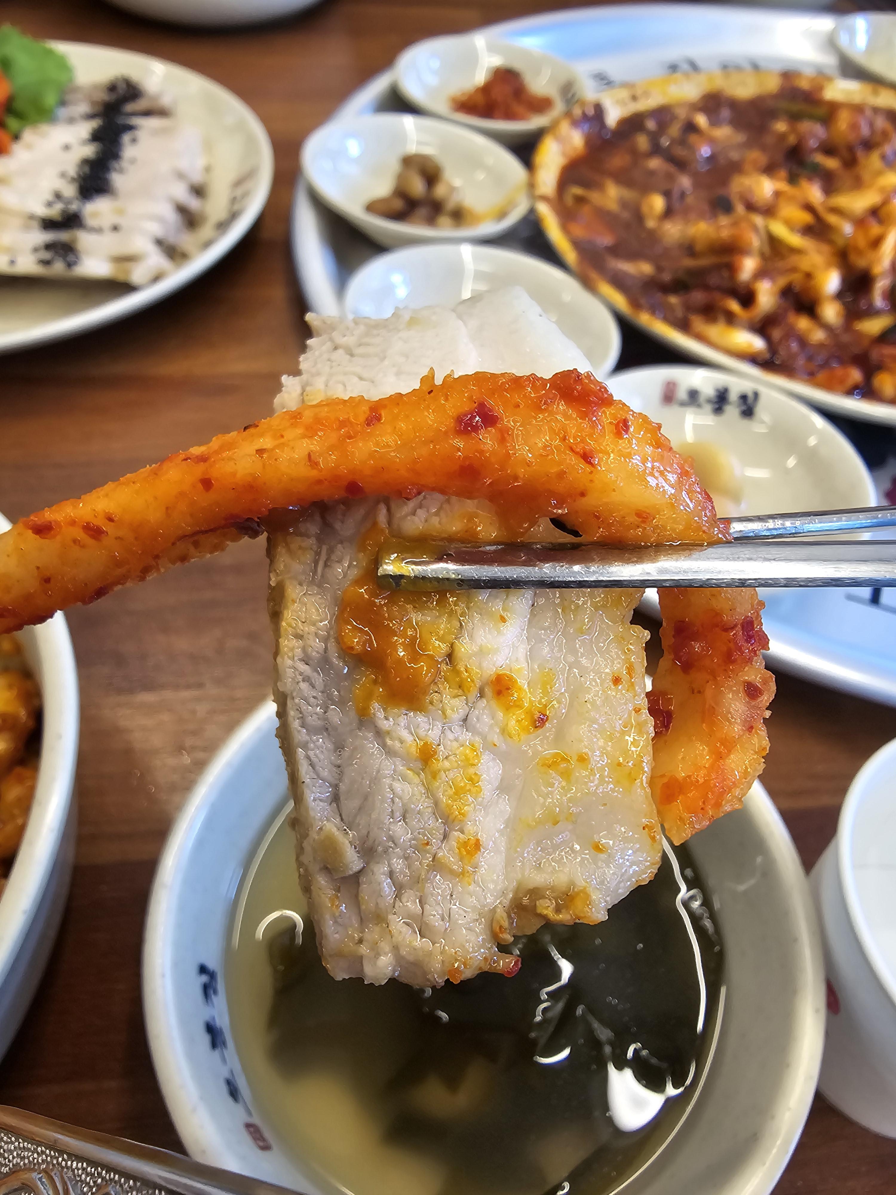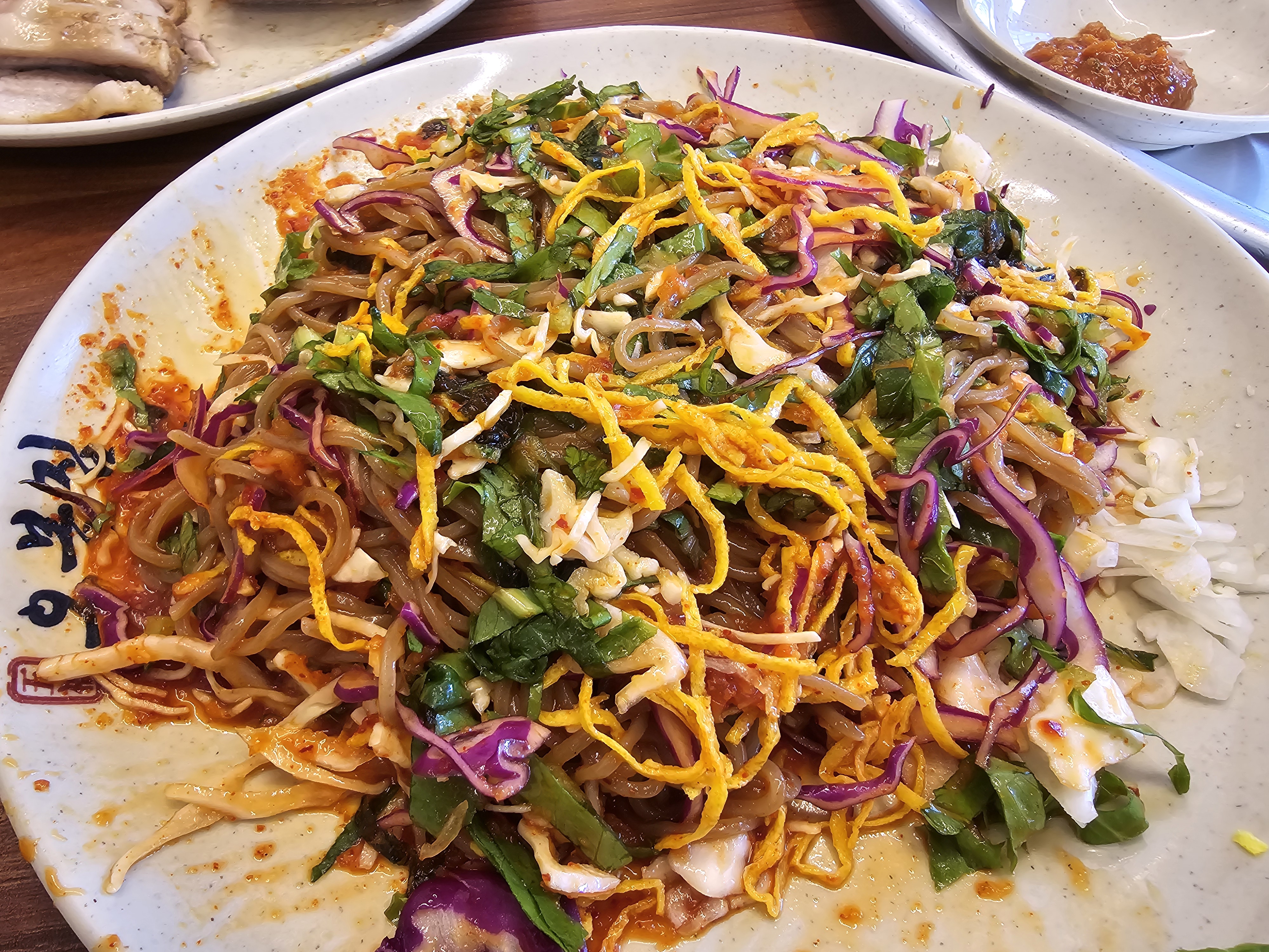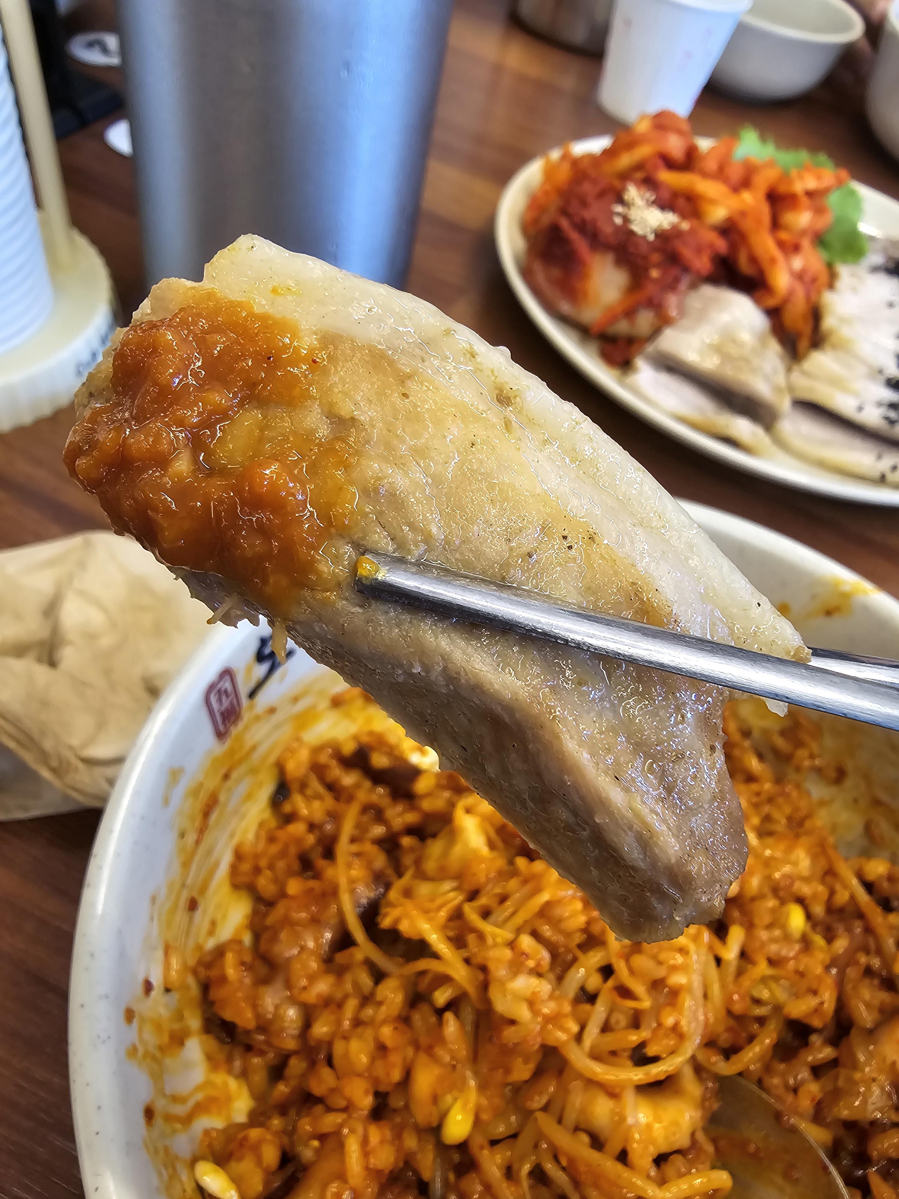 잘 덜어서 열심히 먹었는데 보쌈, 낙지, 쟁반막국수 3군데 맛집이 콜라보를 한 것 같은 맛집 모음집 같더라고요