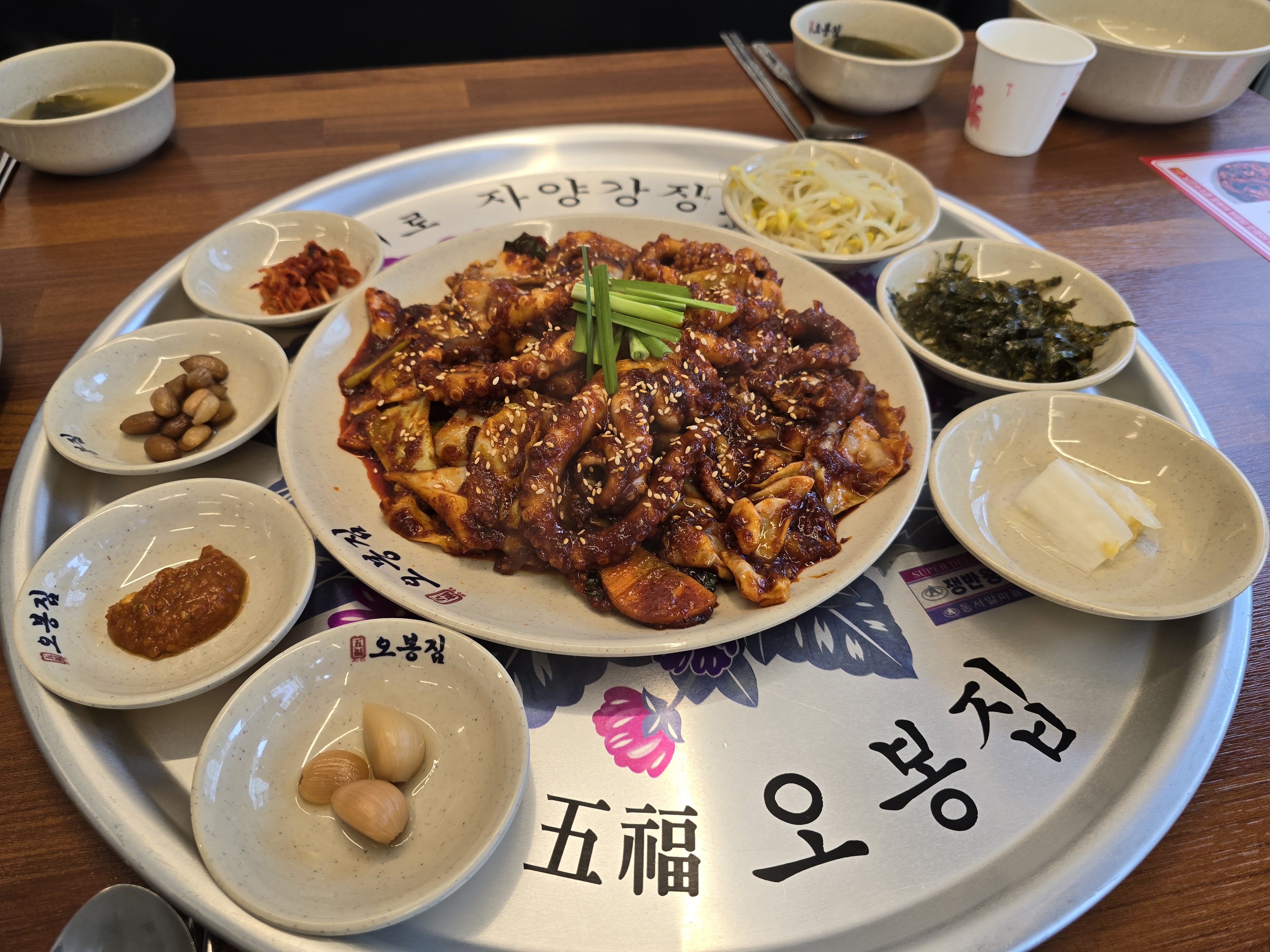 오봉집의 메뉴는 스페셜 메뉴가 베스트인 것 같아요 저희 일행도 낙지오봉스폐셜을 주문했는데 직화낙지와 보쌈 막구수가 나오는 구성으로 3~4인분 정도 되는 양이라고 보시면 되요