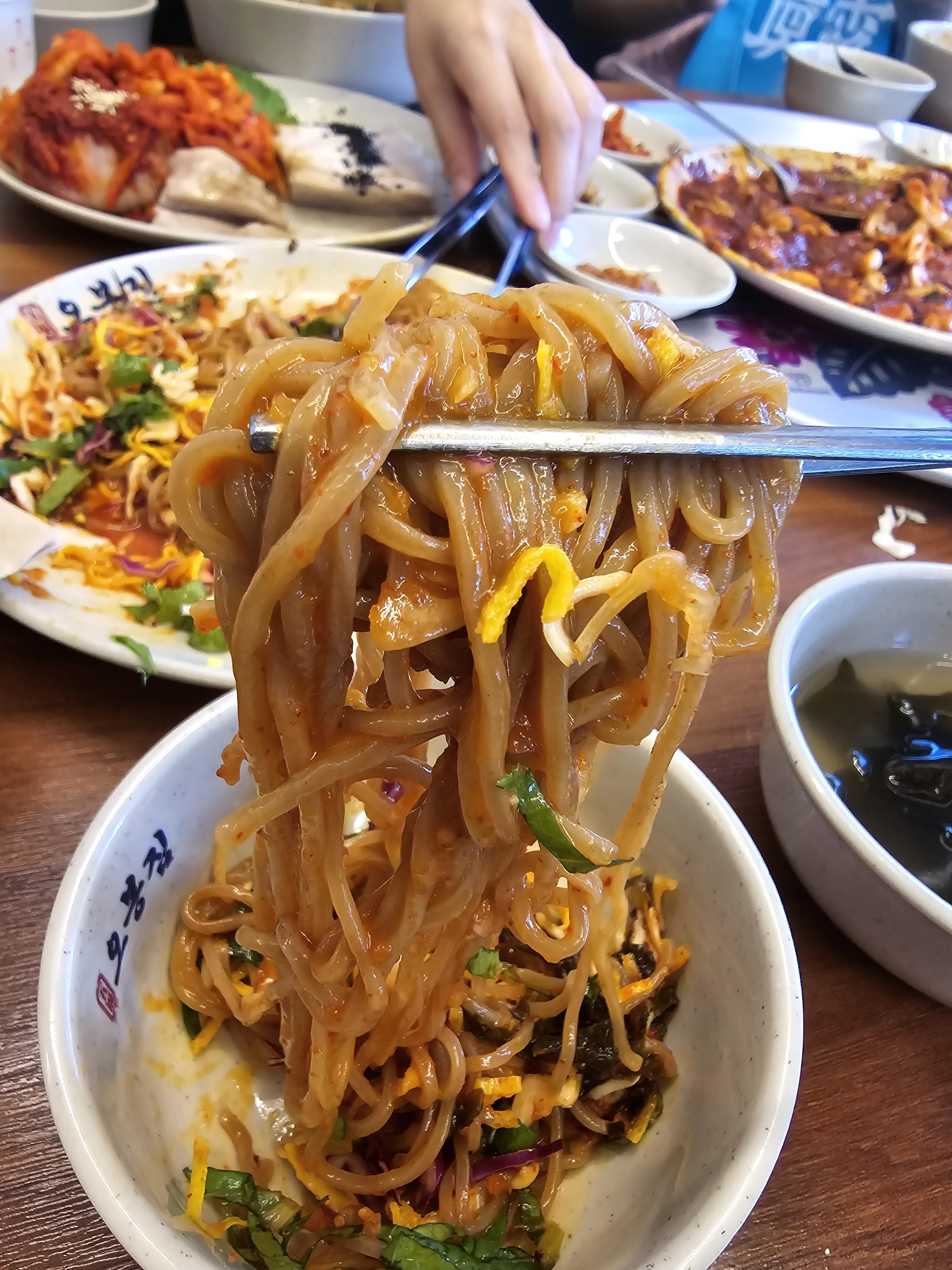 심지어 매운걸 못먹는 저는 보쌈과 막국수, 매운음식을 좋아하는 친구는 낙지를 먹으니 서로 만족할 수 있는 구조였어요