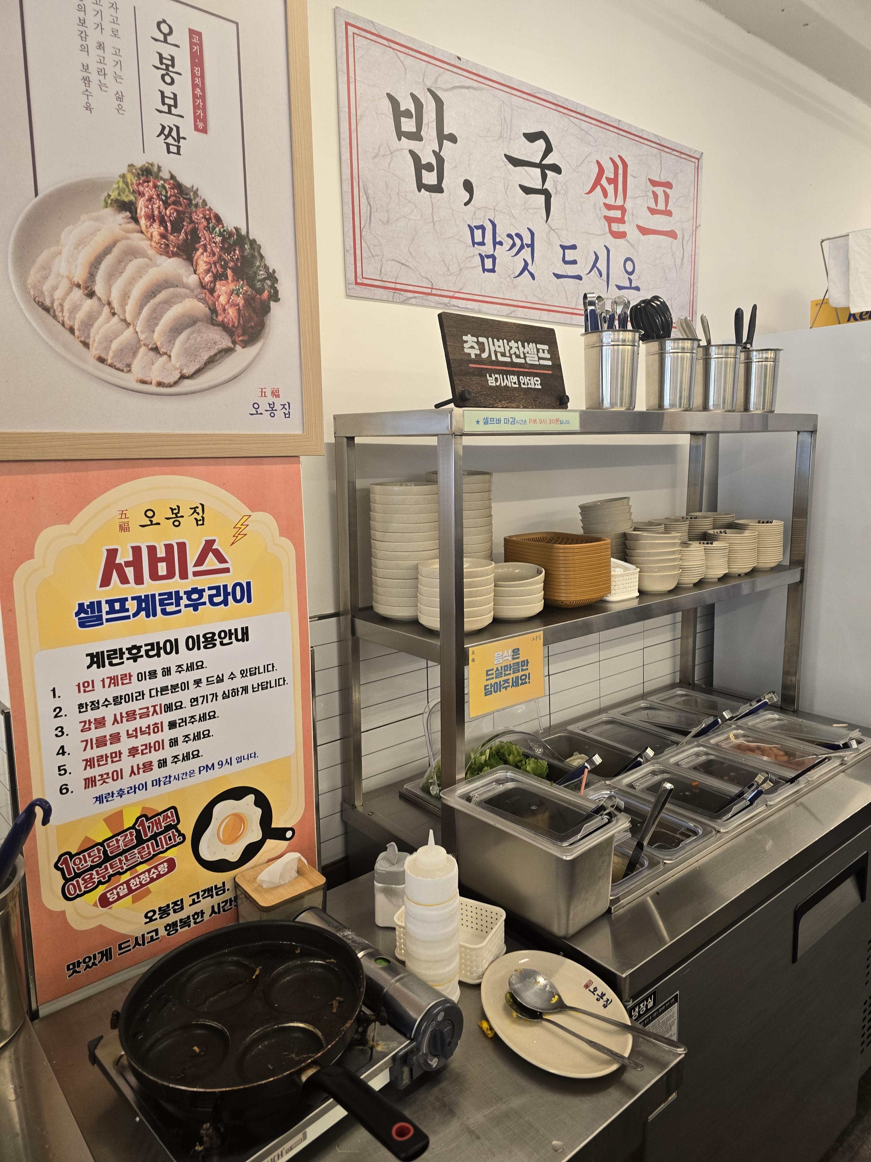 셀프바에서 가장 핫한건 셀프계란후라이인데 점심시간에 사람들이 몰리면 대기줄이 길어서 저희는 포기했어요