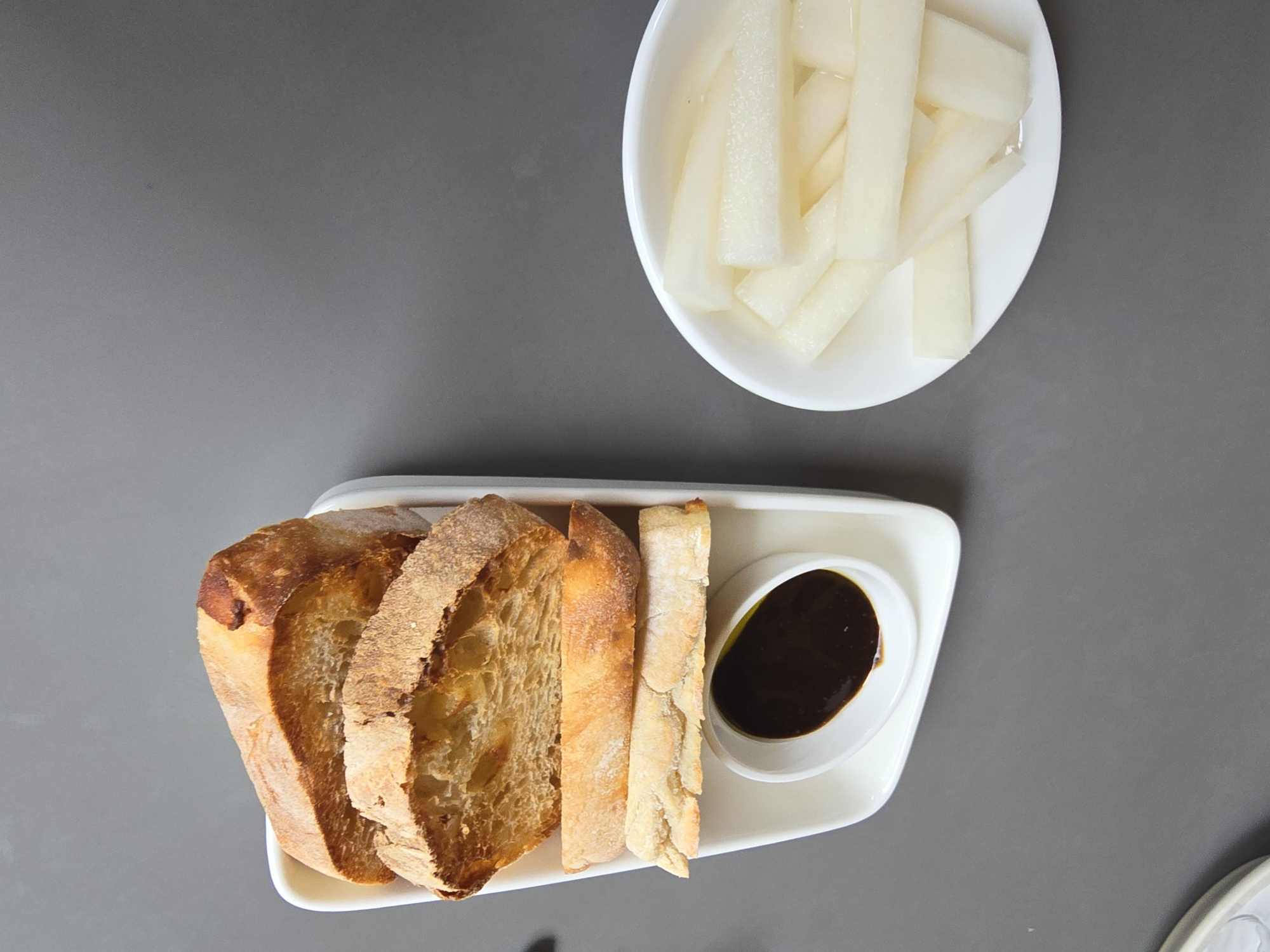 발사믹오일도 찍어서 야무지게 에피타이저를 즐겼어요
