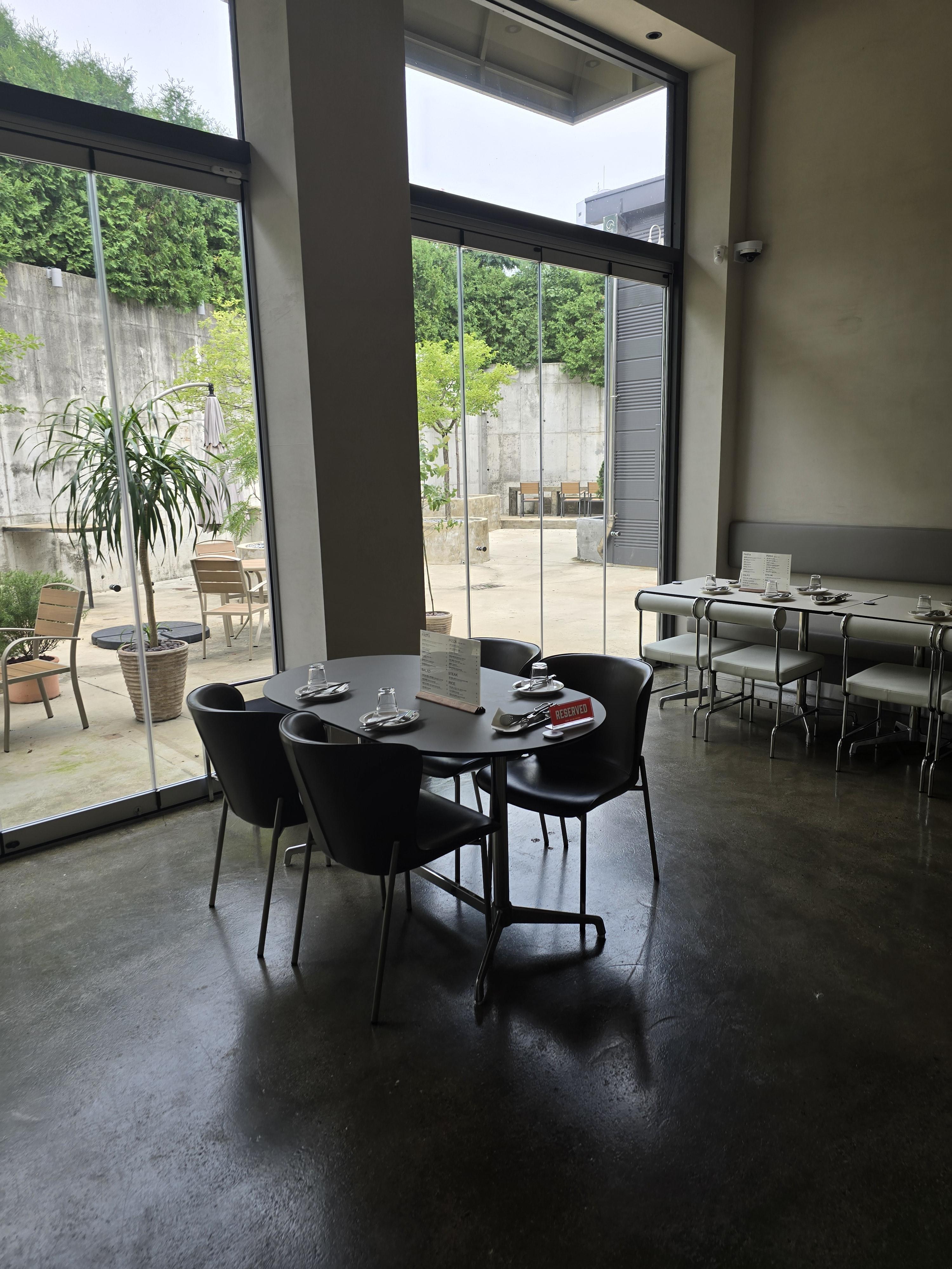 저희는 실내 자리에 앉았는데 야외 자리도 있더라고요 가을쯤 되었을때 밖에서 식사해도 좋을 것 같더라고요