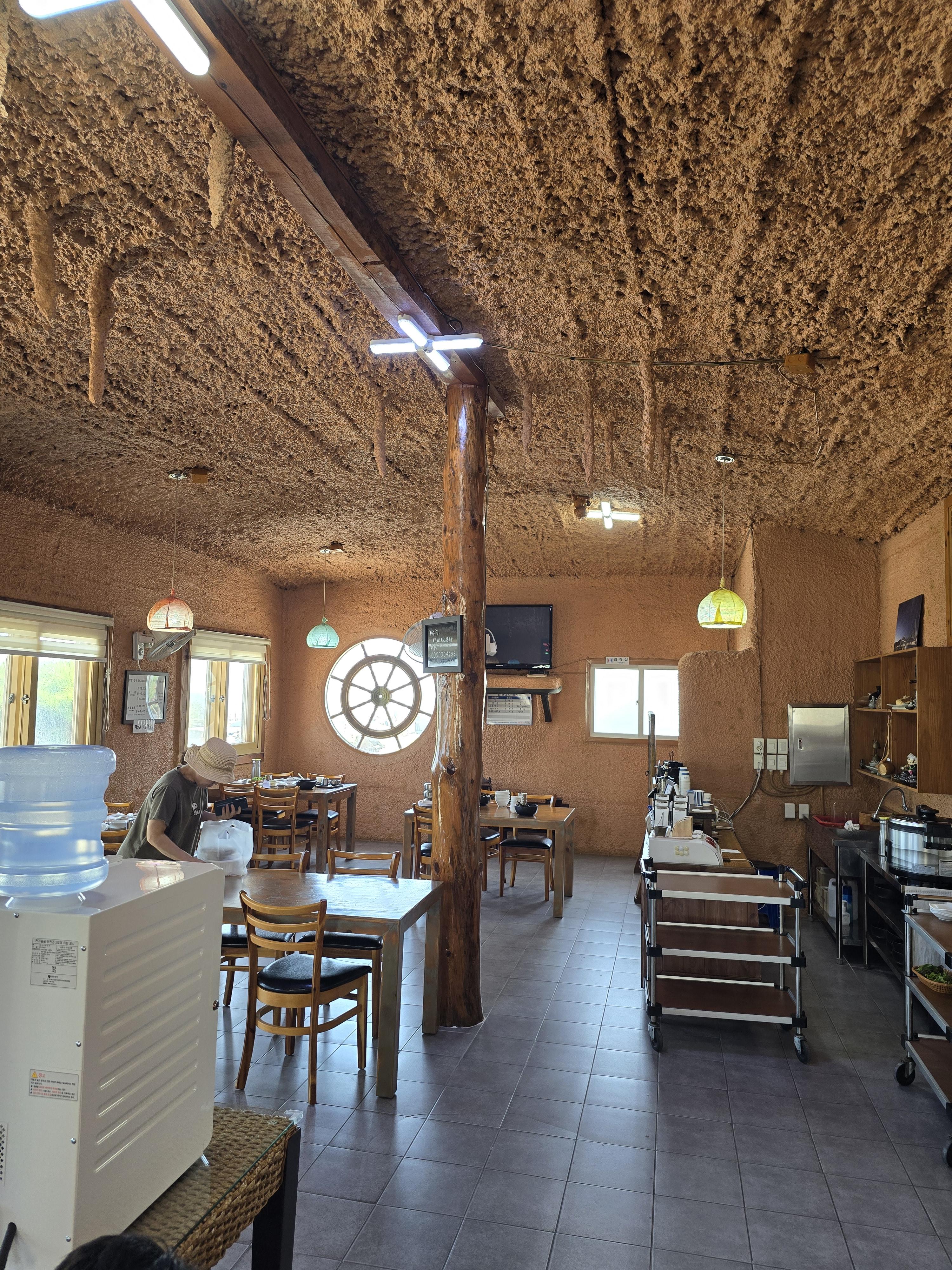 을진에 성류굴이 유명하다고 하던데 식당 안에 들어오니 천장에 마치 종유석이 달려있는 듯하고 동굴 안에 들어온 느낌이더라고요