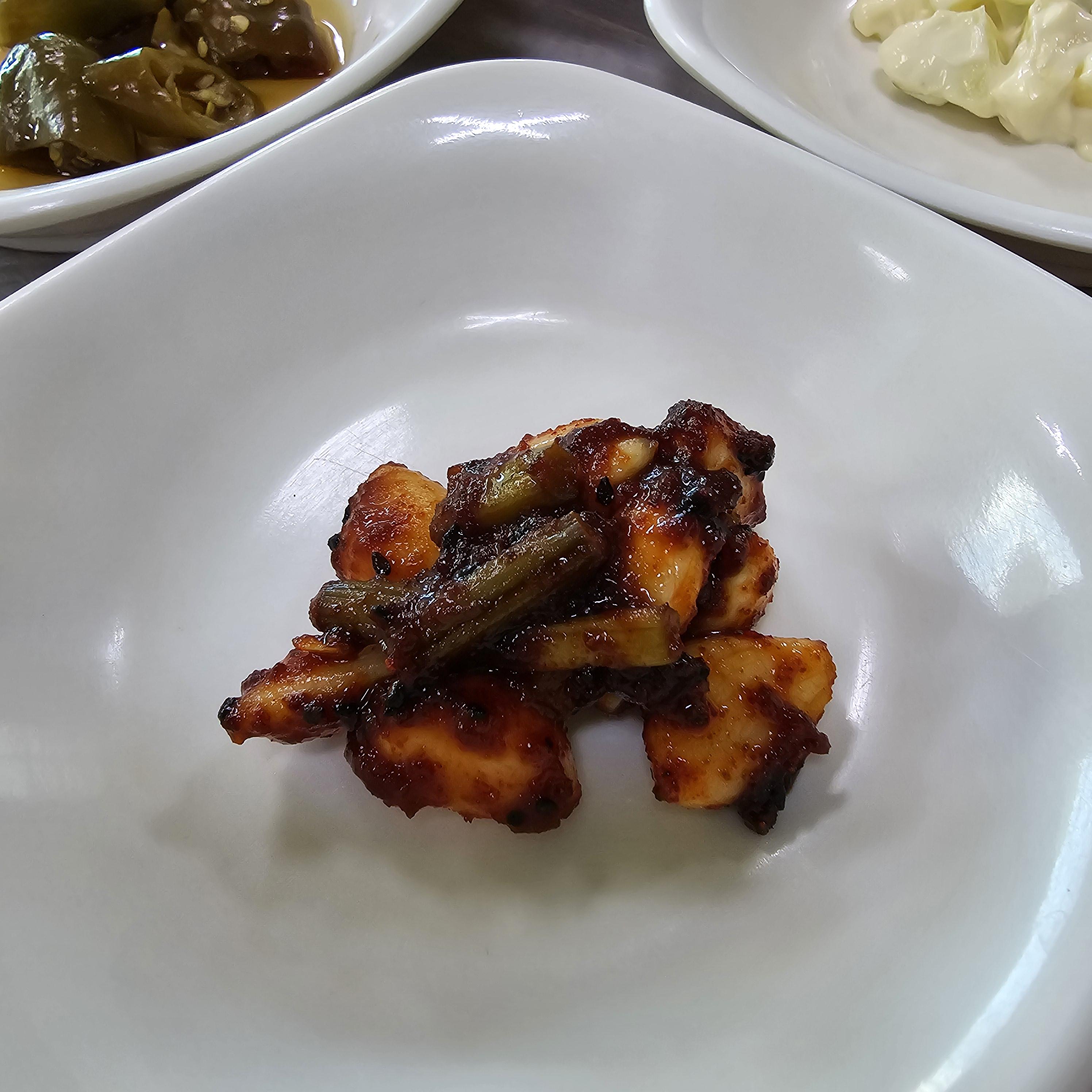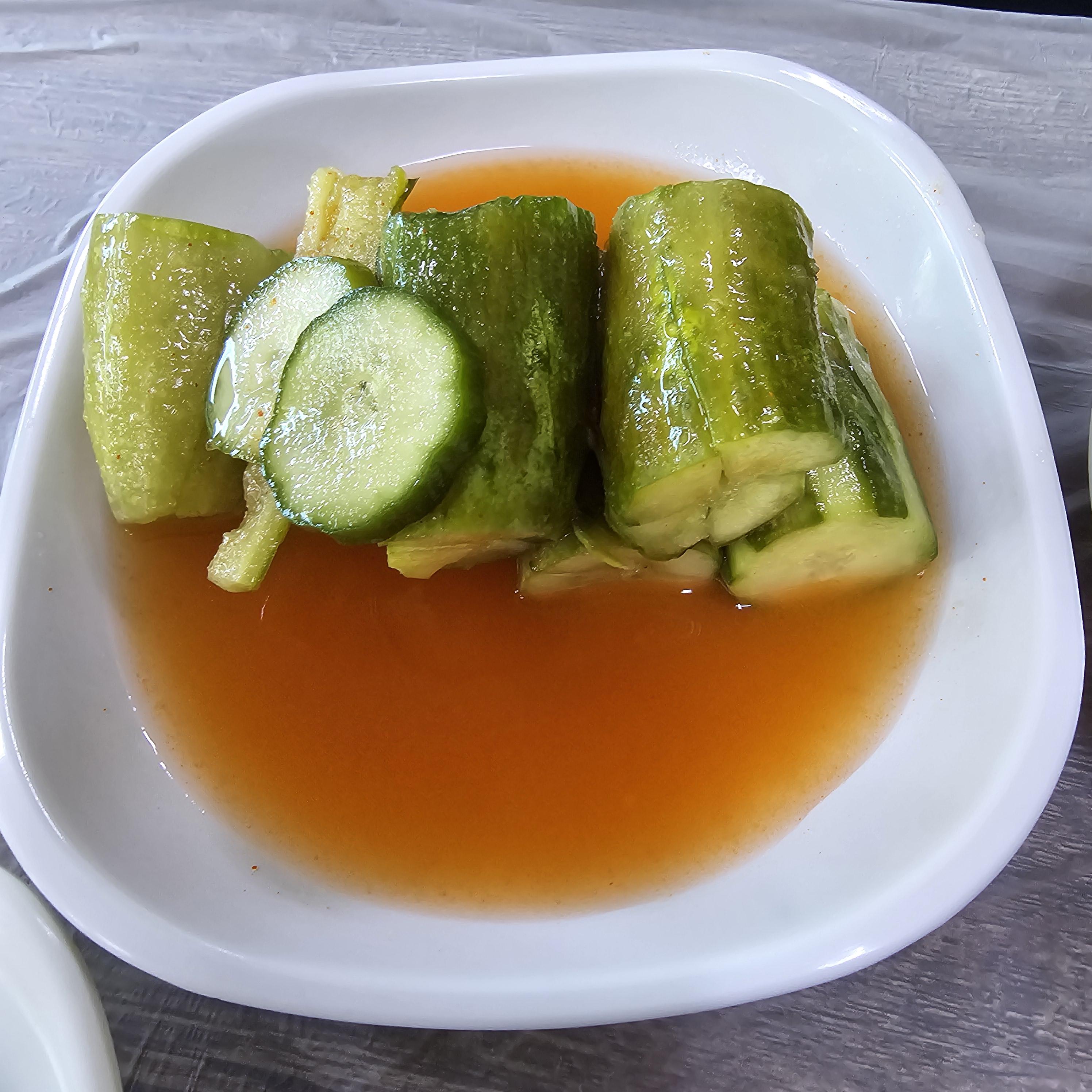 여러가지 반찬들 중에 저는 오이김치가 가장 맛있었어요 시원한 맛이 일품이라 오리날개찜과 너무 잘 어울리더라고요