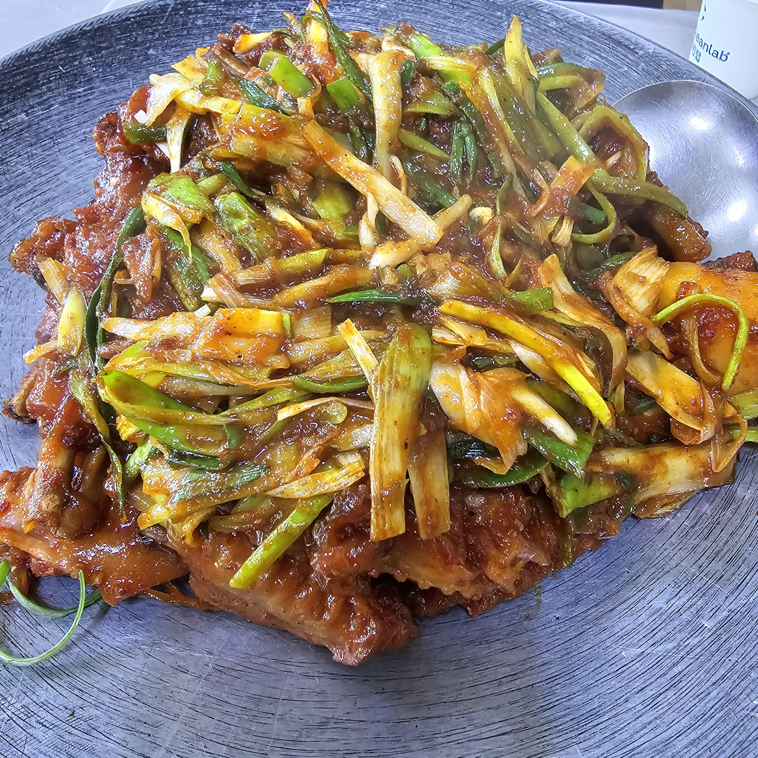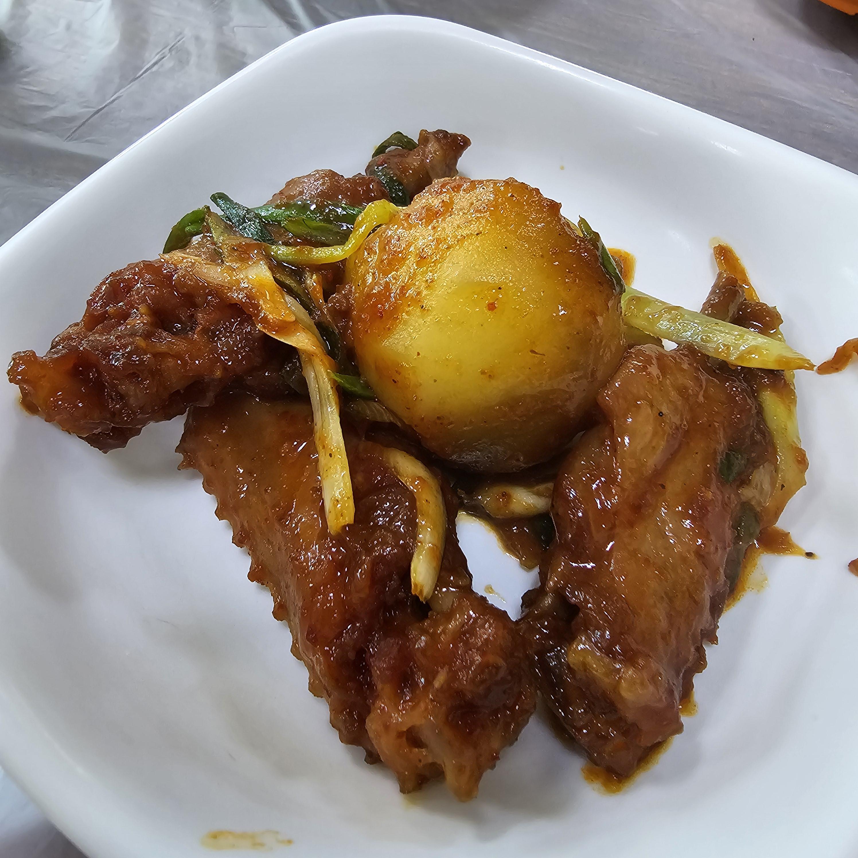 쫄깃하지만 야들야들한 오리날개에 매콤달콤한 양념 그리고 감자, 파채의 아삭함까지 같이 다 잘 조화로운 맛이었어요