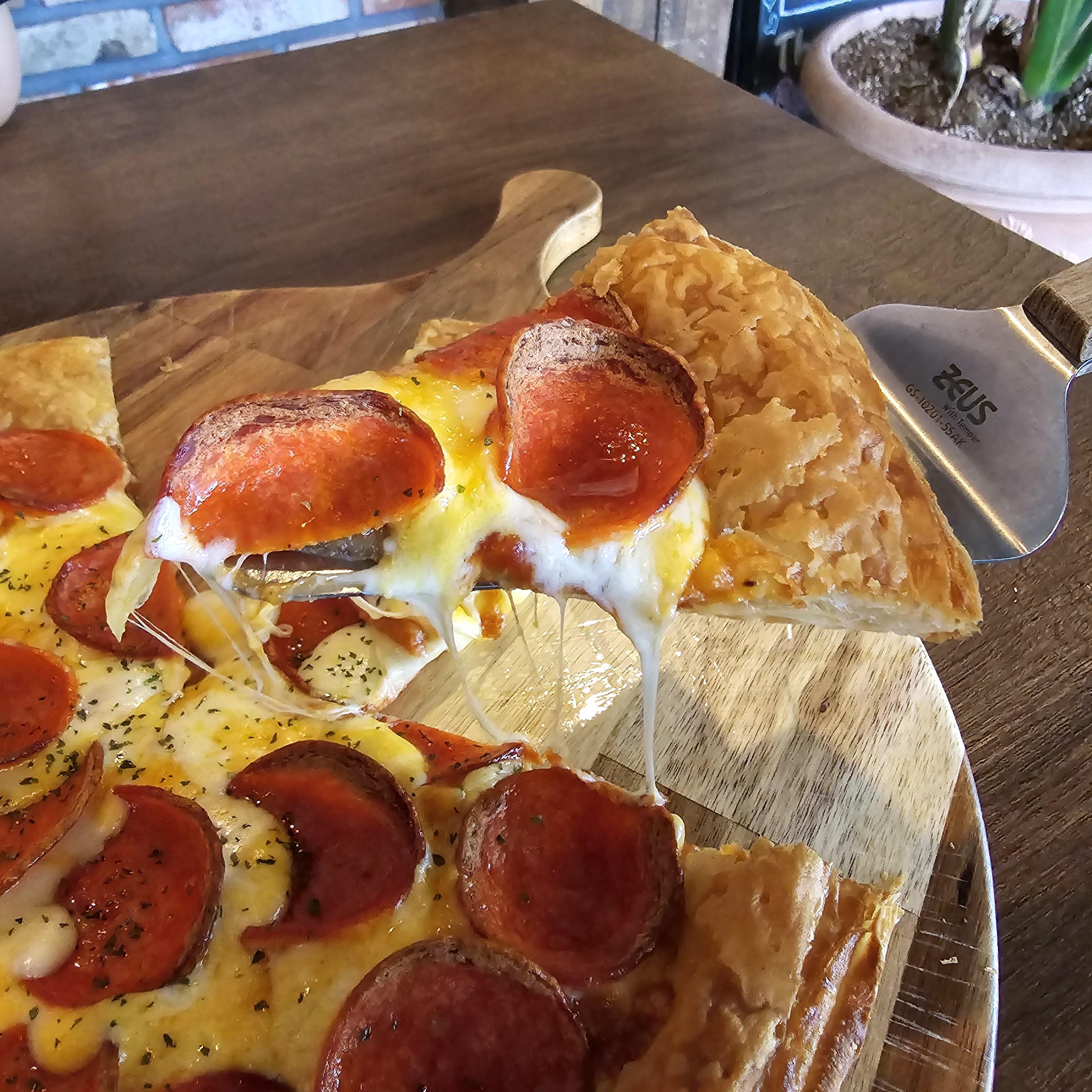 이건 페퍼로니 피자인데 피자도우가 특이하게 페스츄리로 되어 있더라고요 페스츄리 도우라서 바삭한 식감이 다른 곳과 달랐고 저는 아주 마음에 들었어요