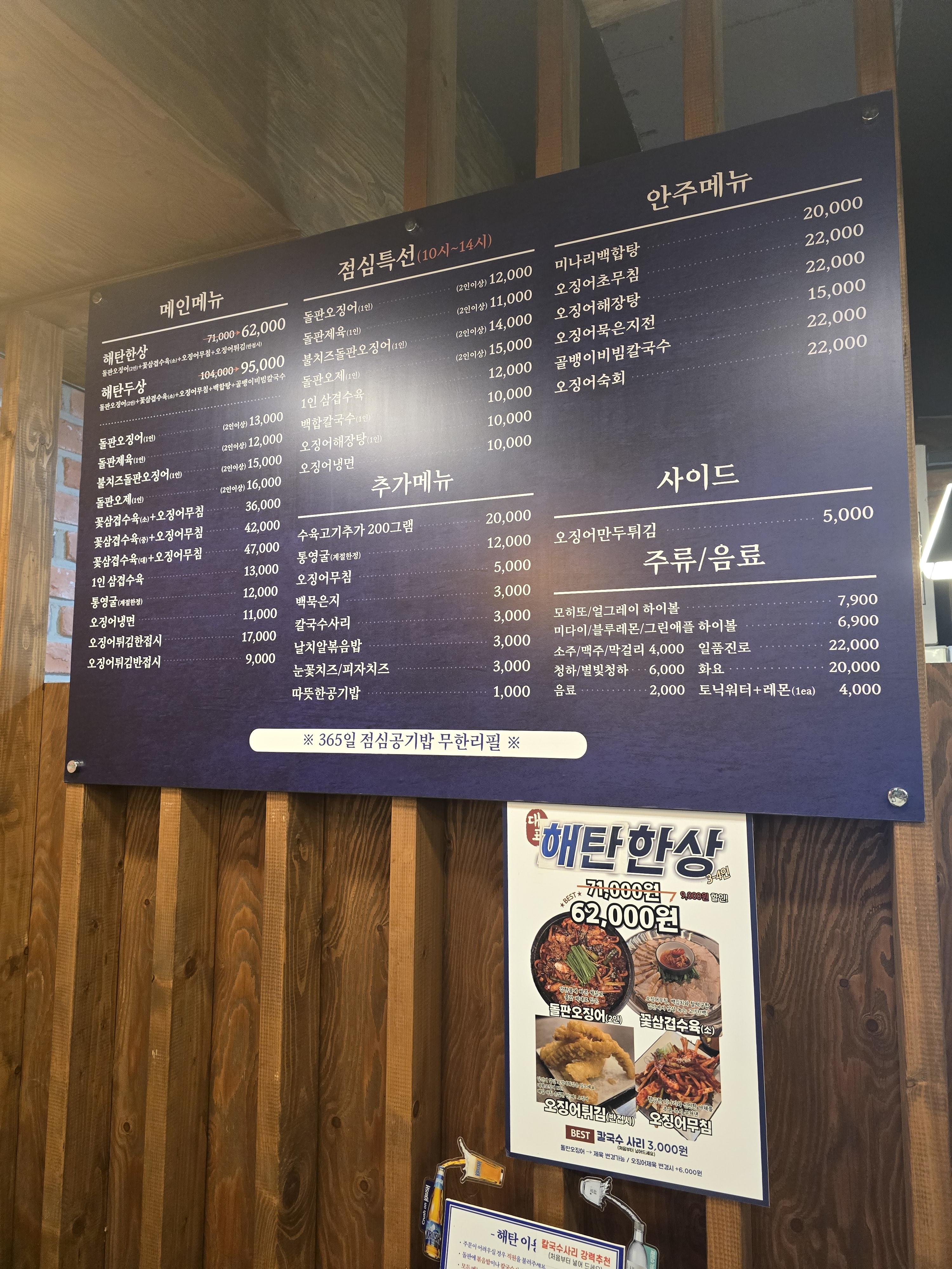 메인메뉴와 점심특선, 안주류 등이 있는데 저희는 성인 4명이라 푸짐하게 해탄 두상을 주문했어요
