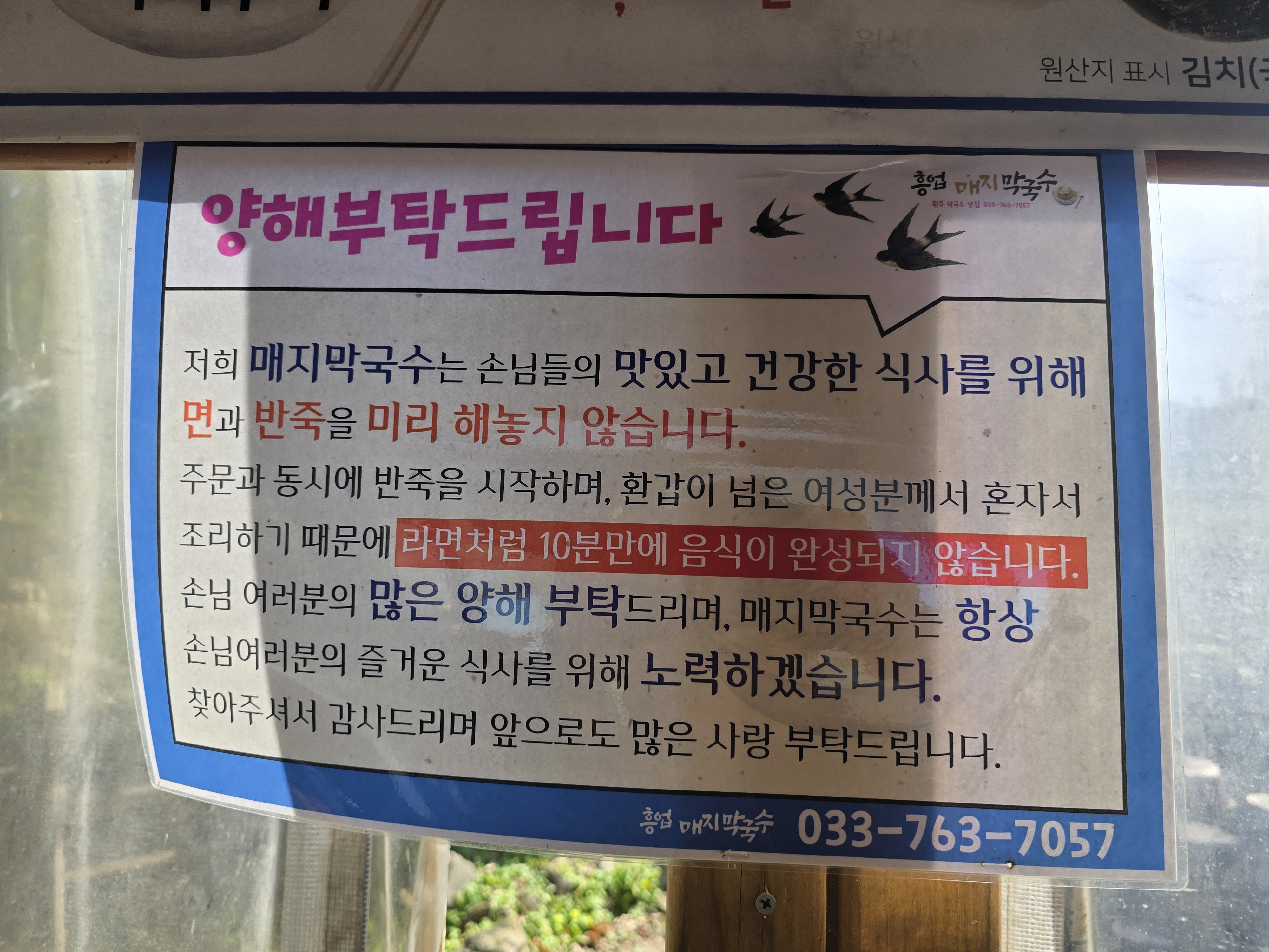 매지막국수집은 주문이 들어가면 그때 반죽을 시작하고 그래서 음식이 조금 늦게 나올 수 있다고 양해의 문구까지 있어요 맛있는거라면 얼마든 기다릴 수 있지요😄