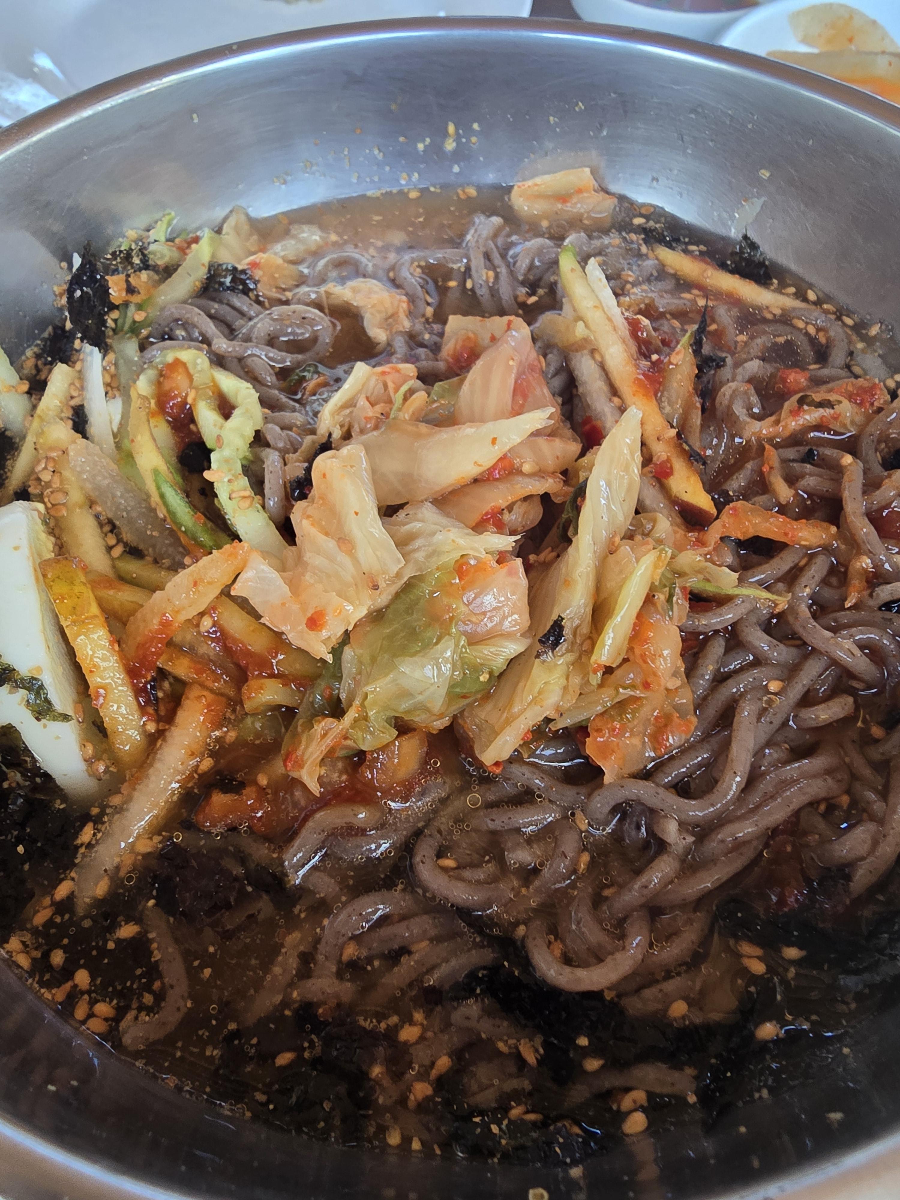 막국수는 감자전보다 조금 늦게 나왔는데 양이 엄청 푸짐했어요 사장님도 많이 주셨다고 하시더라고요