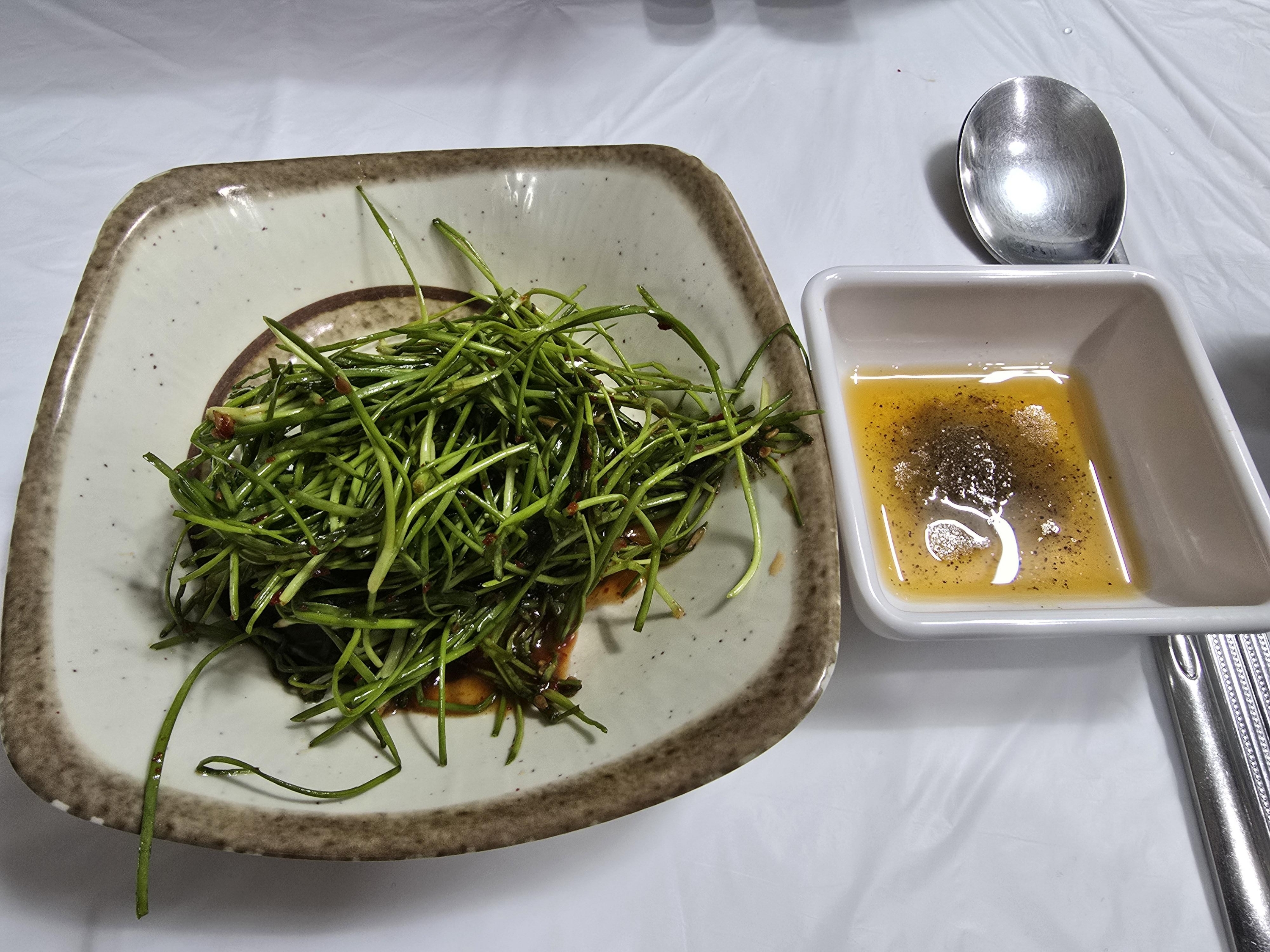 부추무침은 약간 새콤하게 무쳐주신 거라 염통의 기름진 맛을 잡아줘서 좋았어요😁