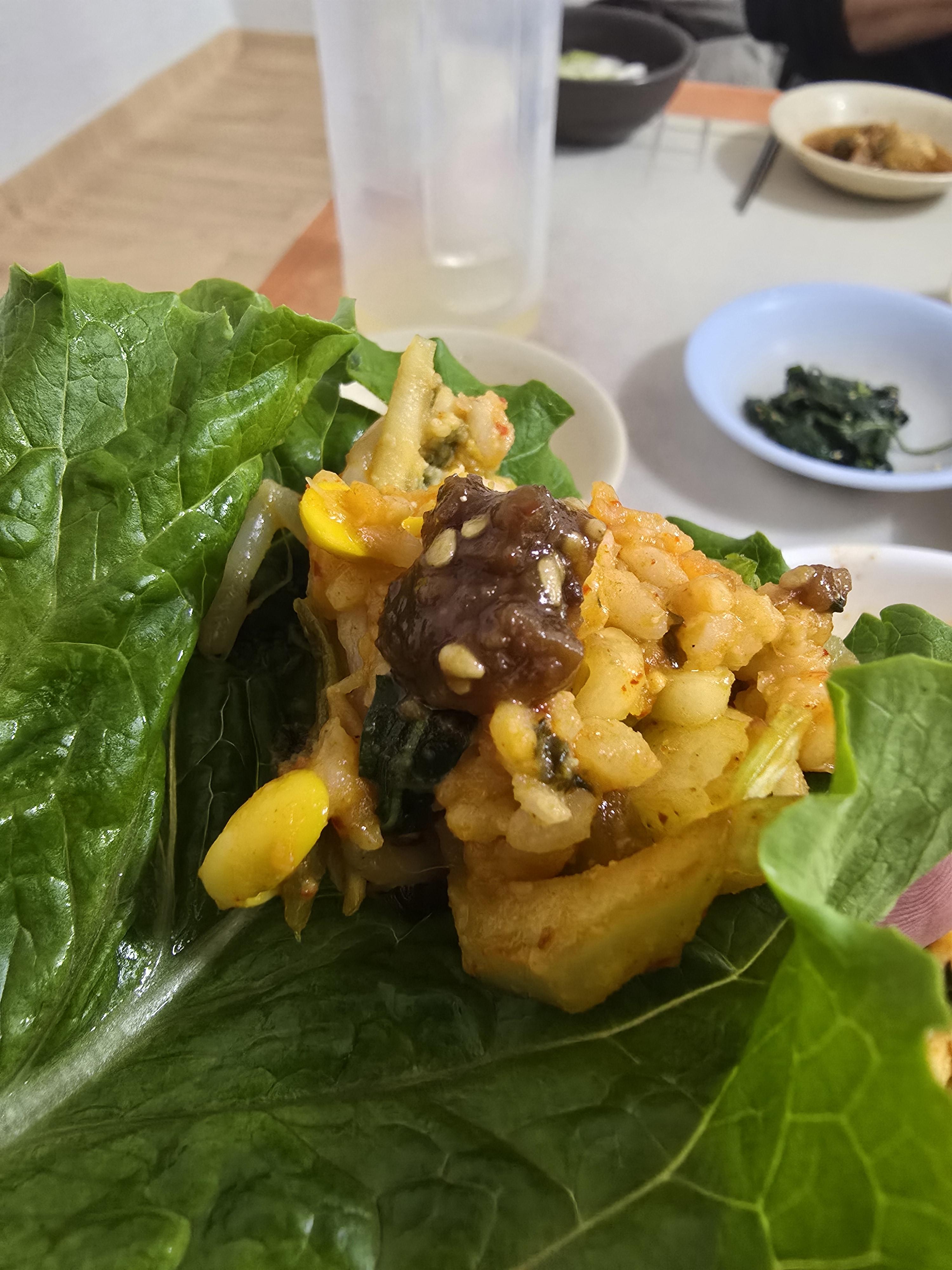 잘 비벼진 고추장보리비빔밥에 쌈장 조금 올려서 먹어도 꿀맛이고요😋