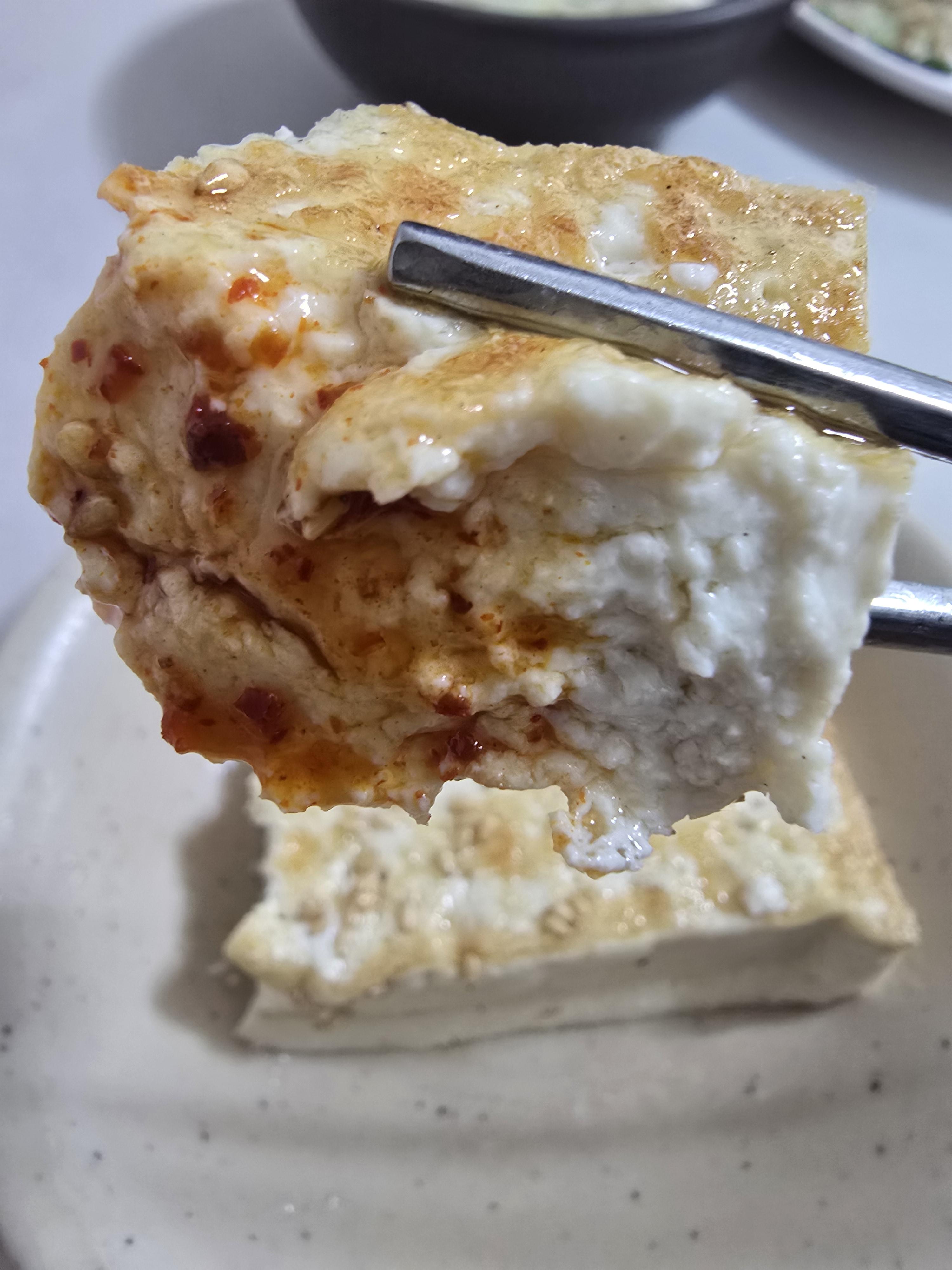 두부는 기본에 충실한 양념장에 콕 찍어서 한입😃