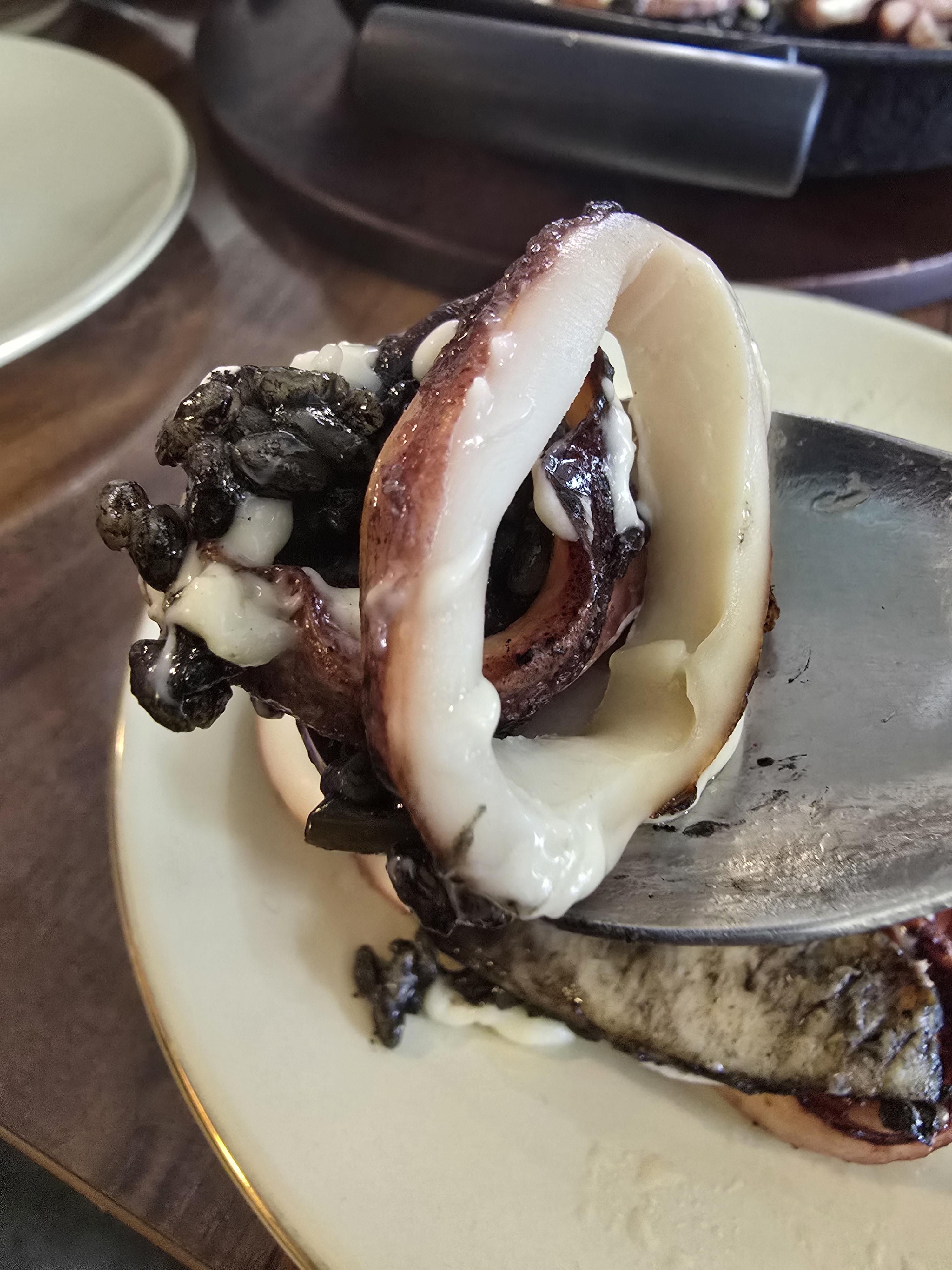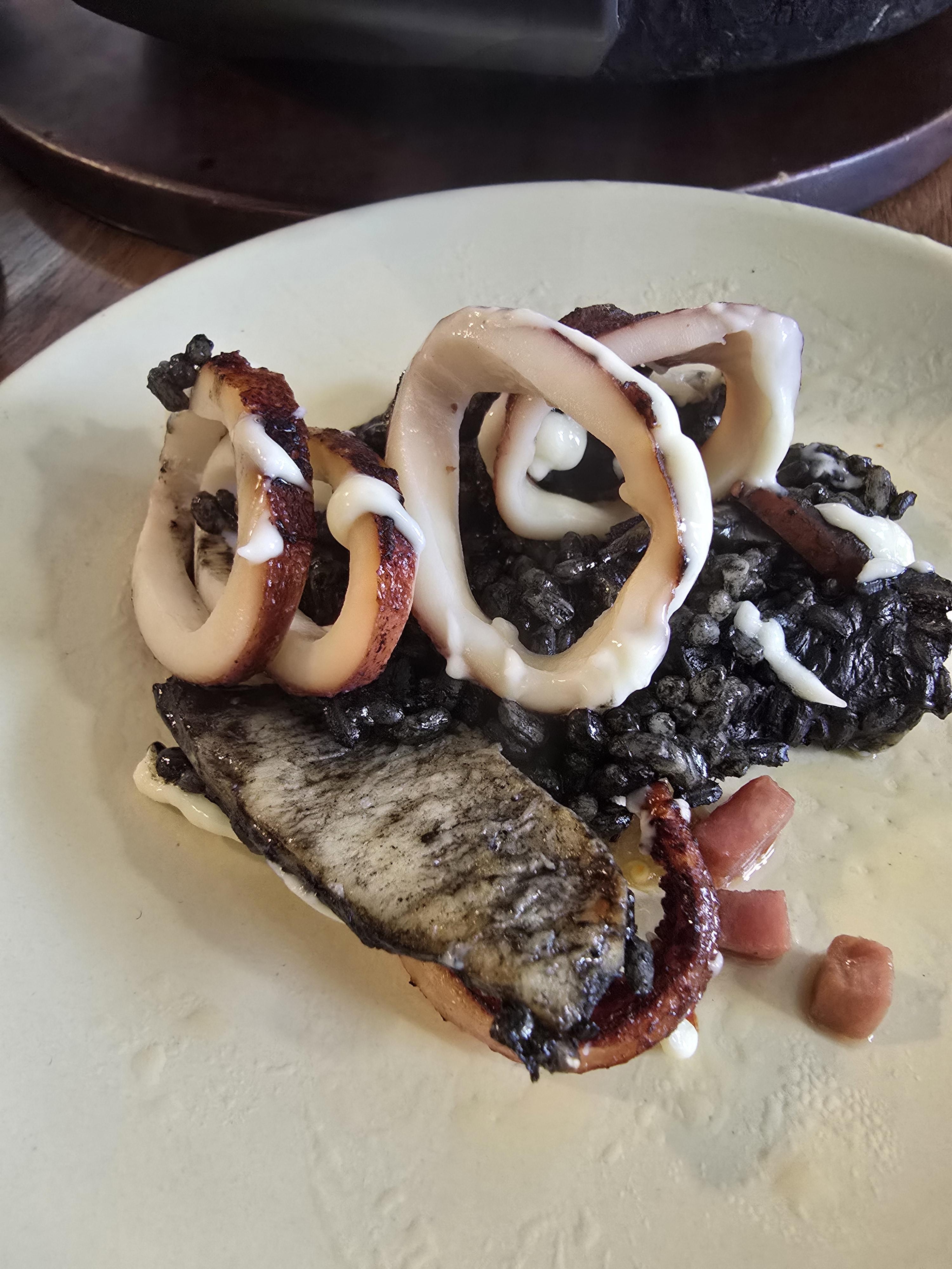 이건 먹물빠에야인데 리조또와는 또 다른 느낌이었어요 먹물에 볶은 밥은 쌀의 식감이 남아있는데도 독특한 매력이 있었고 오징어도 엄청 맛있었어요